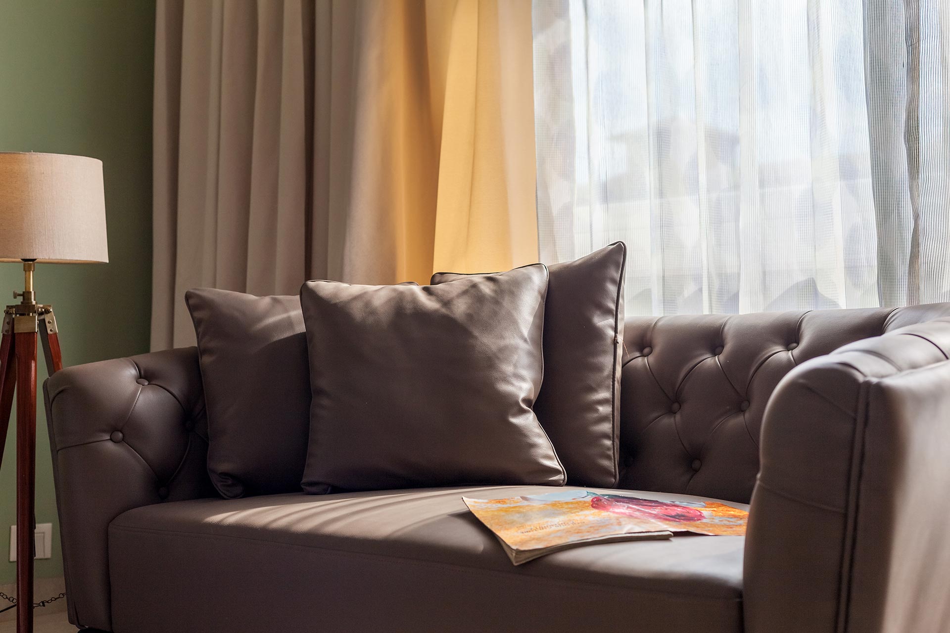 – Modern interiors with comfortable and natural wood furnishings