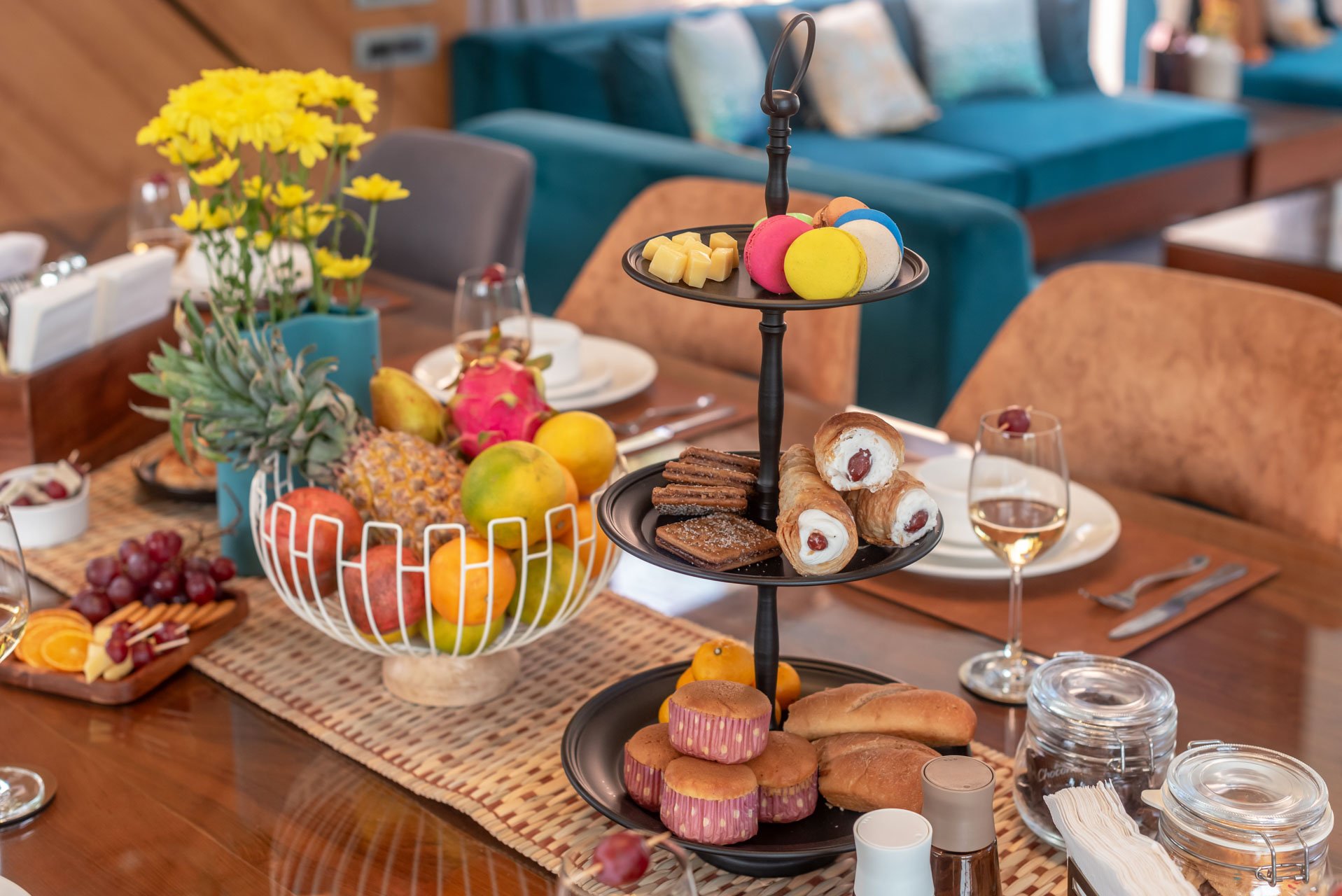 – It is embellished with soothing yet luxuriant hues, and lavish sofa-style seating arrangements for up to 14 people.