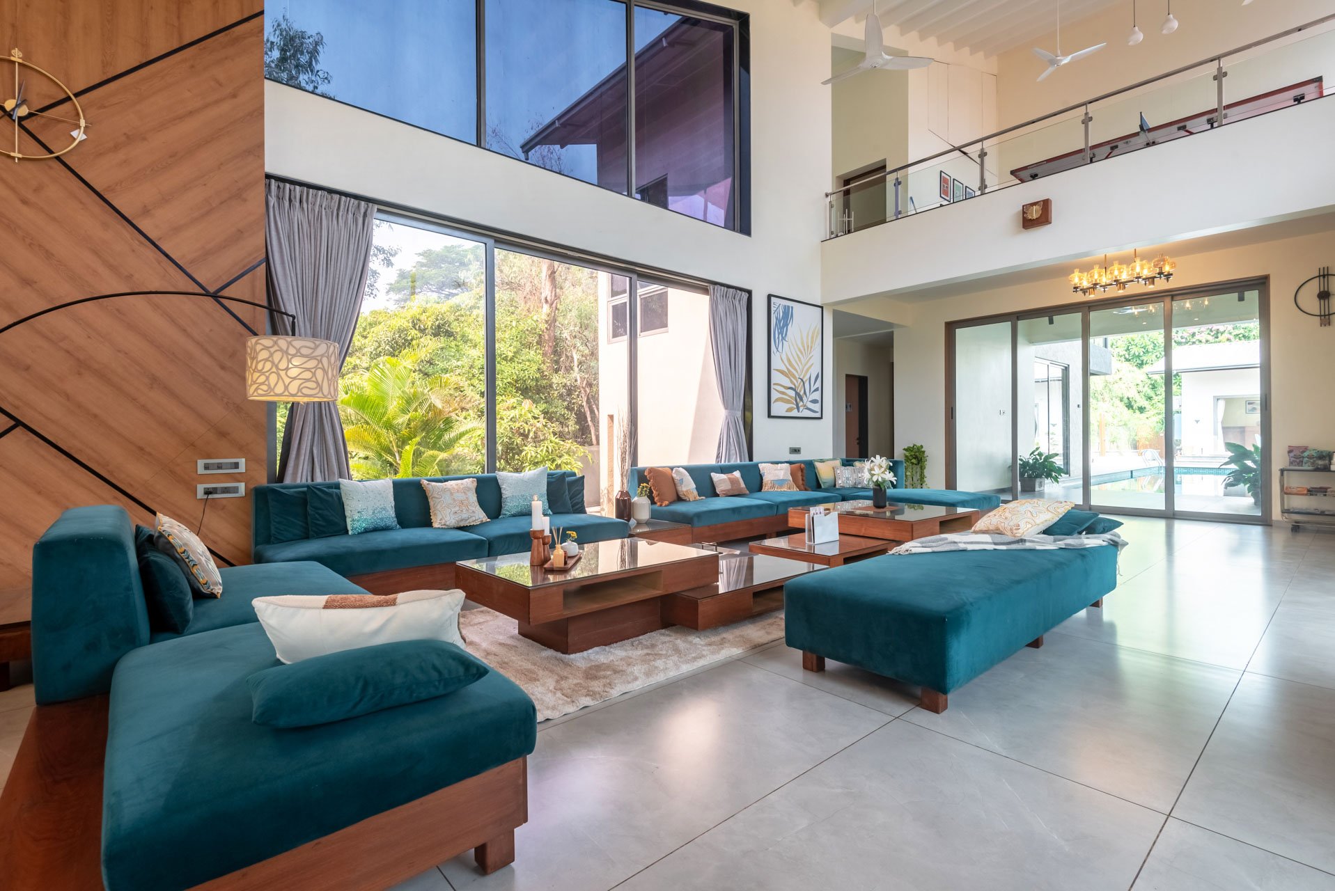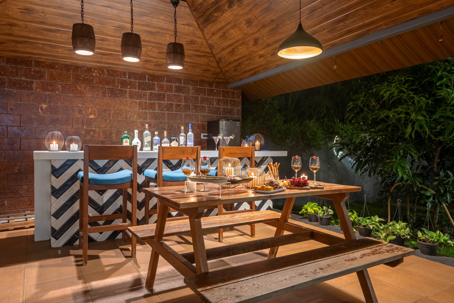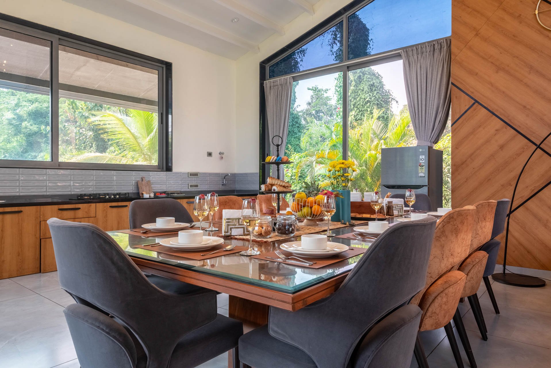 Think of a castaway experience, swathed in endless greenery and charismatic experiences right in the heart of Karjat – The Den might just be this town’s best-kept secrets. This sprawling holiday home sweeps you into a world of laidback luxury with an expansive set of alluring amenities that must be experienced in person. As you pull up the driveway, you will notice the facade of this home that is simply unlike any other home; it’s almost dreamy, wrapped in surreal landscapes of luxuriant foliage and the distant mountains. Set on extensive grounds, this getaway is almost like your sanctuary – replete with the choicest of experiences. The free-flowing indoor spaces are ornamented with classy yet swanky furnishings, sloping high ceilings and well-cushioned seating areas. Leading to the outdoors – the path weaves down to the L-shaped swimming pool, the lush green gardens and the private turf. However, the sheer highlight of this holiday home is the sun-drenched terrace that makes for the perfect setting for a delectable high tea. At The Den, we encourage you to embrace luxury and enjoy nature.