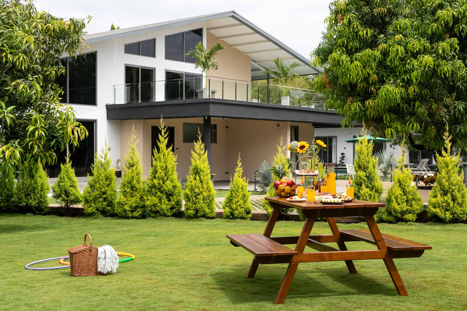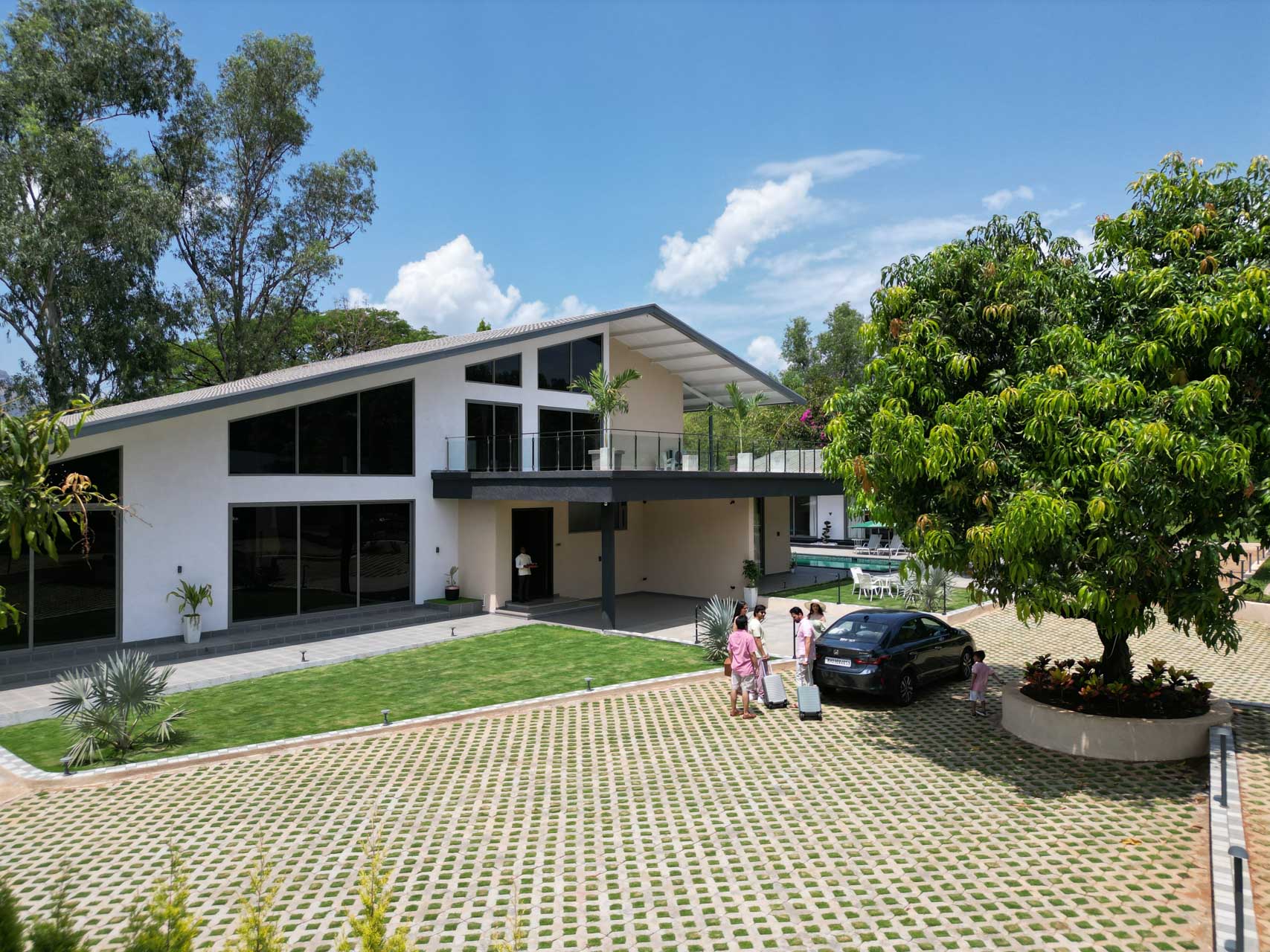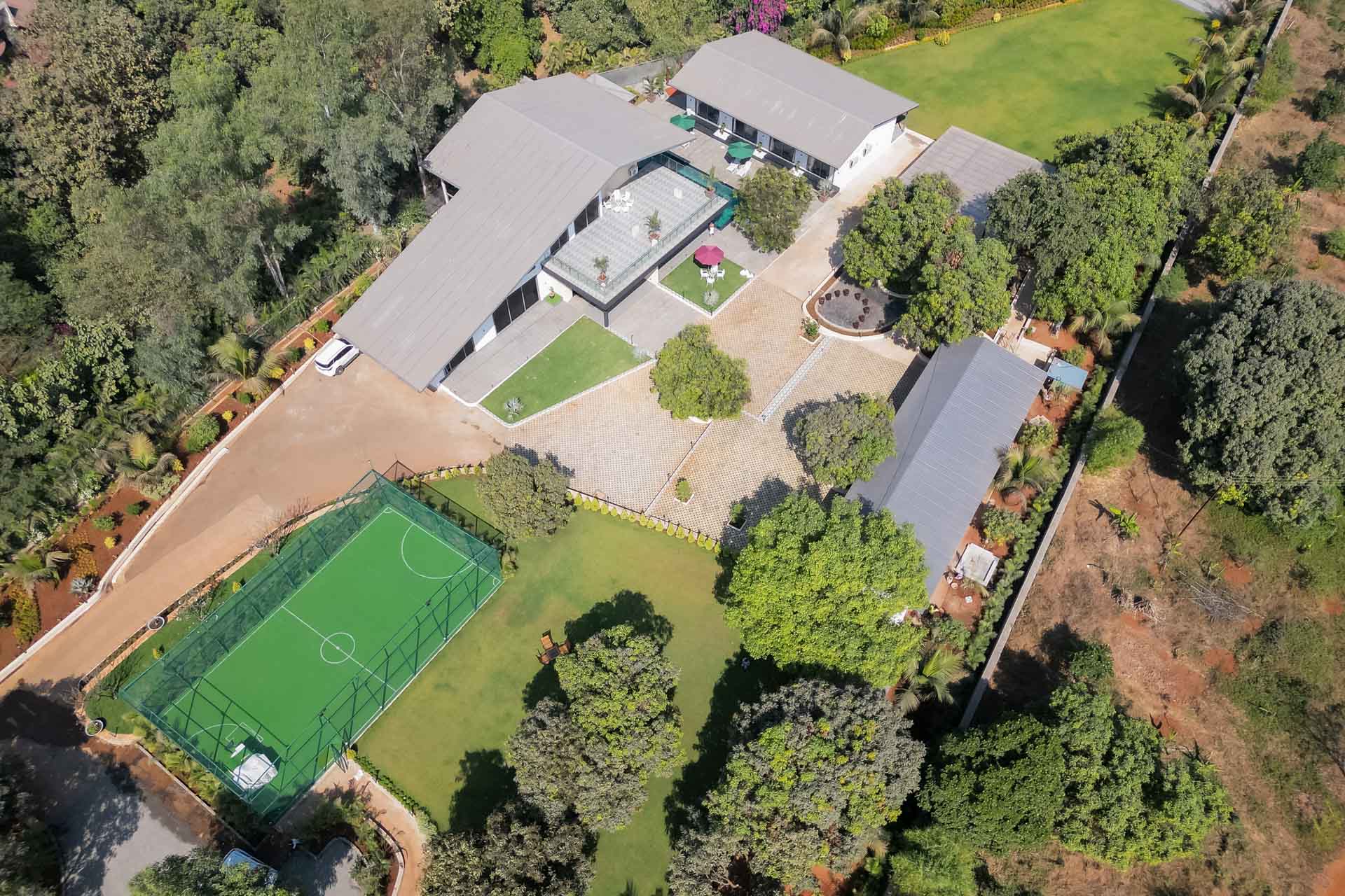 – This luxurious holiday home boasts sprawling gardens, 25,000 and 10,000 sq. ft. in size, ideal for leisurely morning strolls amidst the refreshing breeze.