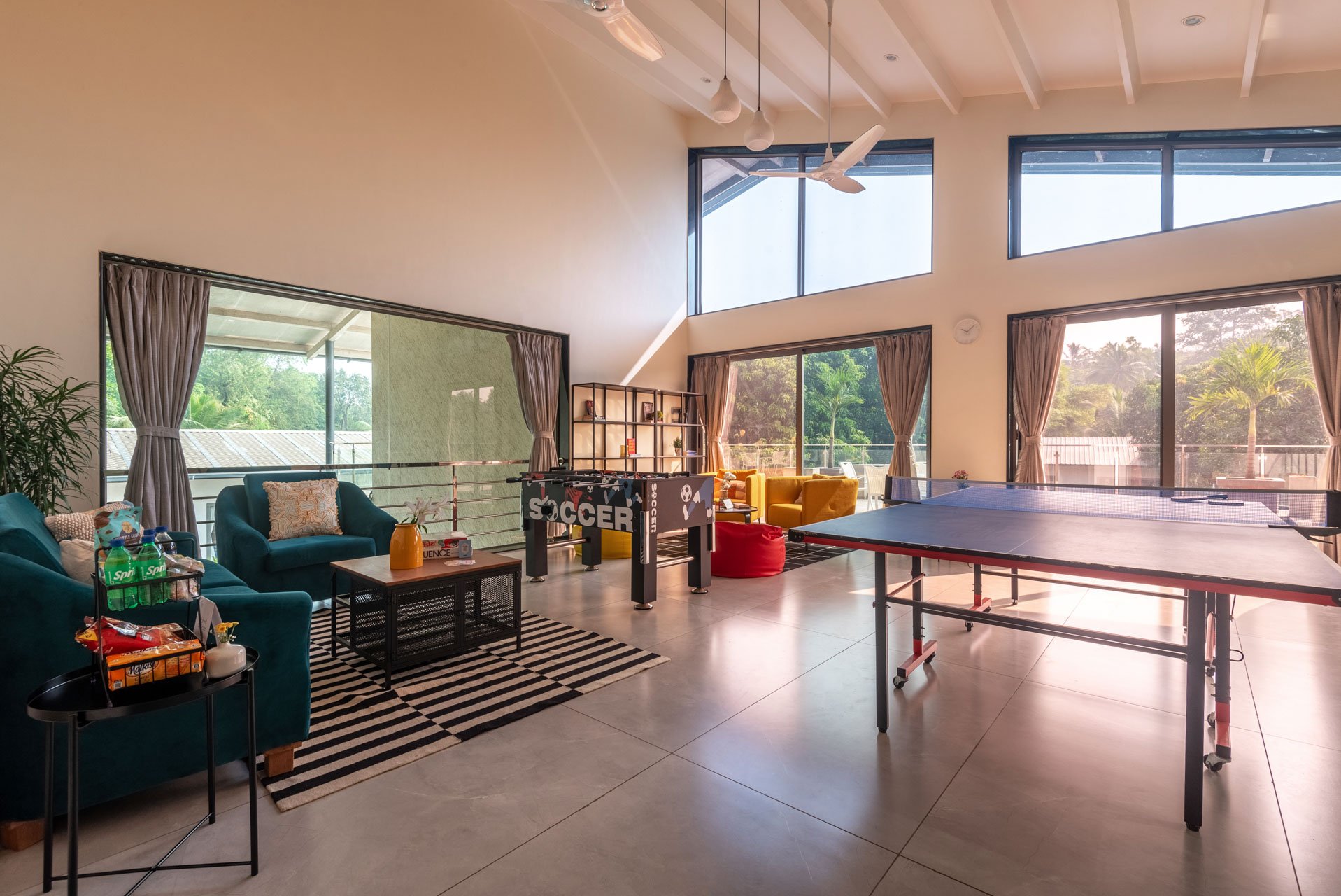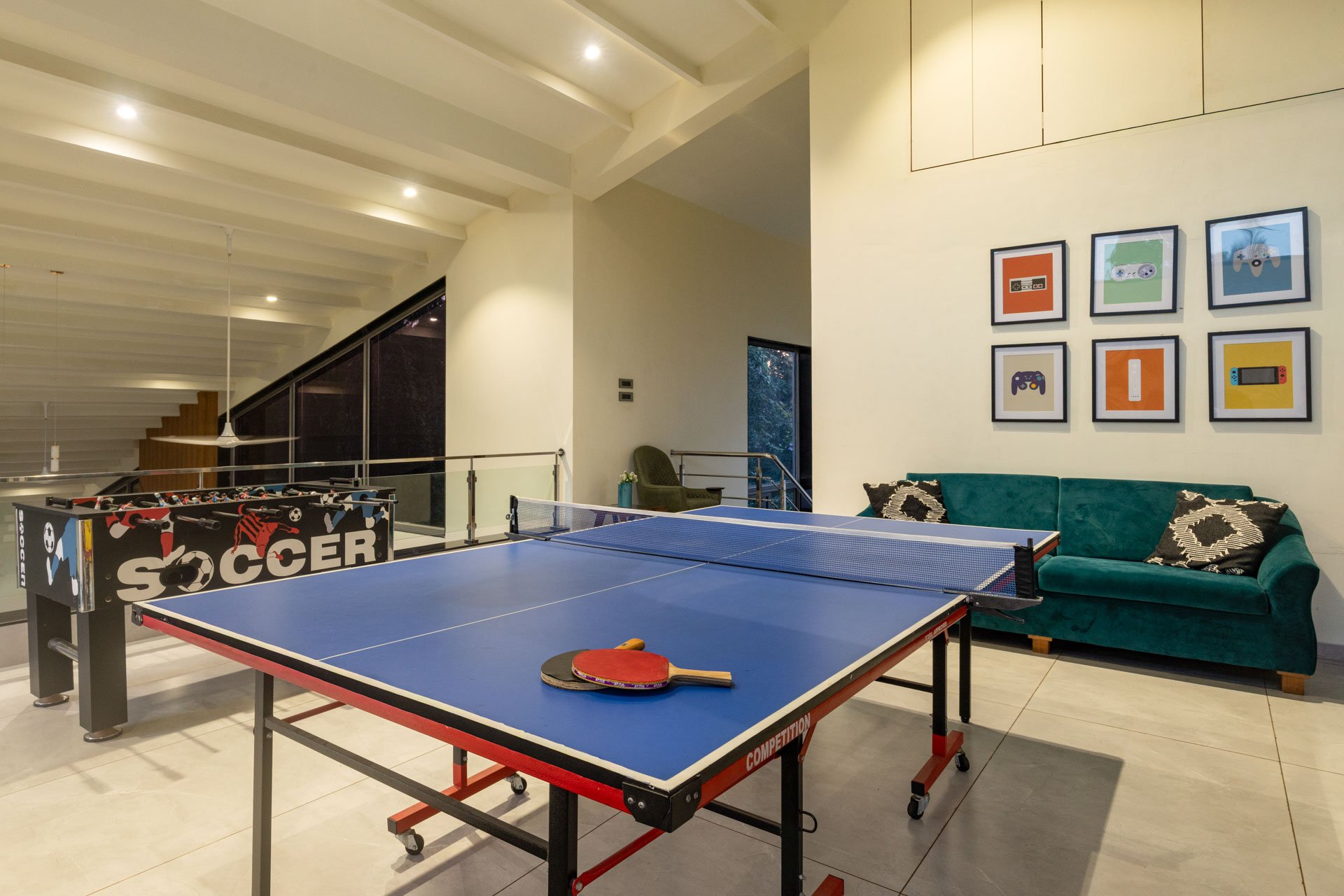 In a separate unit is the designated games room, equipped with a multitude of indoor games.