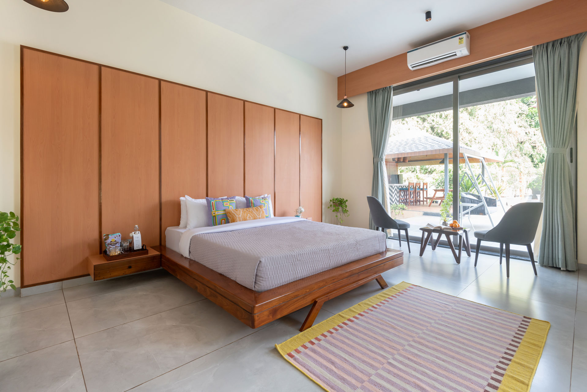 This is a spacious bedroom on the ground floor that opens up to the private swimming pool.