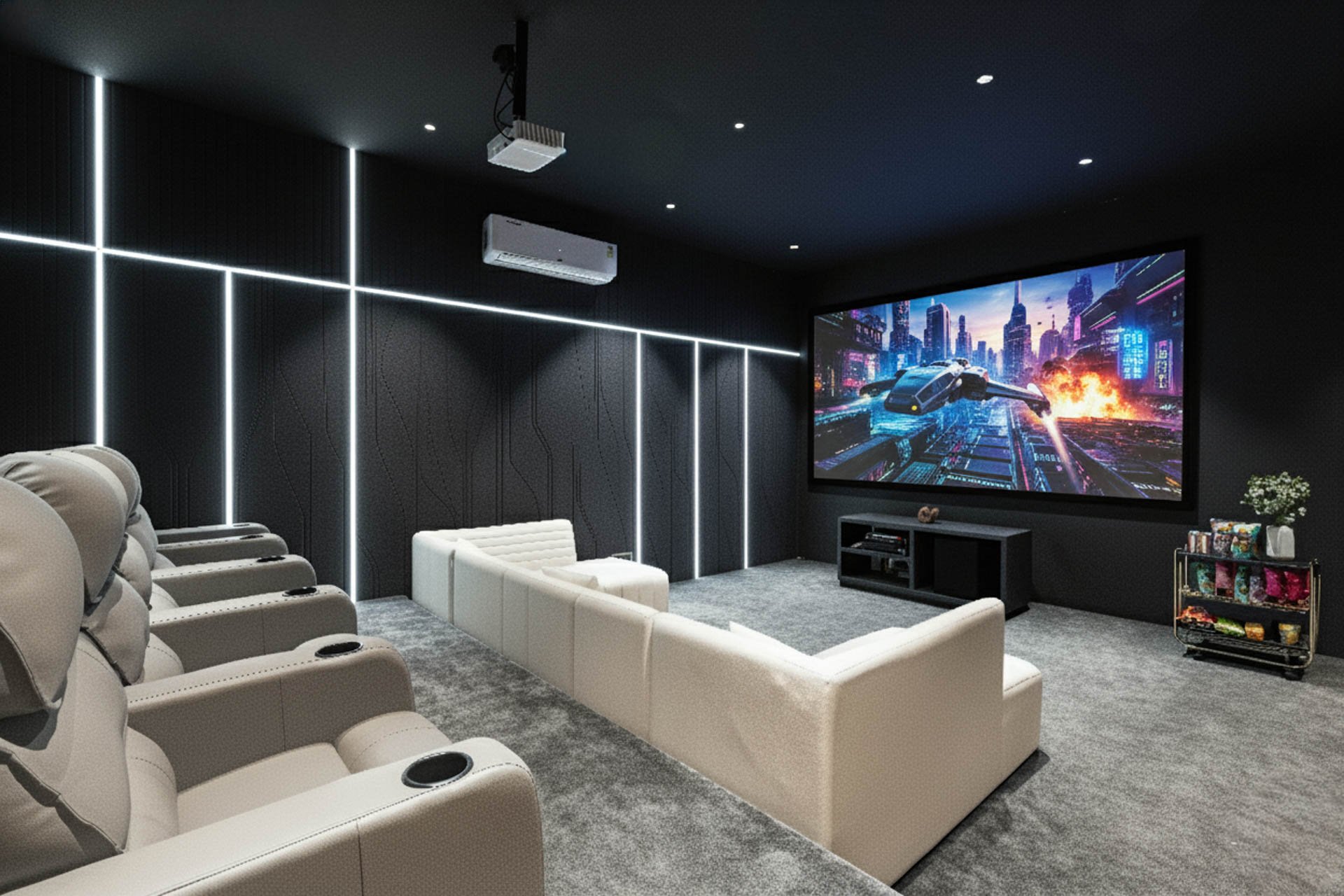 – Projector set-up, ideal for spending an evening in