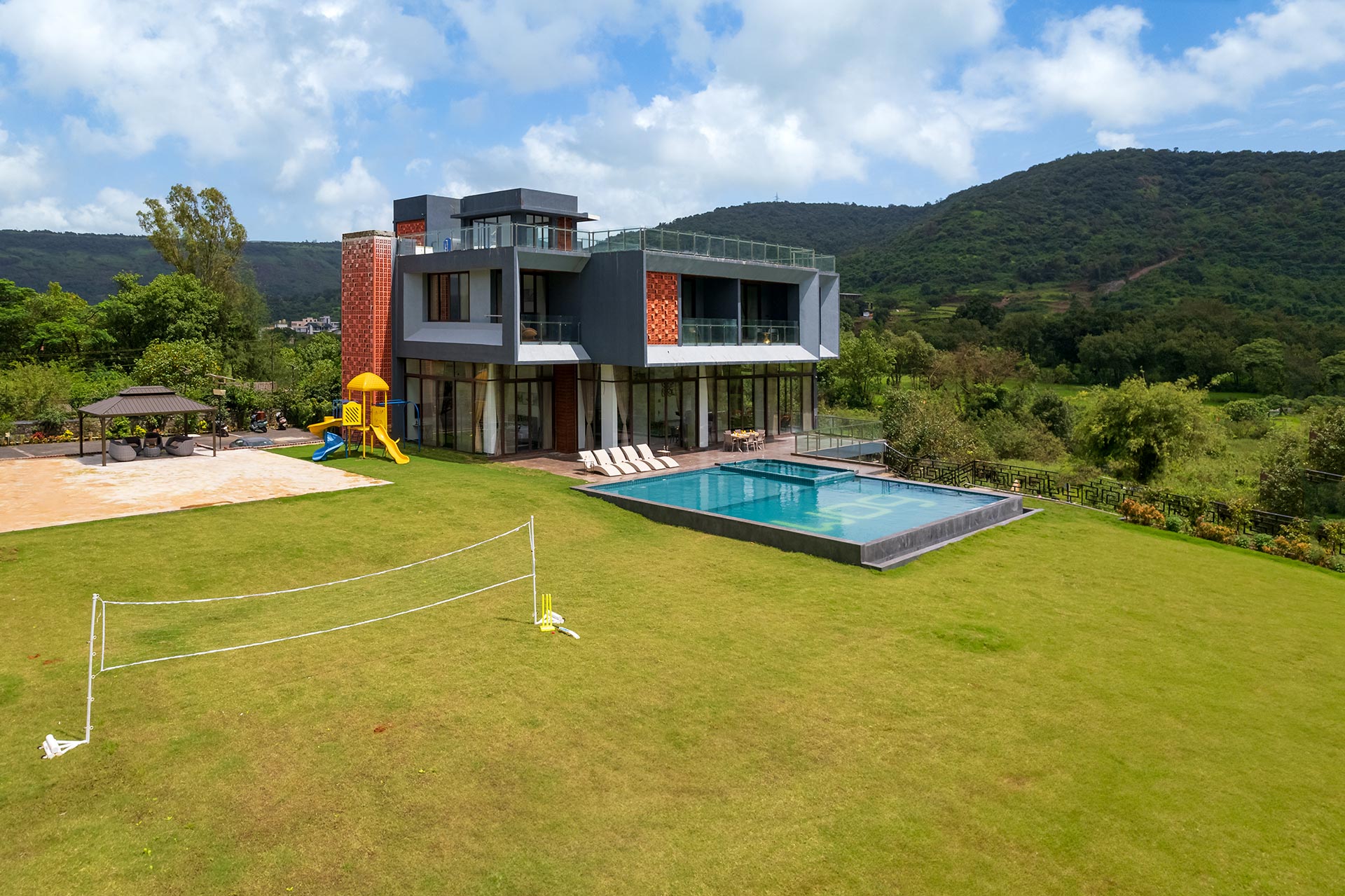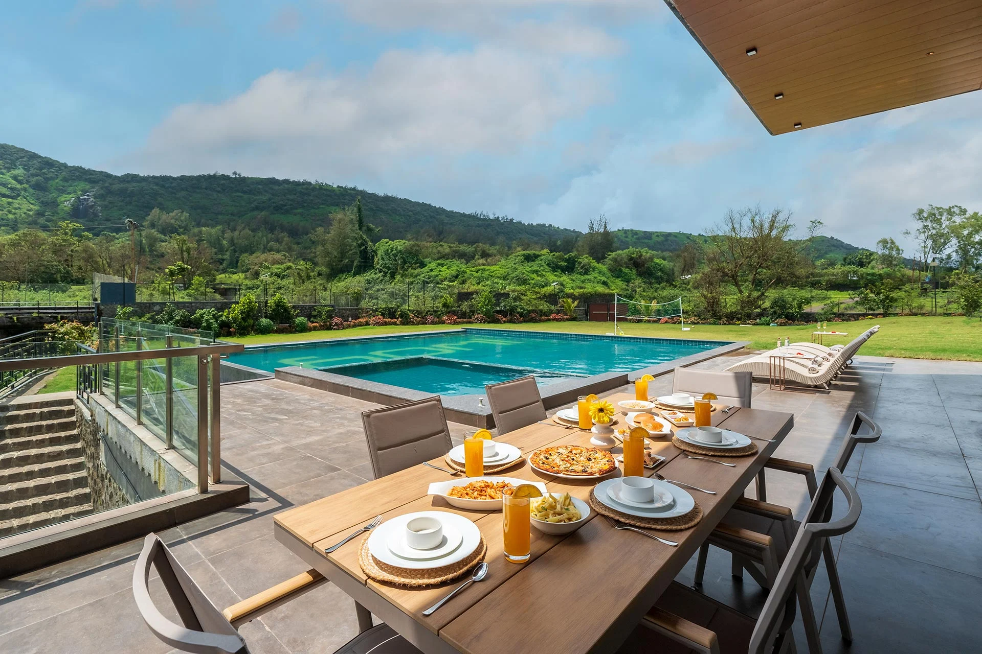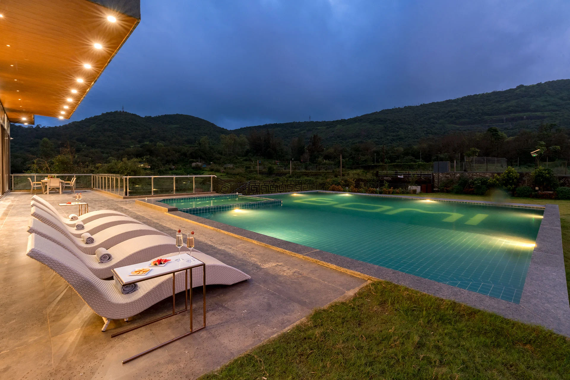 Step outside and you’ll see a sprawling lawn and a massive pool with a jacuzzi. And for those extra special occasions, there’s a second pool on the patio. Explore the nearby nature paths and experience the wonder of Lonavala’s monsoon—waterfalls, birds, and verdant landscapes are just waiting to be discovered.