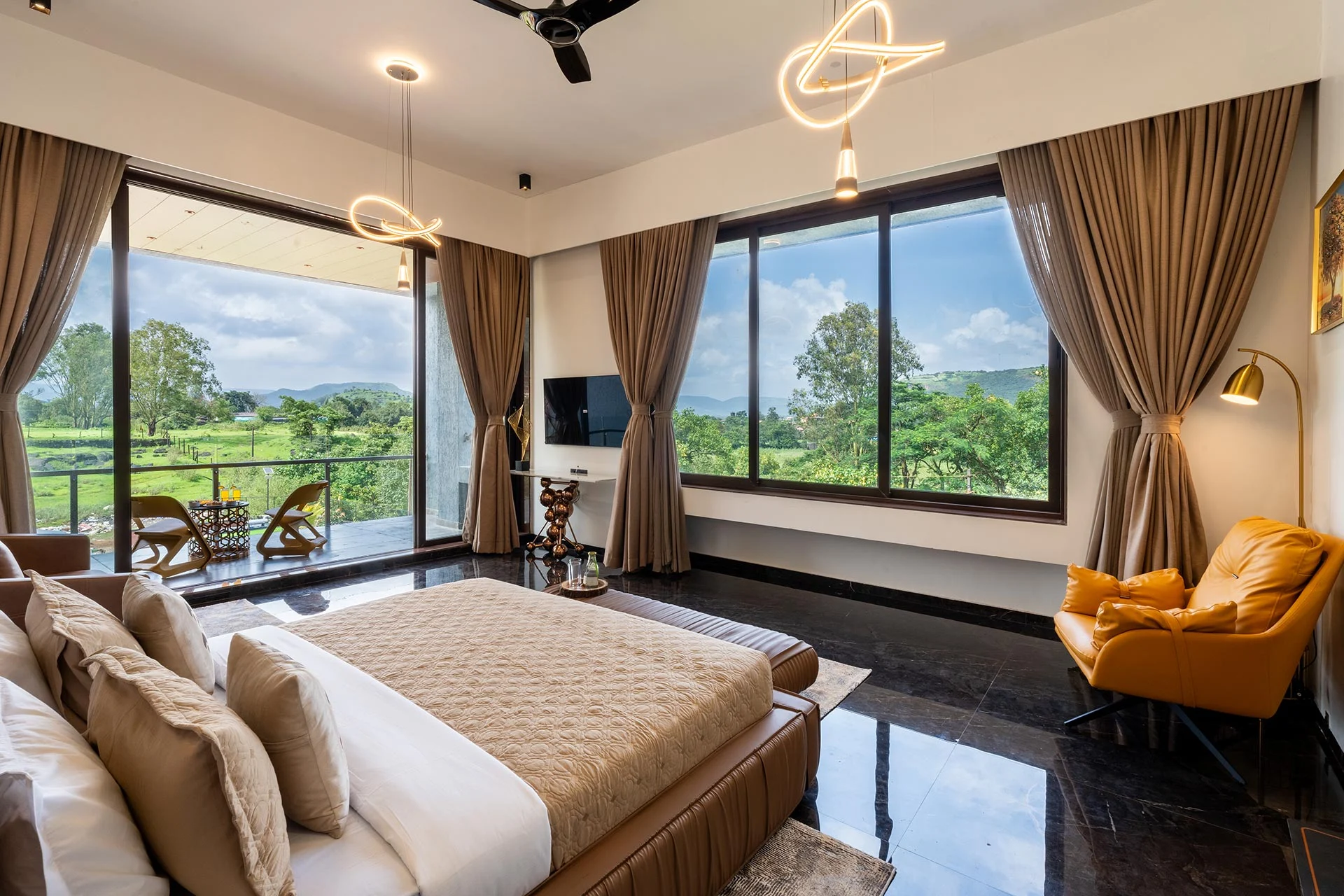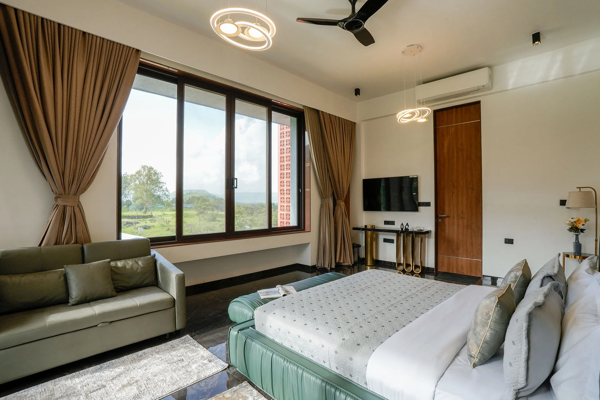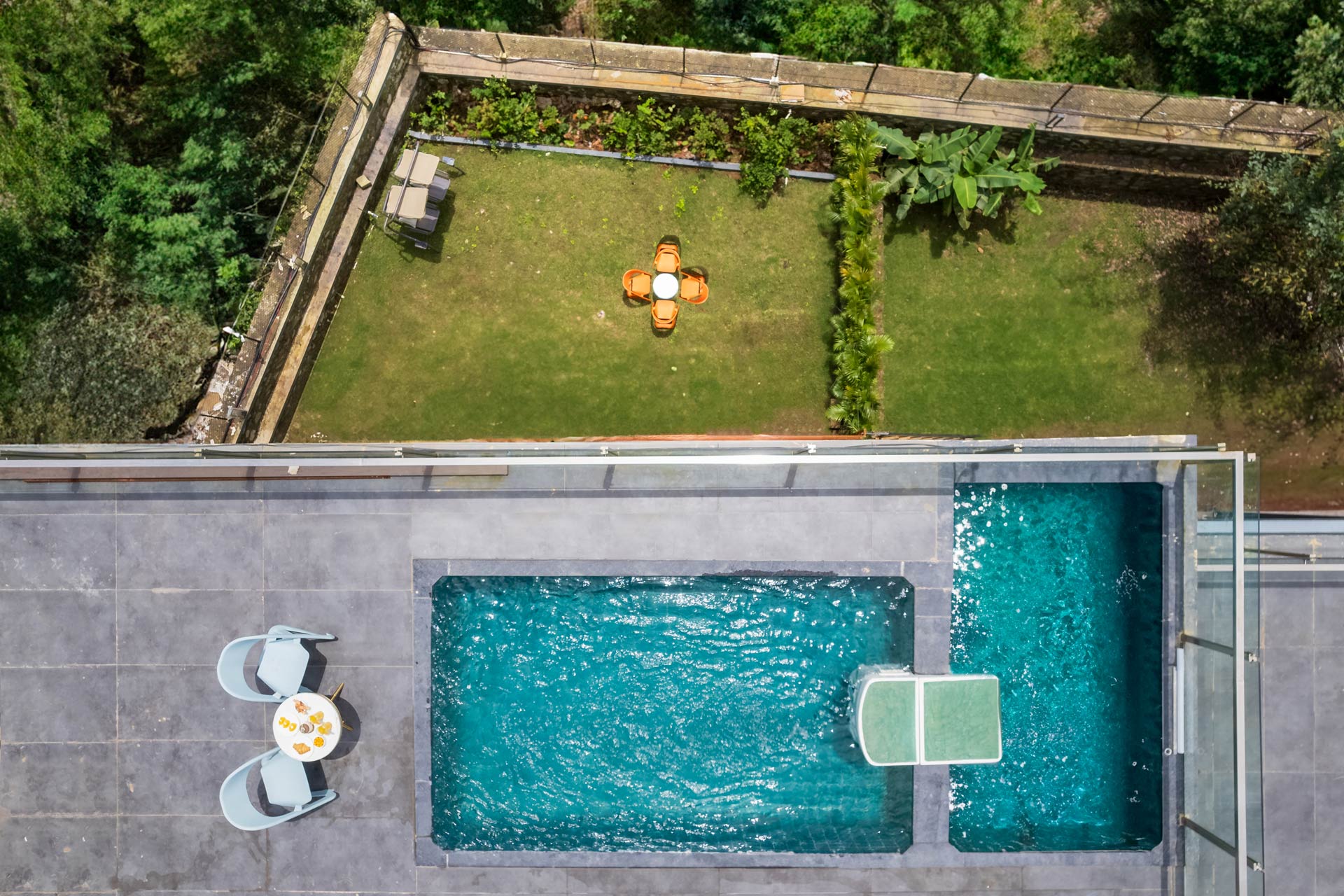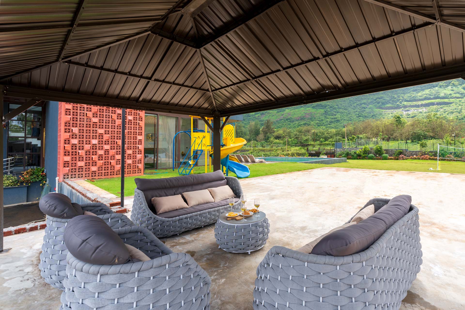 Step outside and you’ll see a sprawling lawn and a massive pool with a jacuzzi. And for those extra special occasions, there’s a second pool on the patio. Explore the nearby nature paths and experience the wonder of Lonavala’s monsoon—waterfalls, birds, and verdant landscapes are just waiting to be discovered.