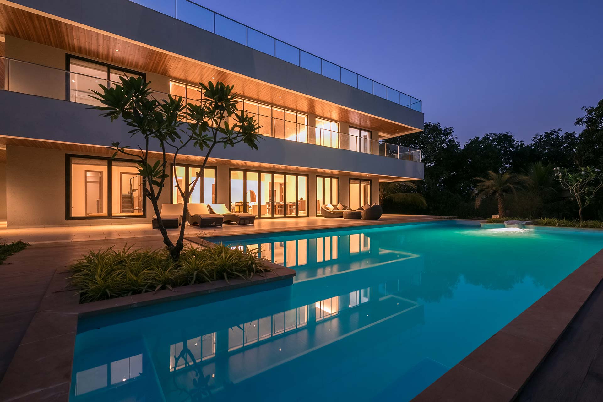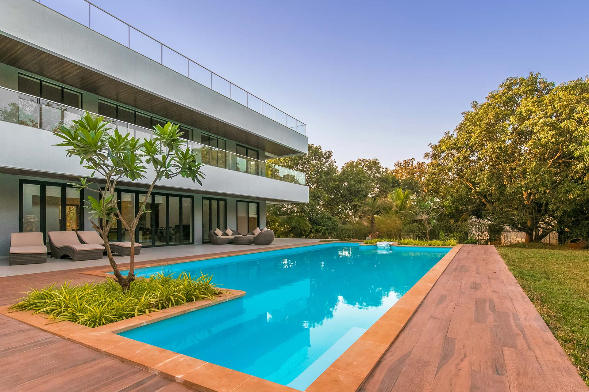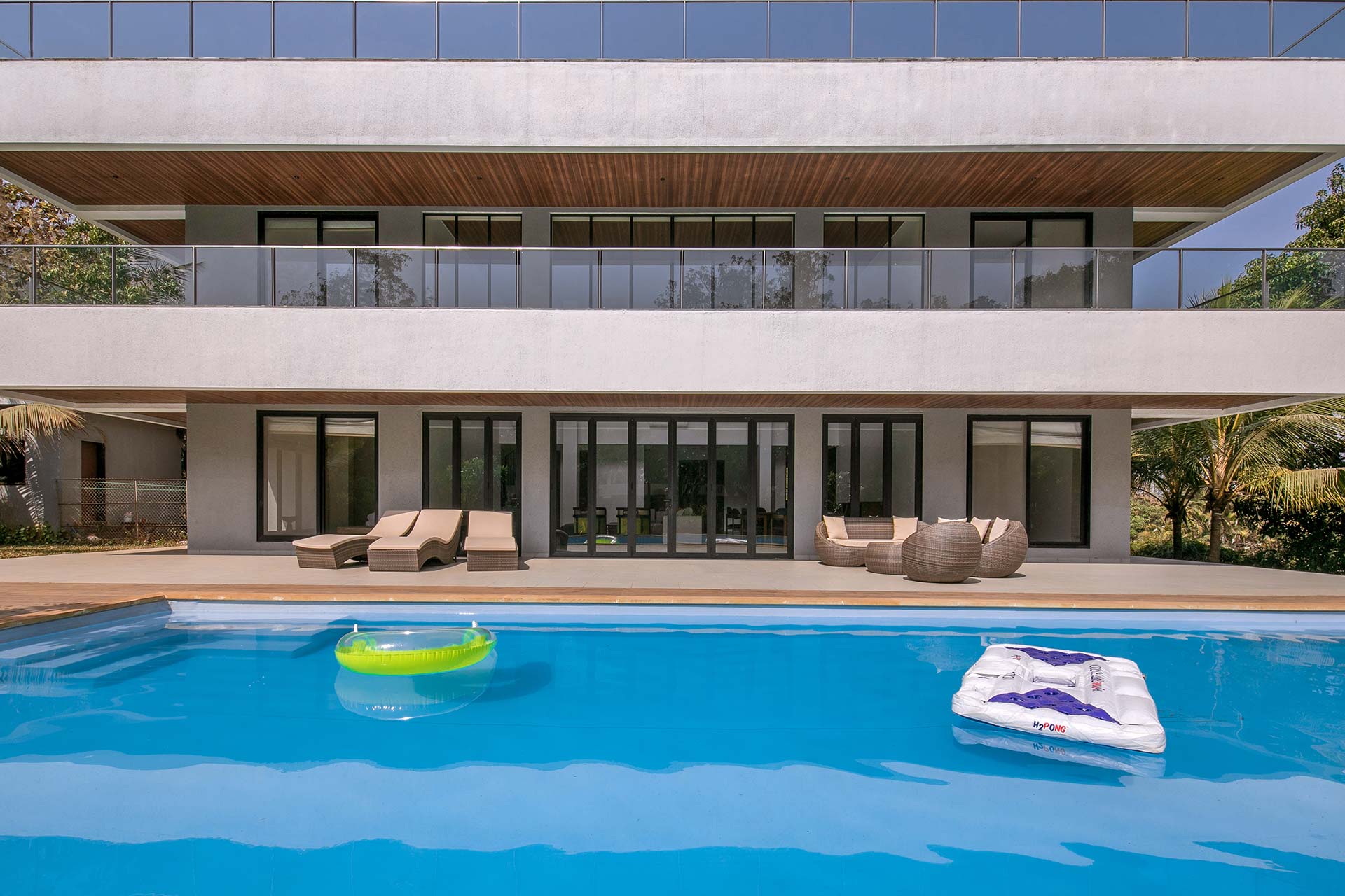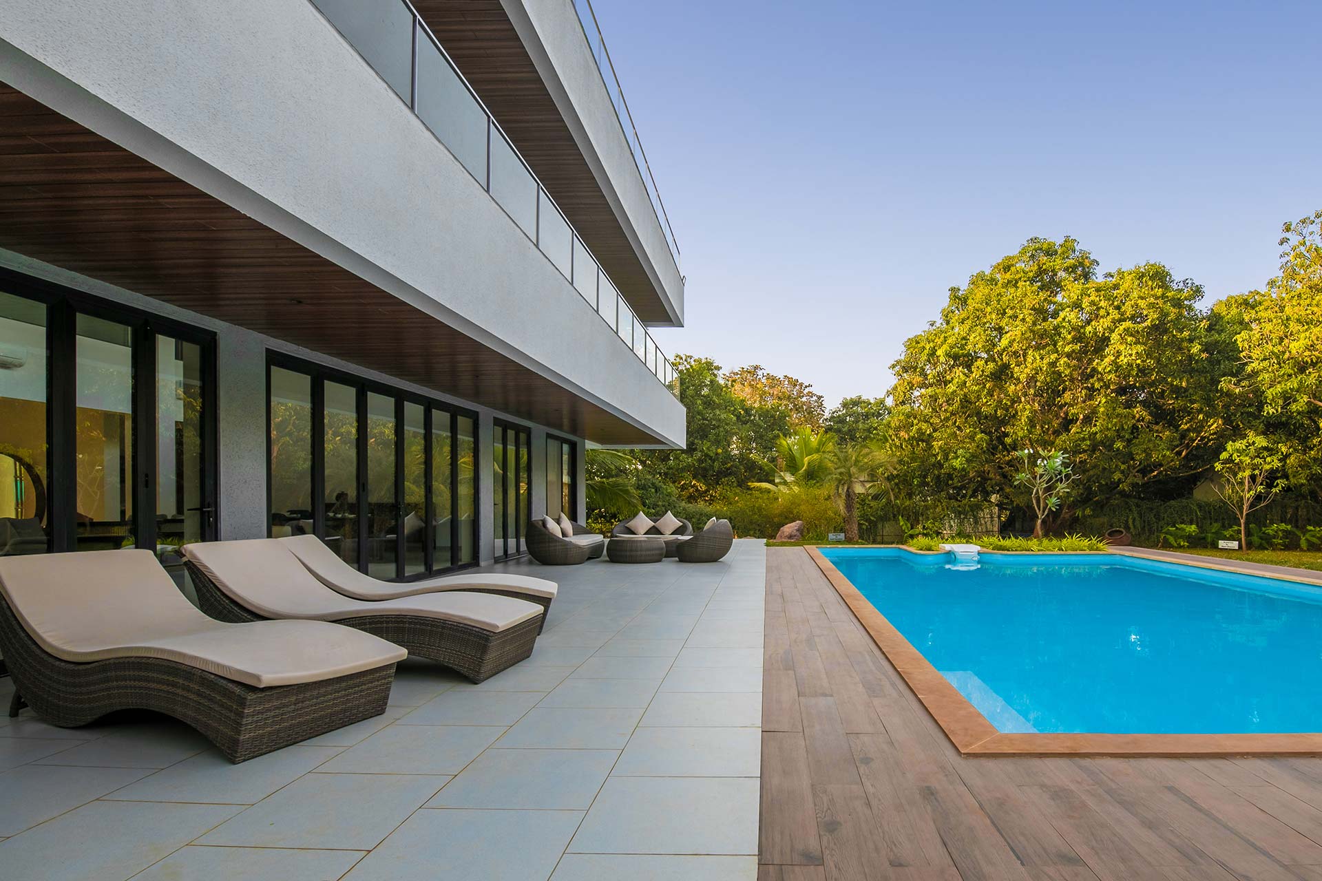 – The pool deck makes for an ideal spot to unwind in. It has pool loungers and sit-out space.