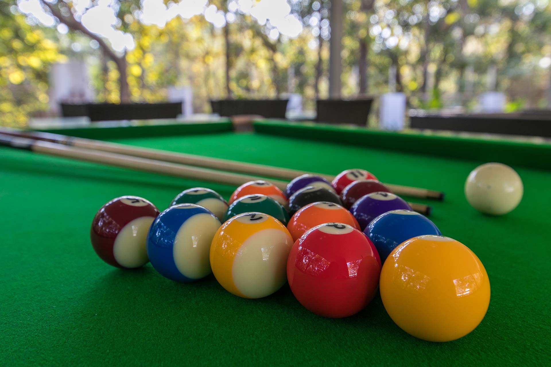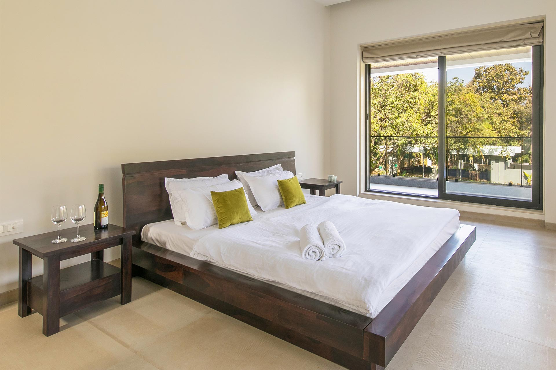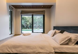 – Both rooms on the ground floor open up to the private patio, and all rooms on the first floor have an attached, running balcony, overlooking the pool and the garden.