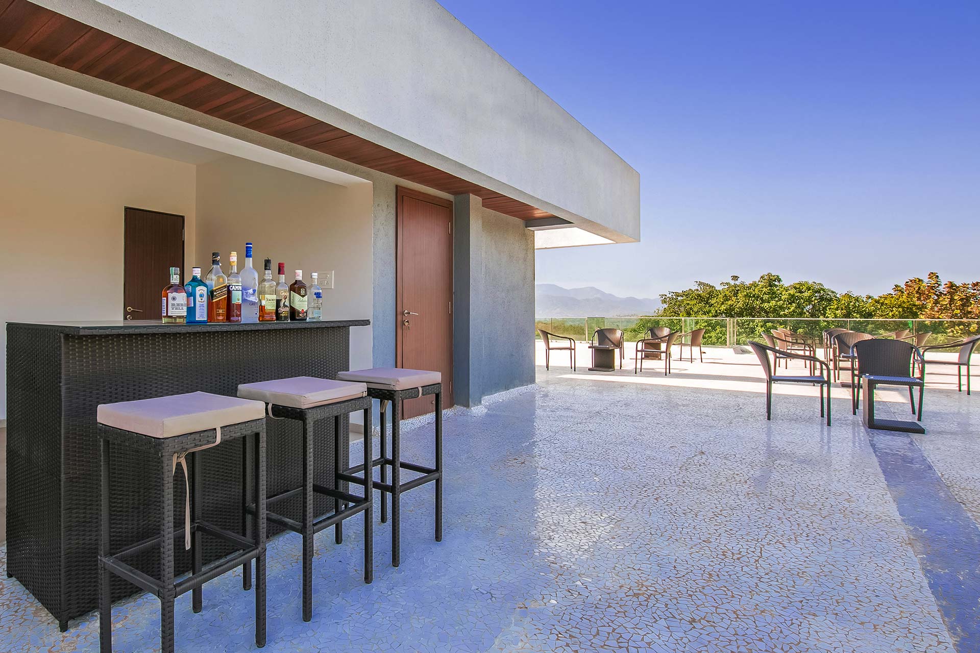 – There is an outdoor bar counter on the terrace.