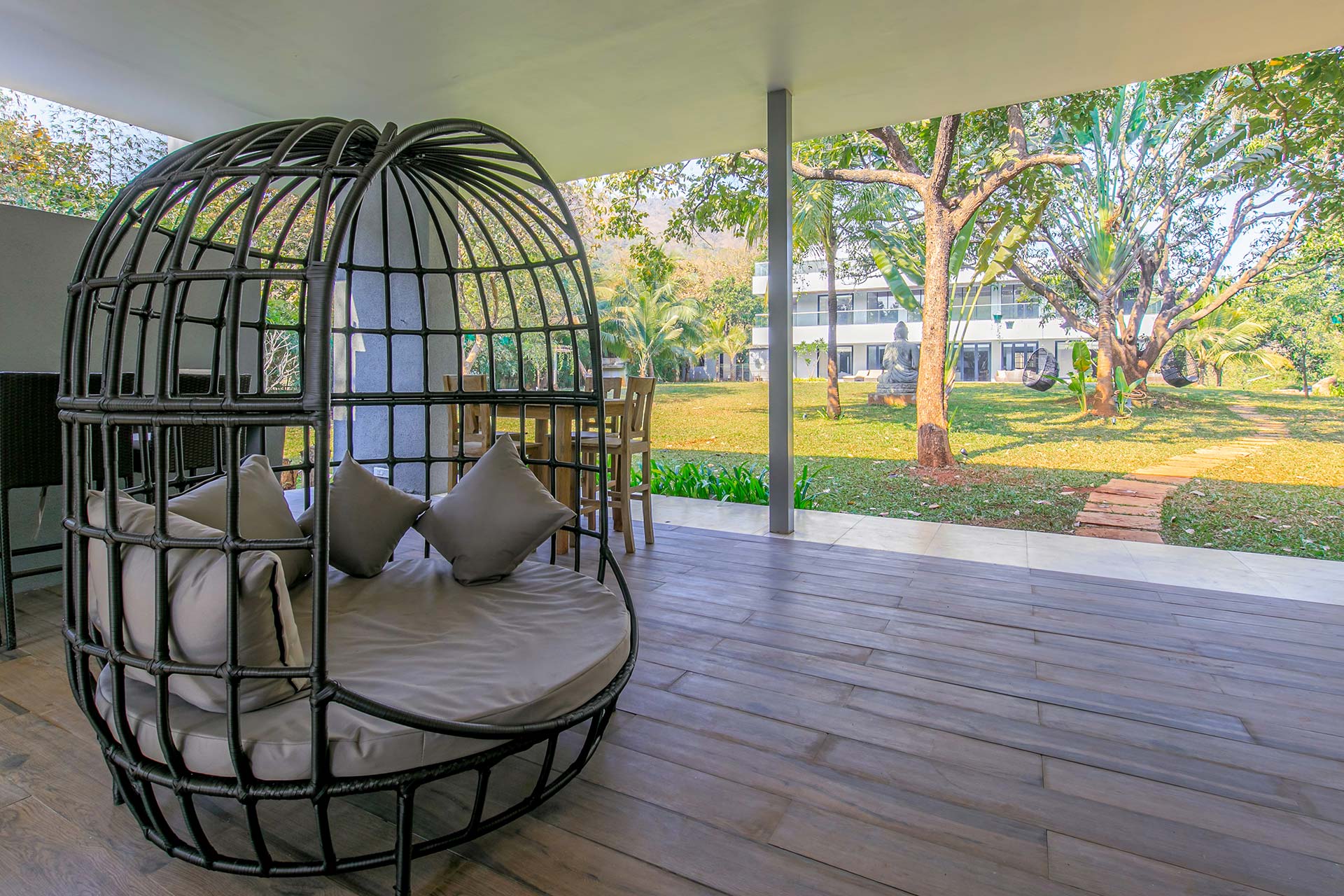 – Buddha statue adorning the lawn