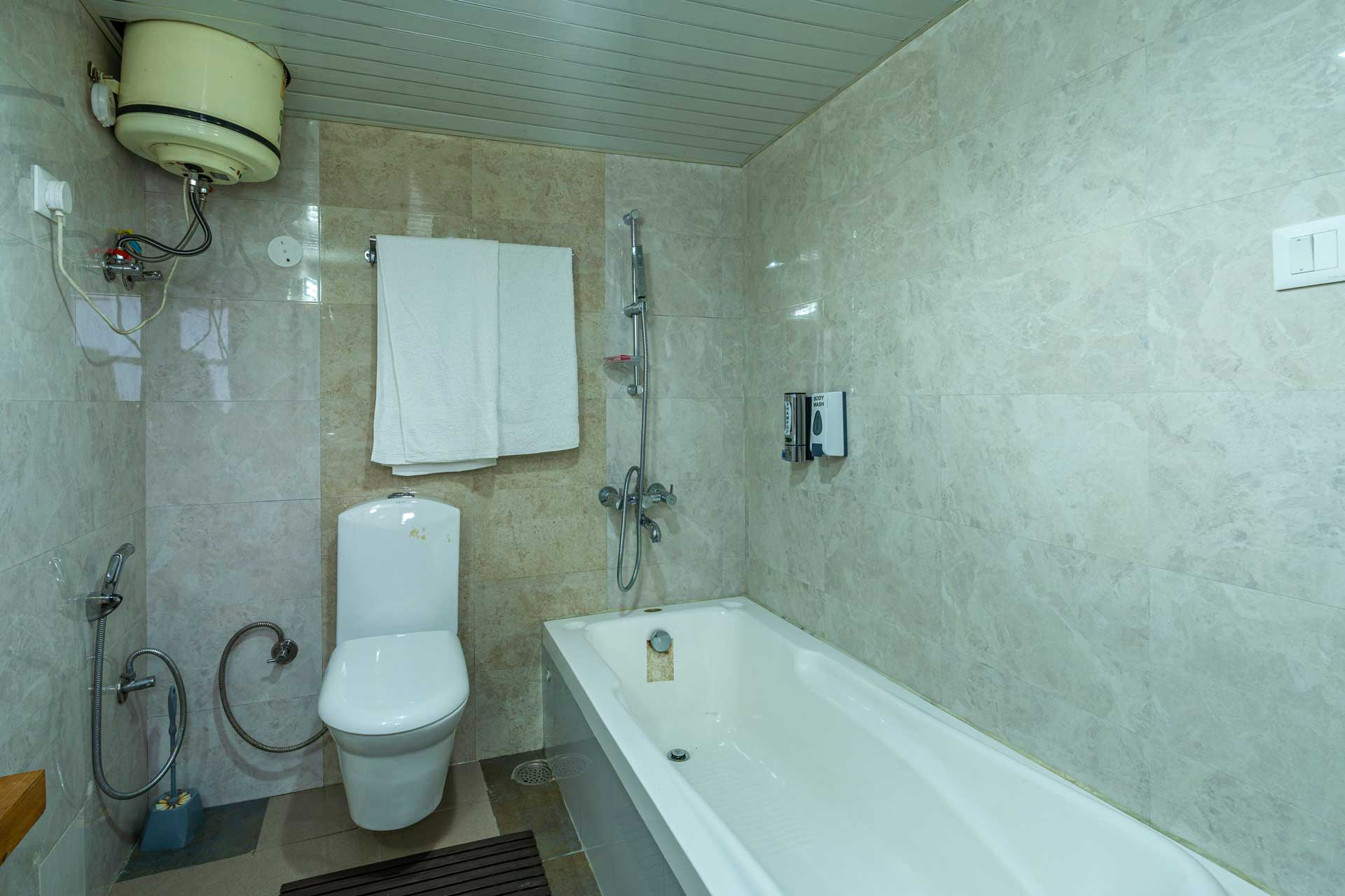 – Geysers, towels, toiletries, hair-dryer
