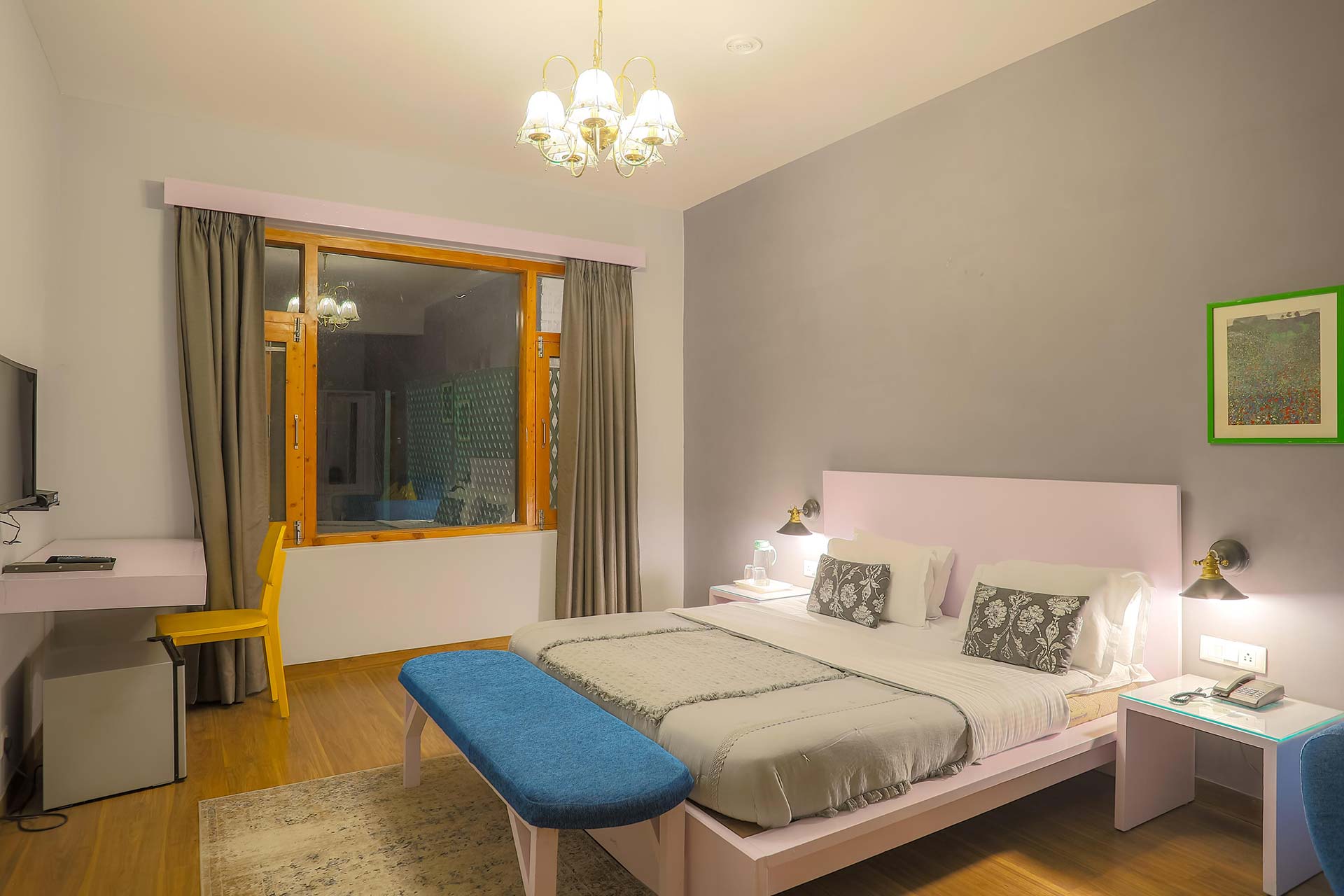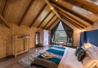 A cosy home in the mountains with a sprawling lawn and incredible views – isn’t that the dream? Tulip Terraces is the perfect getaway spot if that sounds good to you. A holiday home where all rooms have attached bathrooms, personal refrigerators and intercoms, it ensures that you have a comfortable stay. The villa is nestled at an elevation of 7000 ft. and is close to the hot springs of Vashisht and the Jogni waterfall, which are interesting to make a visit to while you stay here. At nominal charges, bonfires and barbecues can be arranged. It truly is an idyllic place to spend a few days away from city life at.