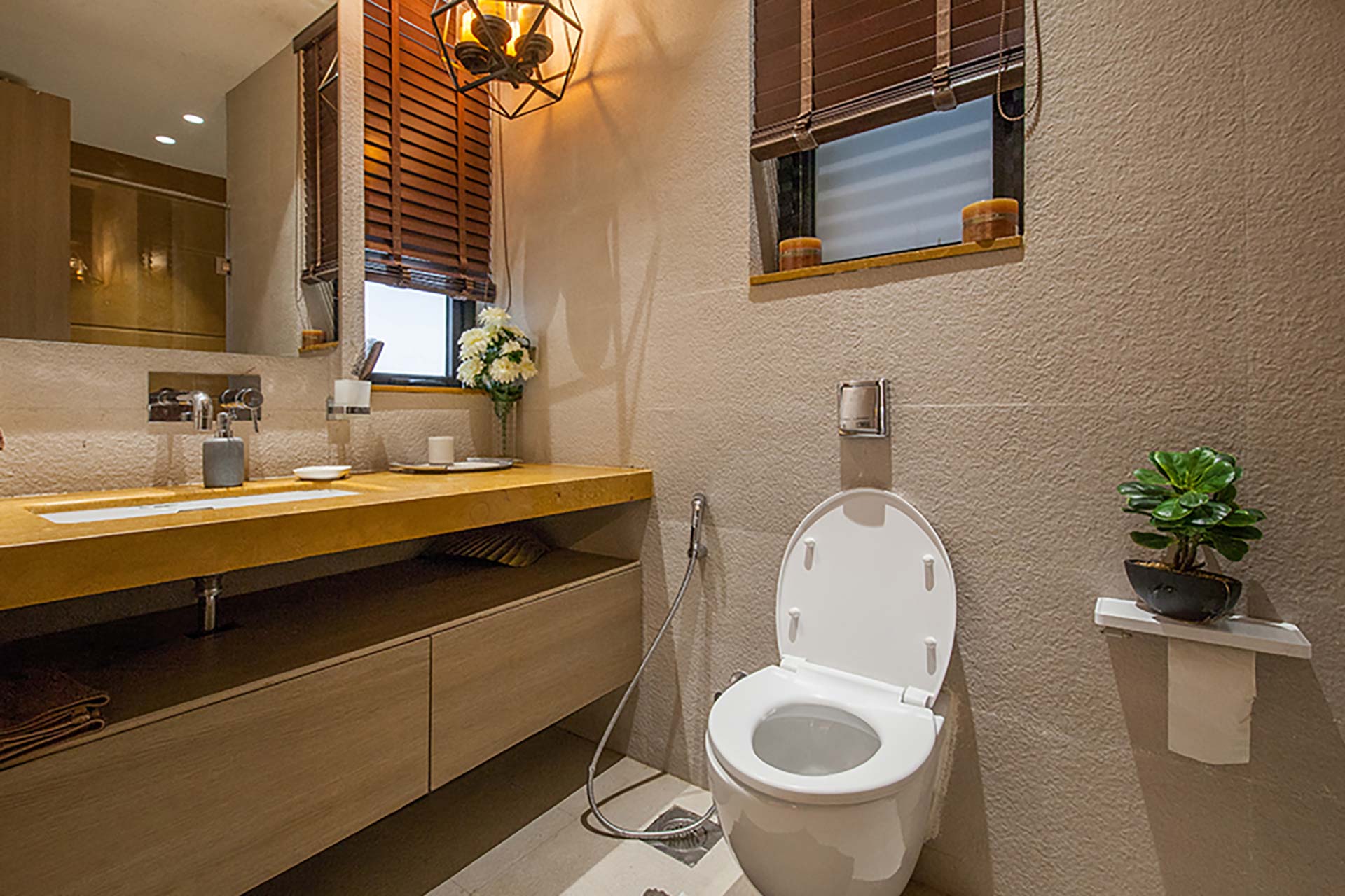 – There are 4 attached bathrooms and 1 common powder room on the ground floor and 1 common powder room in the basement.