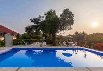 Within the property, guests can take a leisurely stroll on the sprawling lawns, relax in the gazebo or swing away to their heart’s content. Binge your favourite movies and TV shows. Play indoor games like card or ludo. Enjoy a refreshing dip in the private pool. Enjoy your favourite cocktails by the bar. Devour an alfresco feast in the gazebo. Relish a hearty barbecue meal. Enjoy the complimentary bonfire session Soak in the beautiful views around.