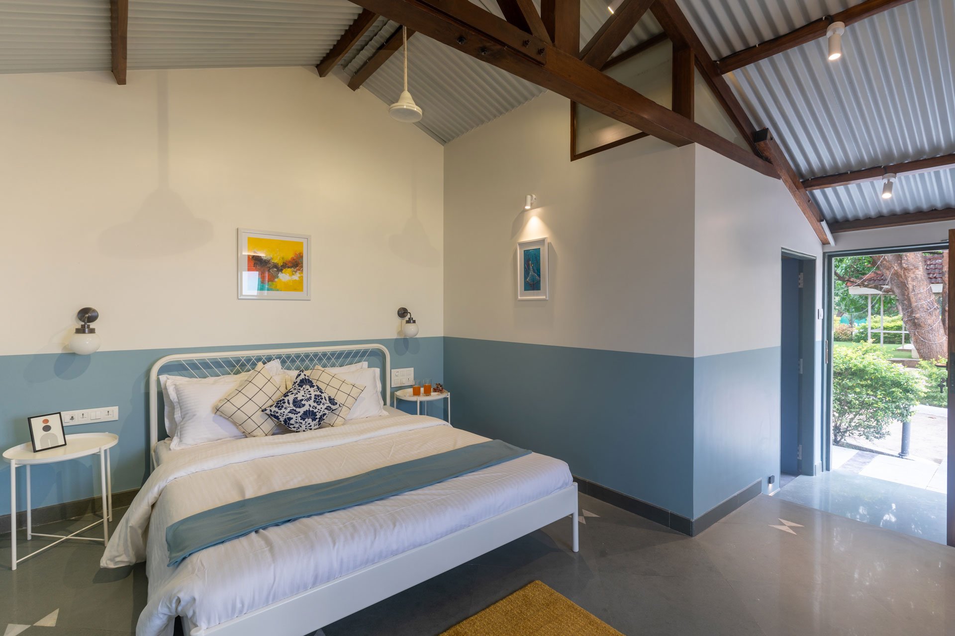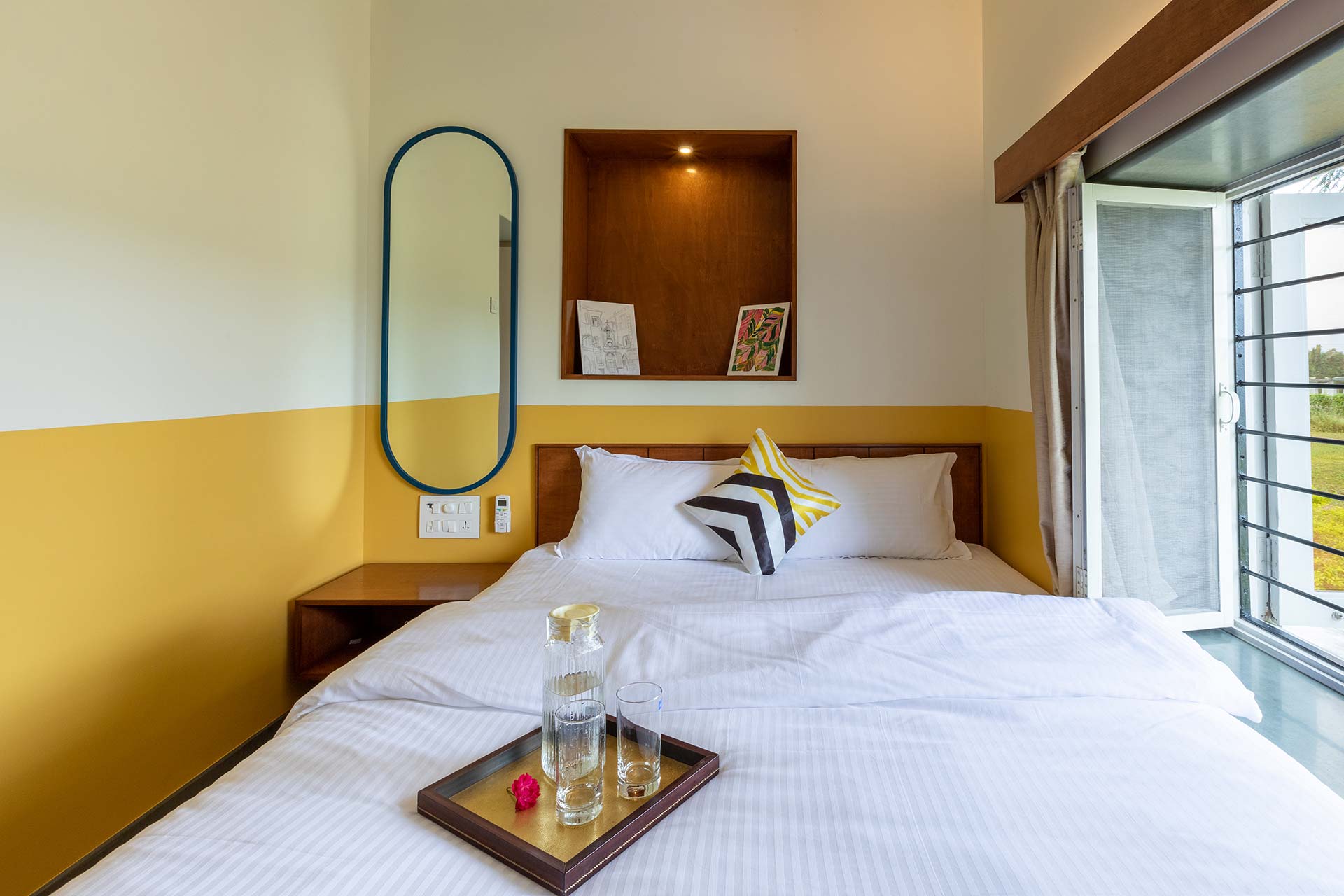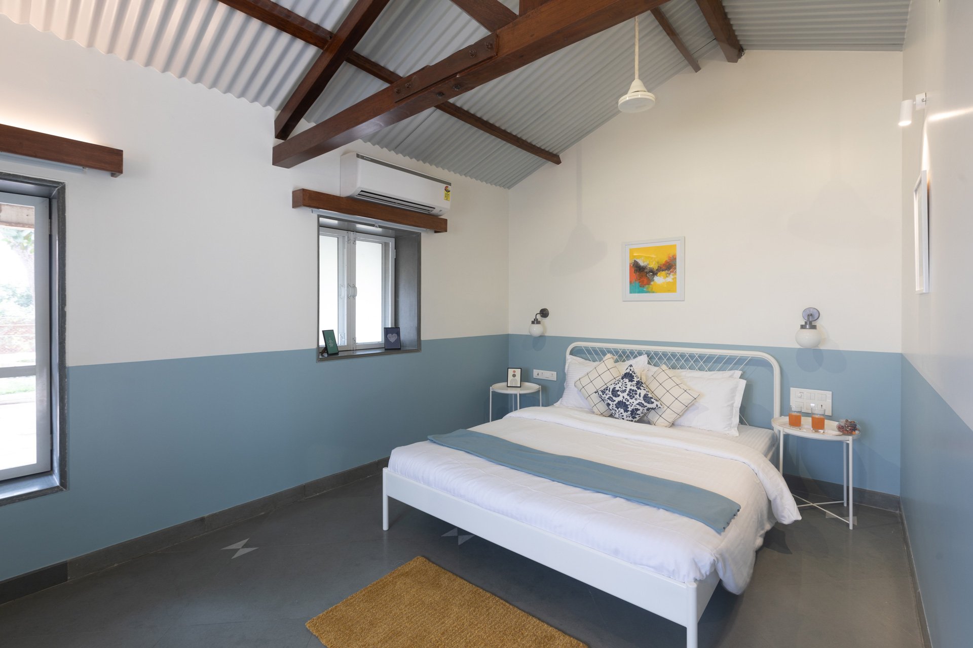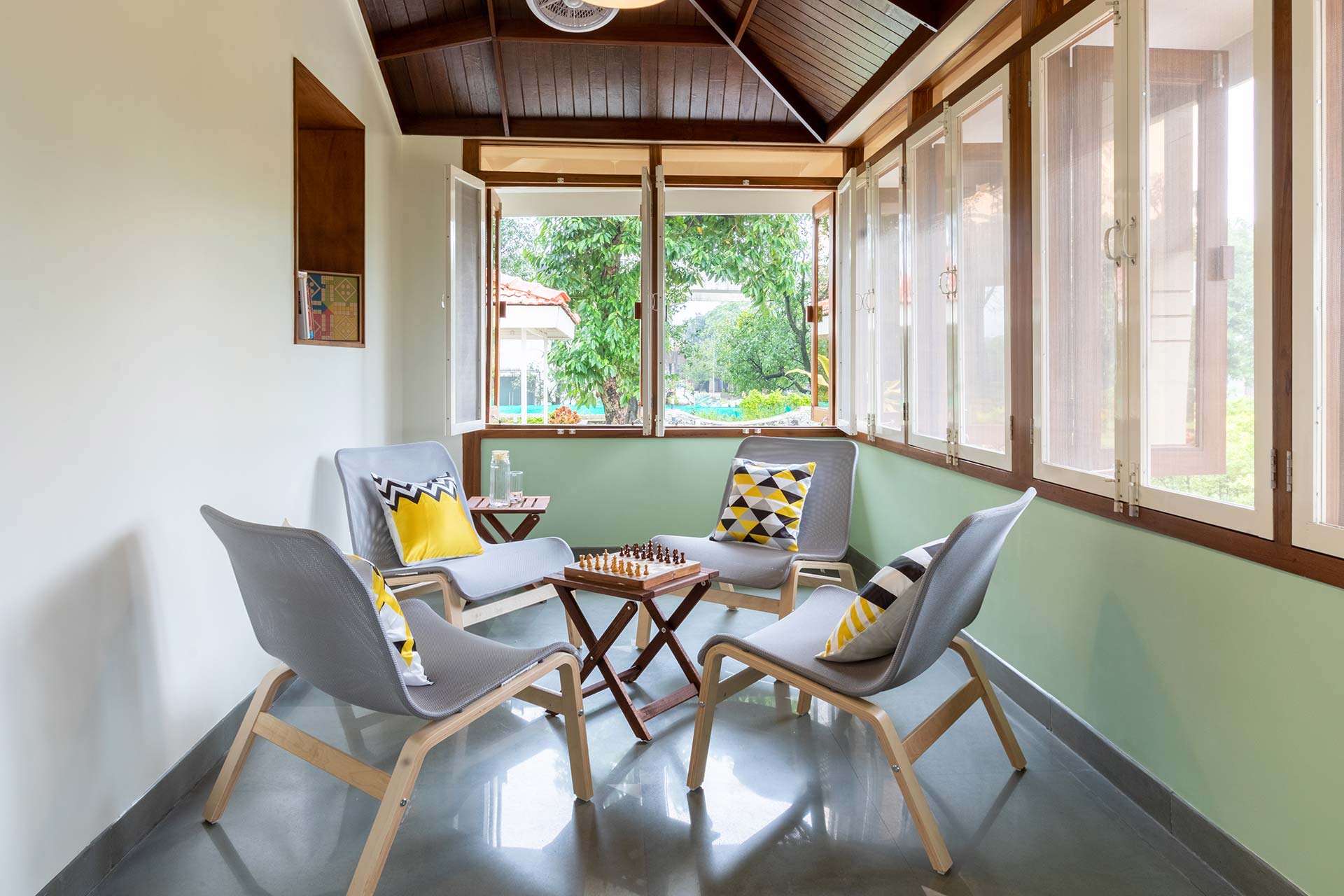 Within the property, guests can take a leisurely stroll on the sprawling lawns, relax in the gazebo or swing away to their heart’s content. Binge your favourite movies and TV shows. Play indoor games like card or ludo. Enjoy a refreshing dip in the private pool. Enjoy your favourite cocktails by the bar. Devour an alfresco feast in the gazebo. Relish a hearty barbecue meal. Enjoy the complimentary bonfire session Soak in the beautiful views around.