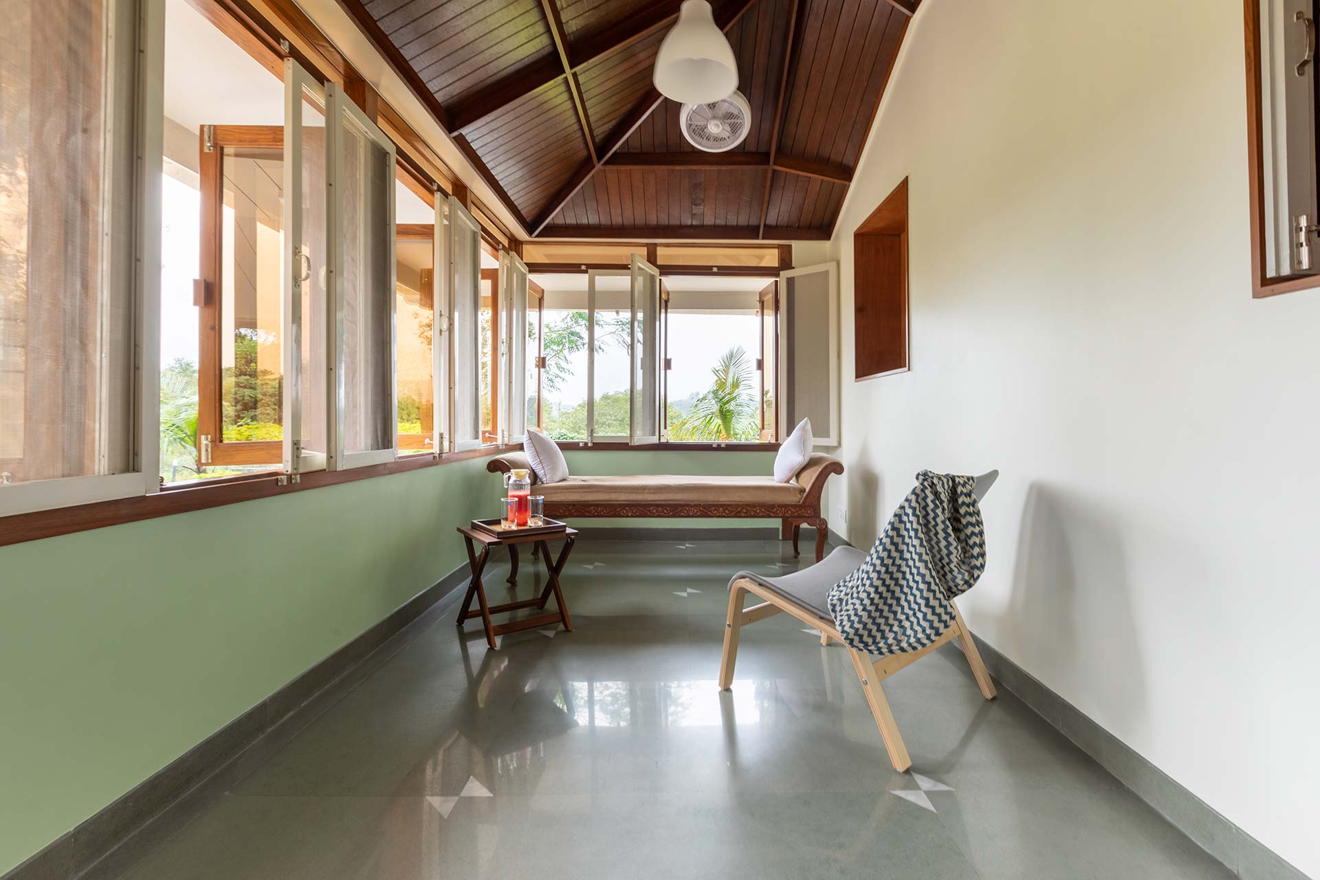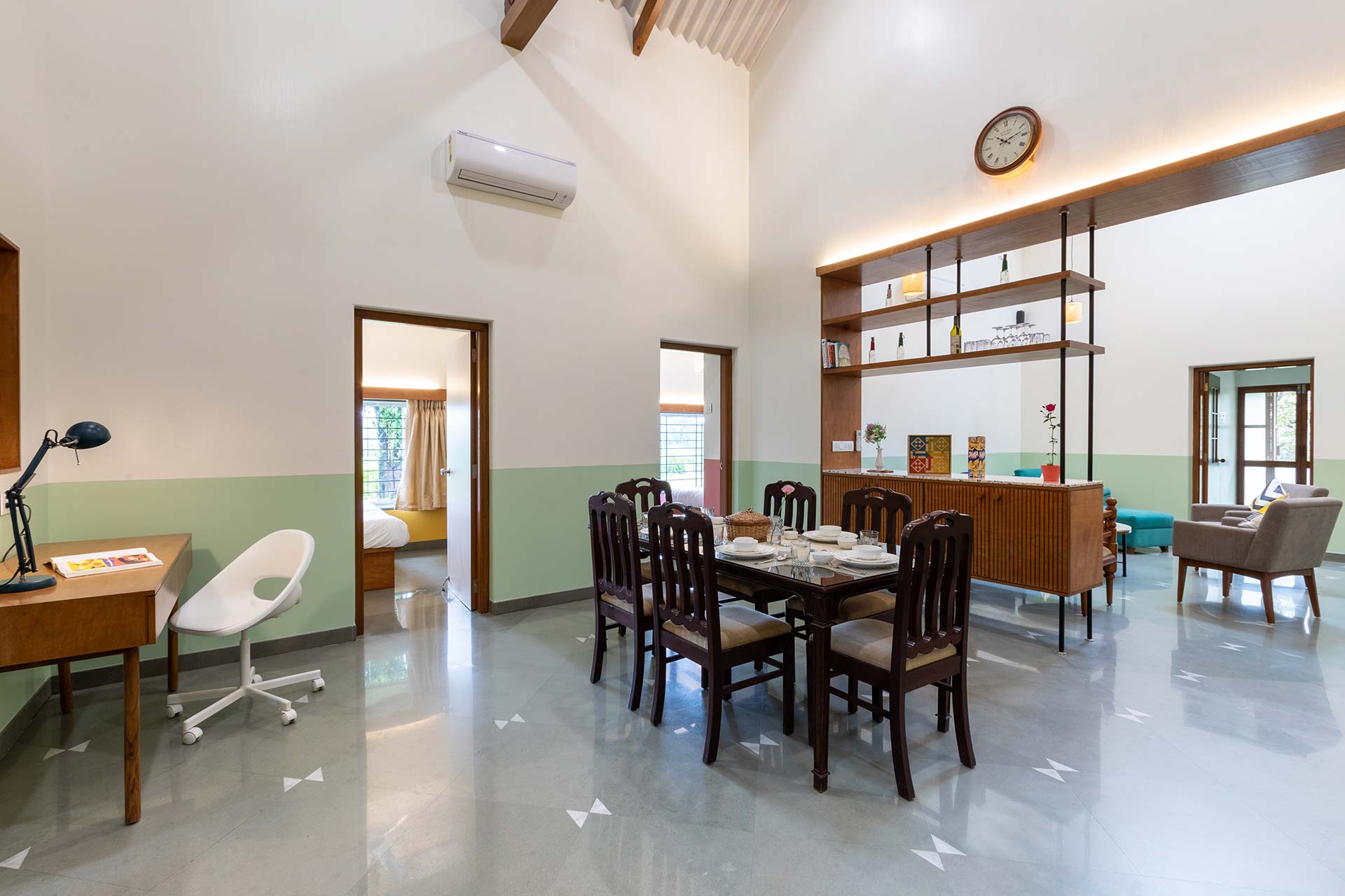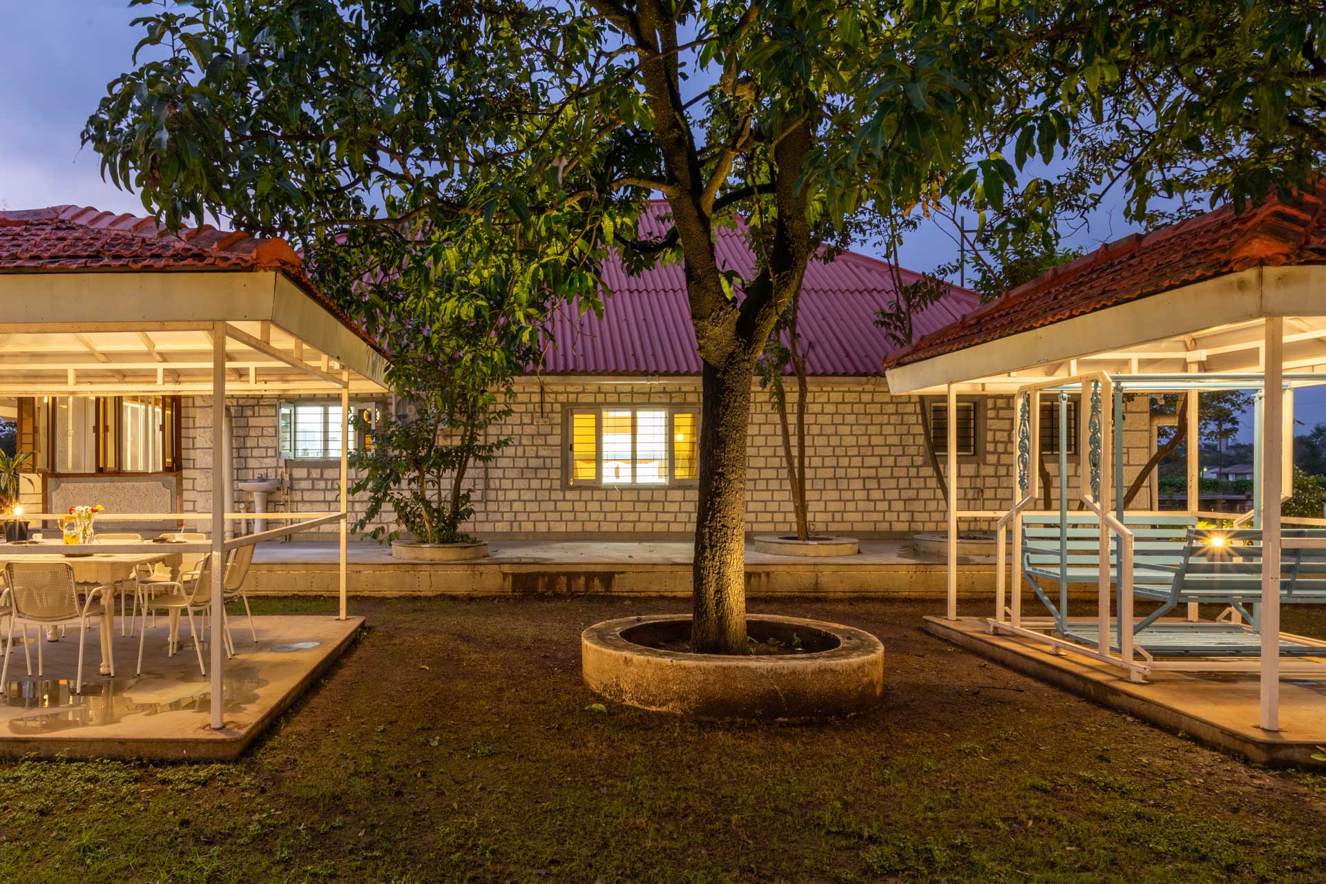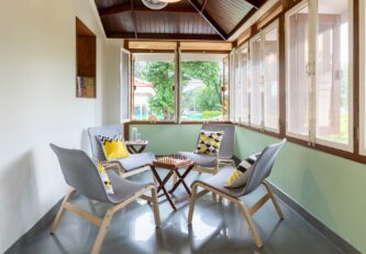 Drive through the verdant path and instantly feel yourself disconnect from the bustling city life. Immersed in dense vegetation and lush greenery, this century-old home is spread across sprawling 2 acres. This heritage holiday home is embellished with specially curated and handmade furnishings, adding to the olden charisma of this property. Making for an ideal nature escape, Villa Aangan boasts a verdant lawn complete with an outdoor gazebo, a sunroof ideal for spending the night under the stars, while tucked away undercover, and alfresco dining options. For hosting an entertaining evening, this holiday home boasts a private swimming pool that serves as the perfect hangout spot. Certainly, a rejuvenating getaway, this gorgeous villa is all ready to host you!