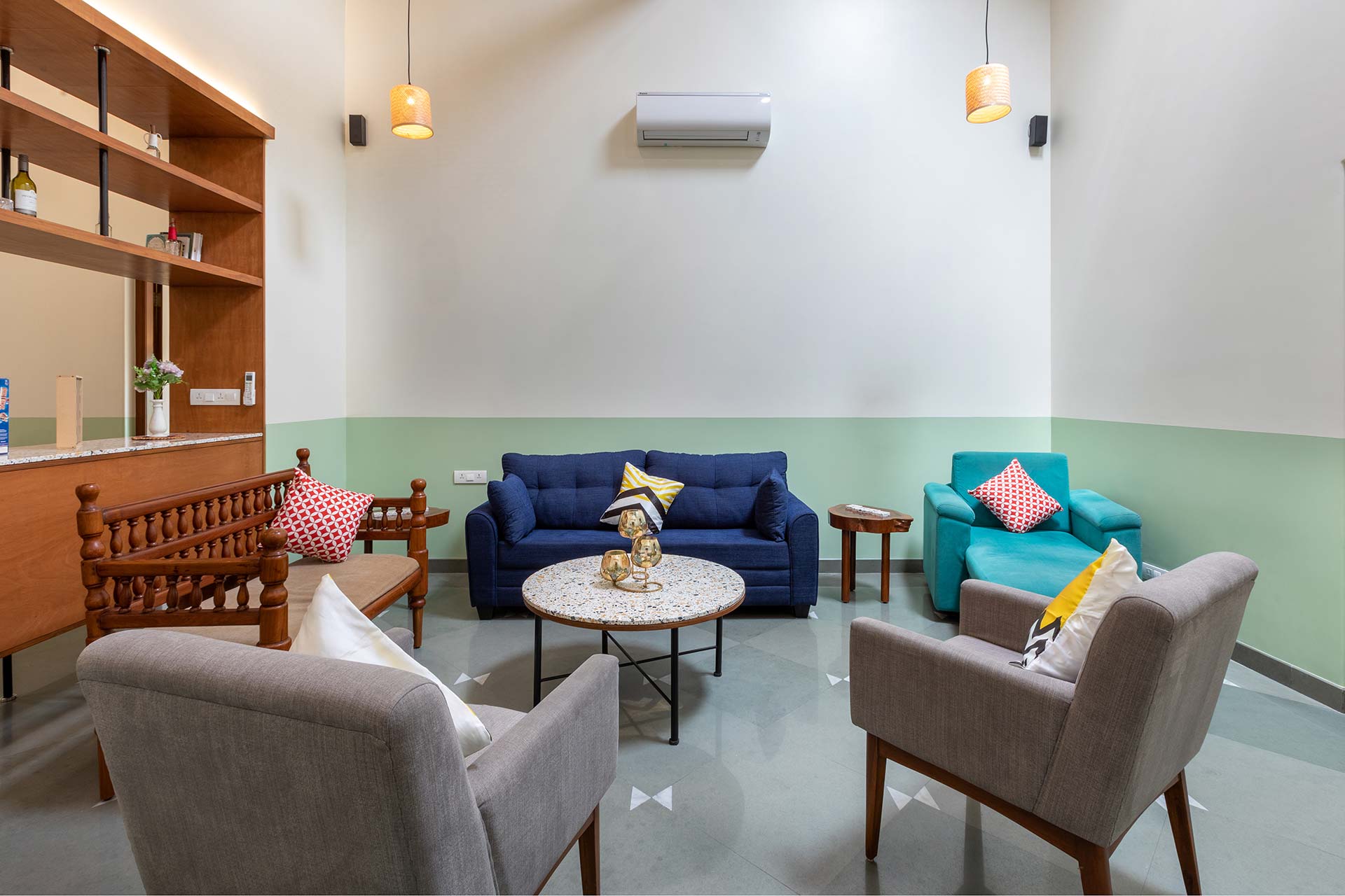 – It is equipped with Wi-Fi, AC, TV, a home theatre system with a projector, projector screen and a wired music system.