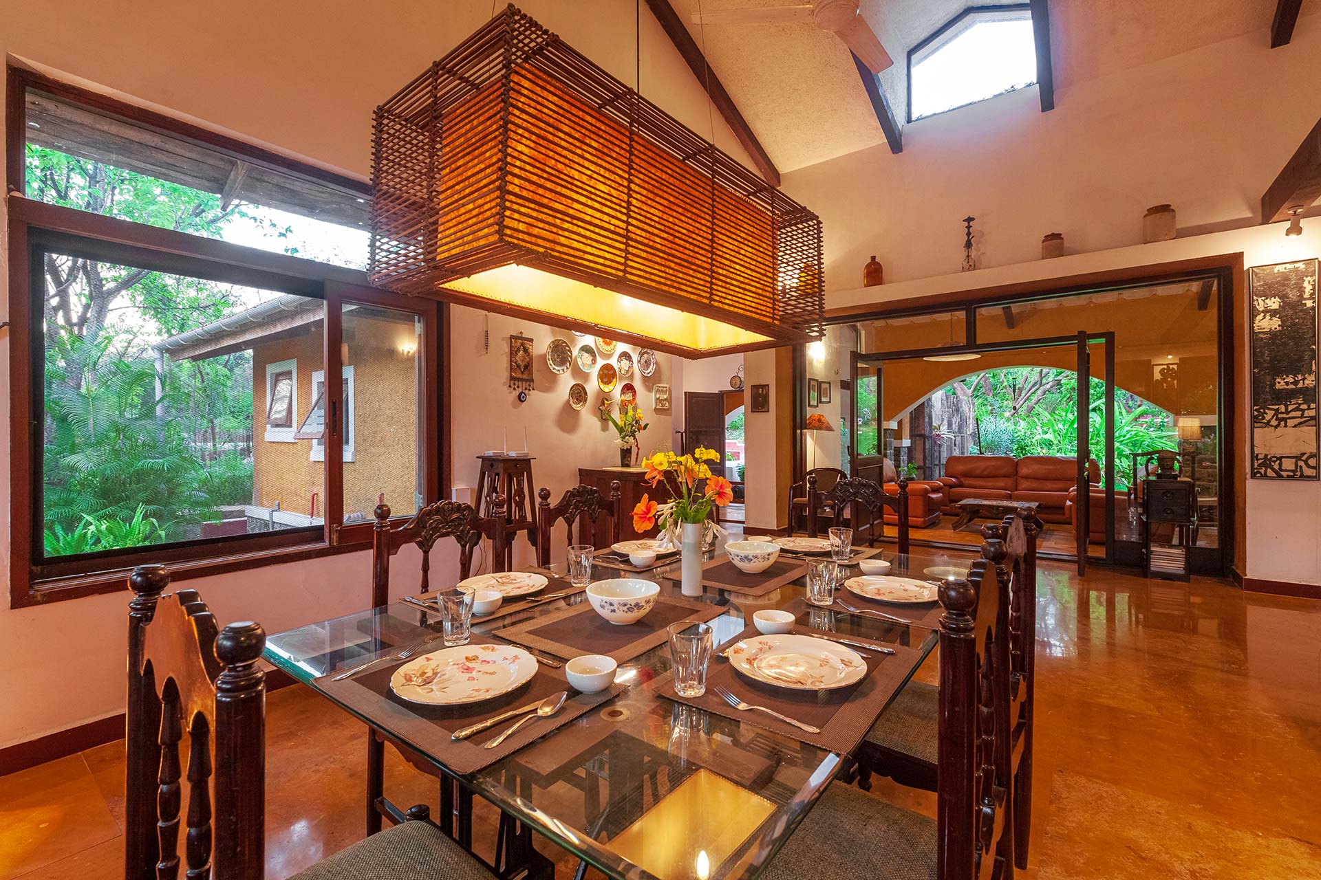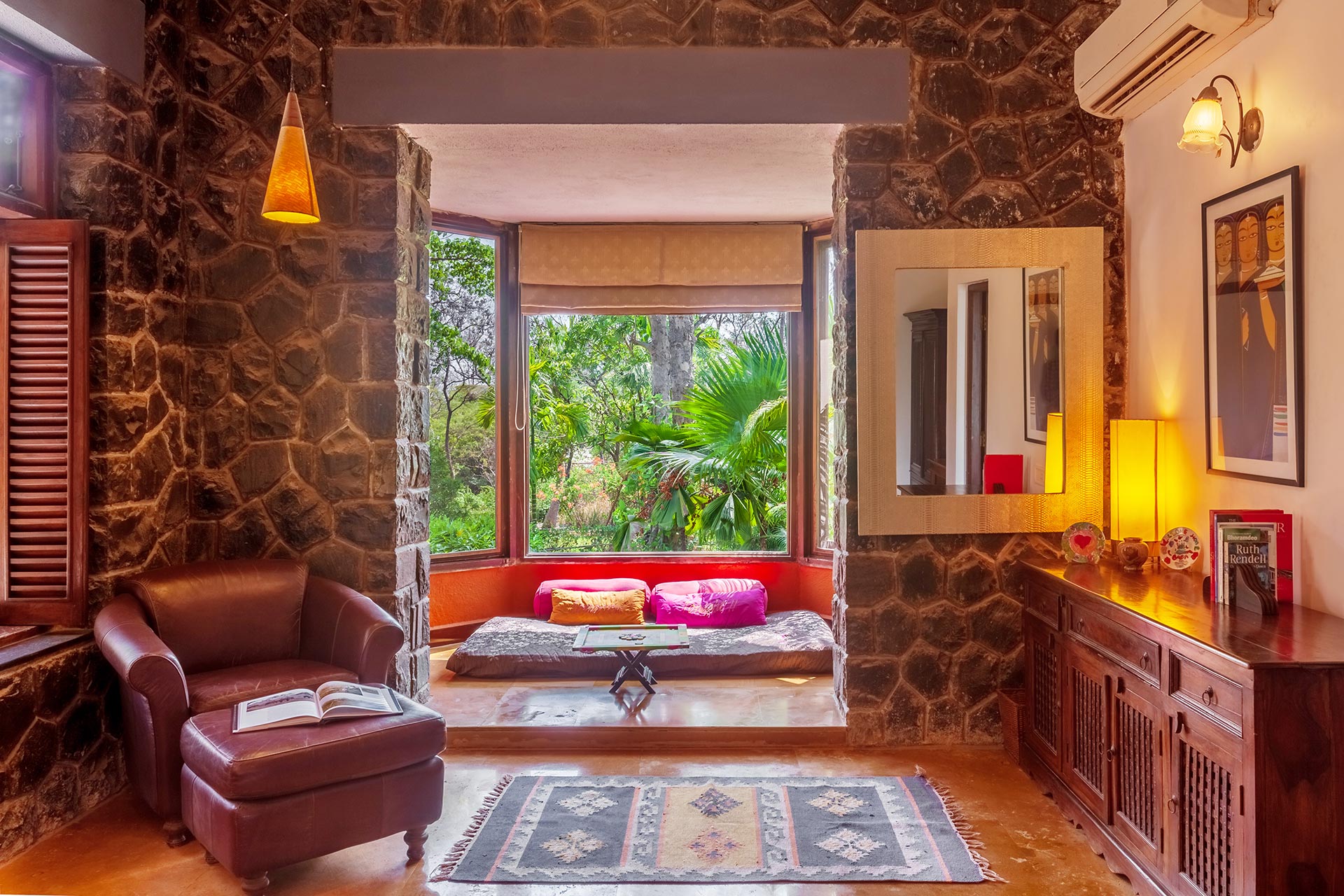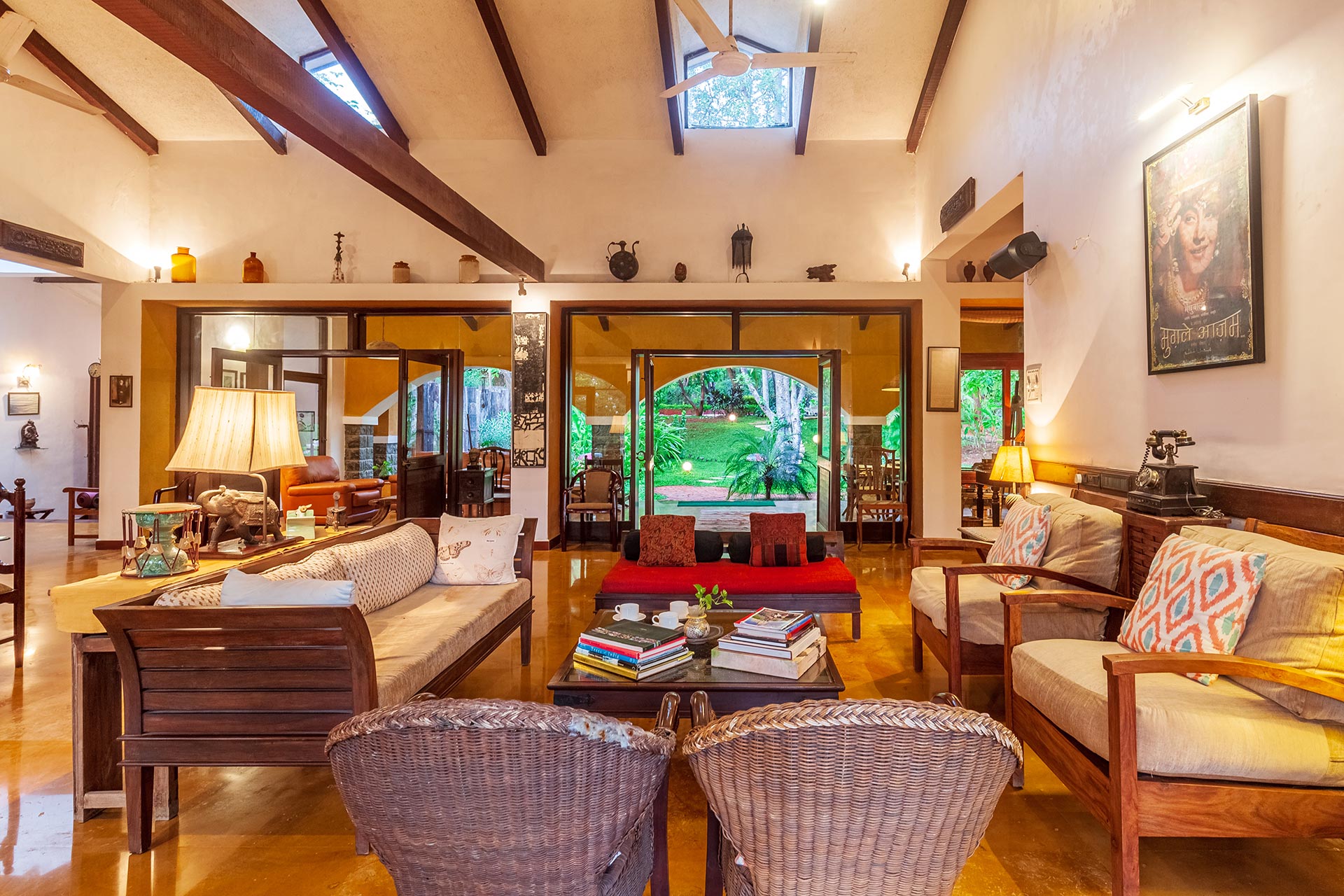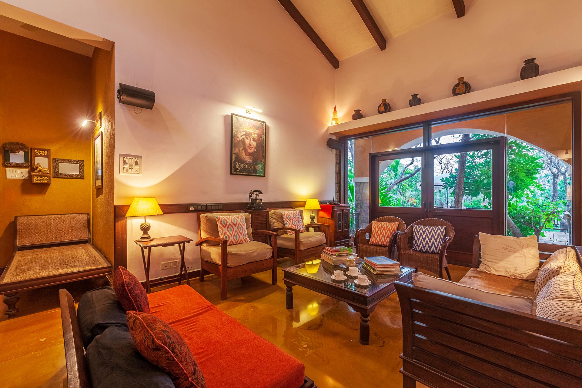 From the moment you pull up to this beautiful home in Alibaug, you will set foot into a distinct world of nature at its best. Spread across a whopping 2.25 acres, Villa Amarillo is a charming home located in the midst of three hundred lush trees. Step through the front door and you’ll feel like you’ve stumbled upon the front cover of a vintage magazine, antique décor juxtaposed with modern upholstery and chic accents. Every corner of the home has been thoughtfully curated, from the locally sourced mirrors, to outdoor deck dining, to the uniquely figure-8 shaped forest path.