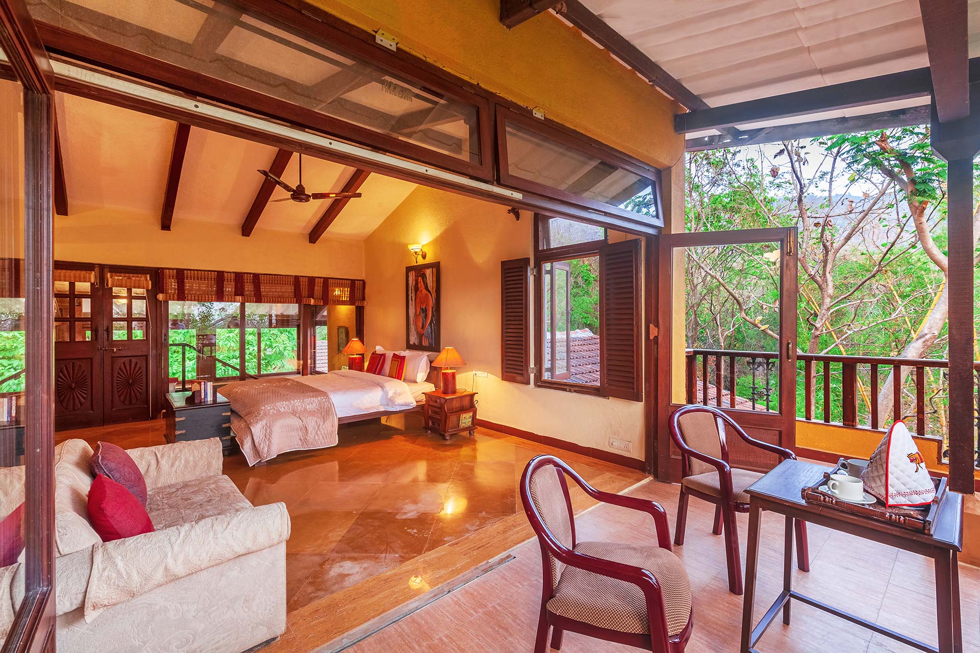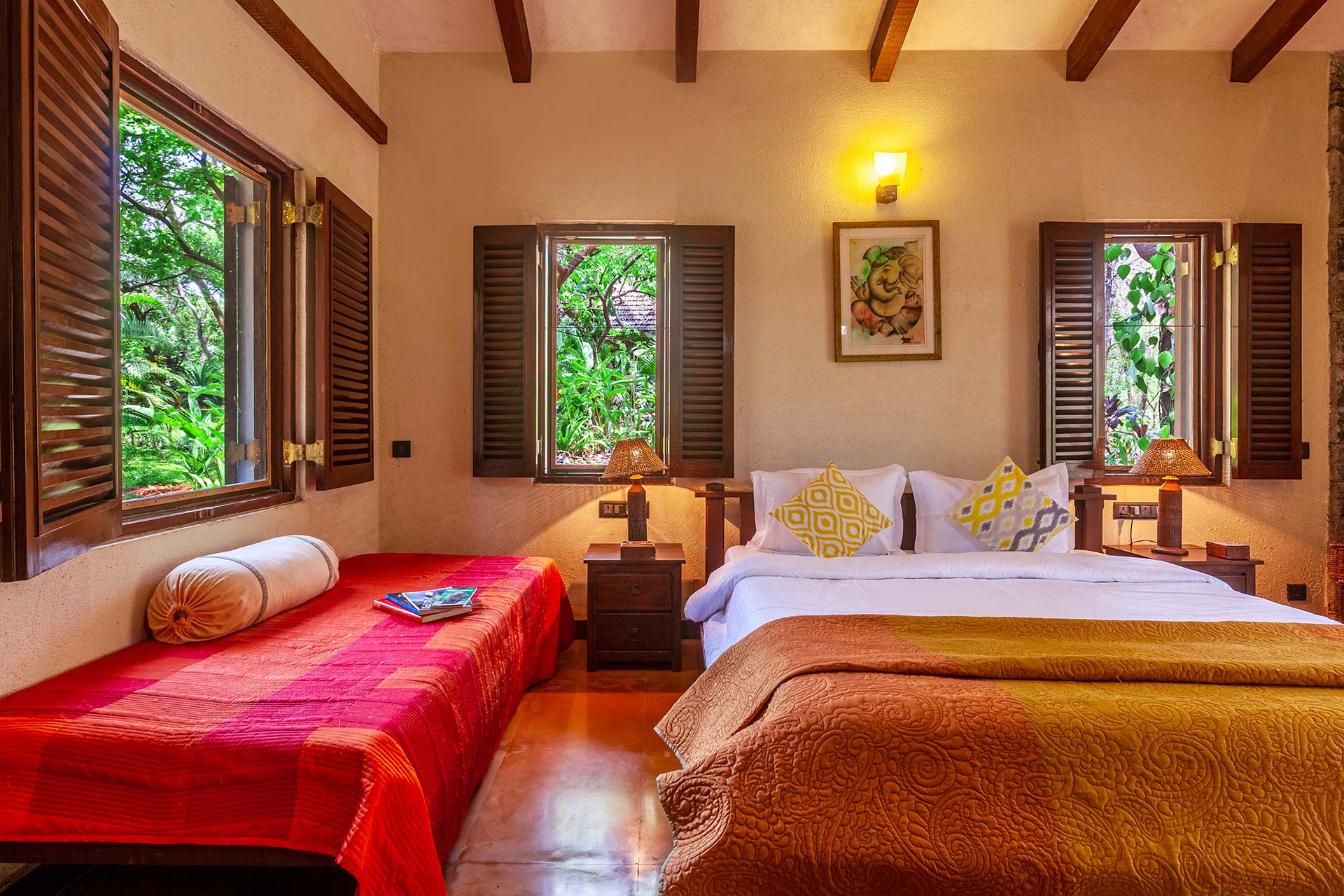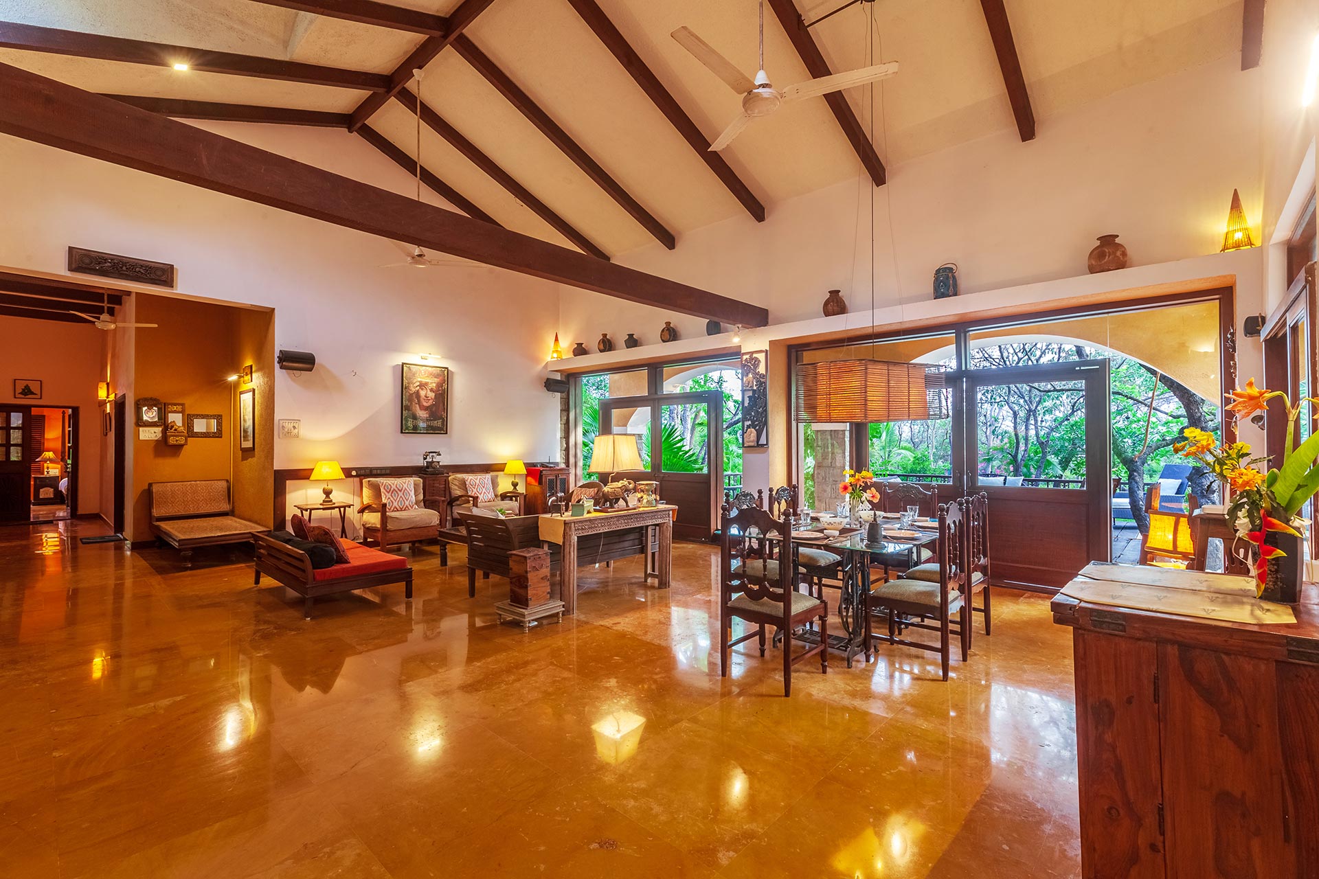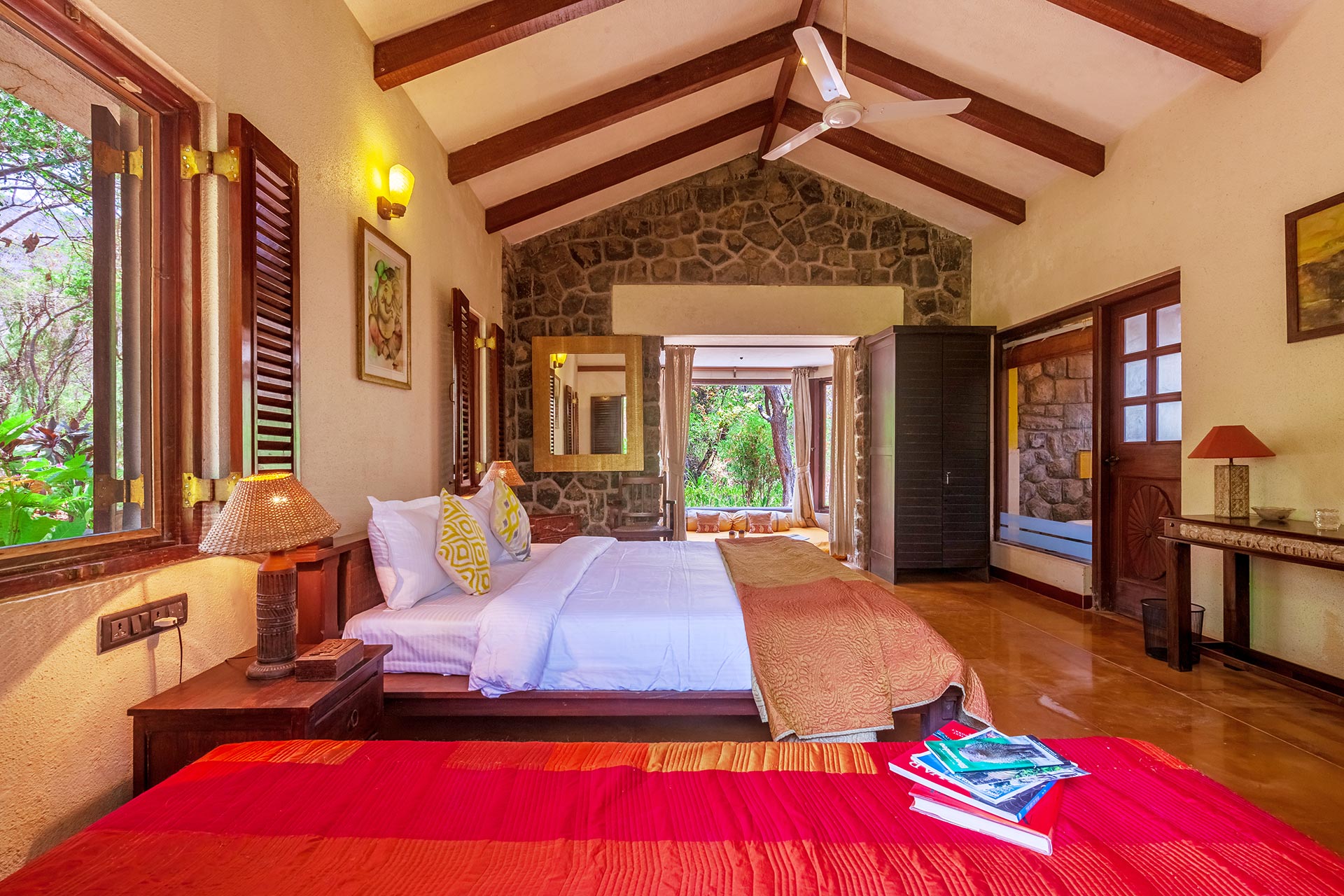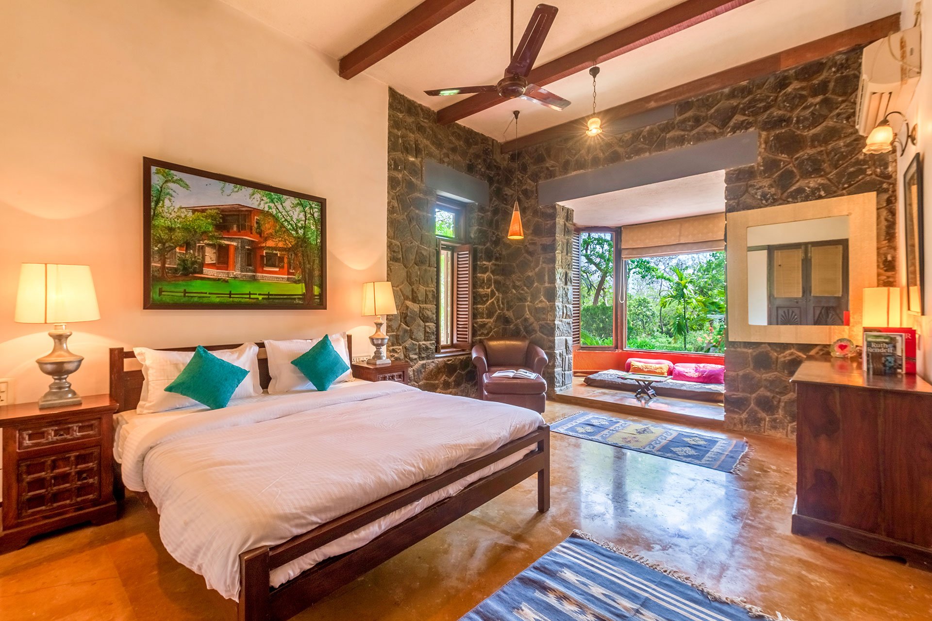 From the moment you pull up to this beautiful home in Alibaug, you will set foot into a distinct world of nature at its best. Spread across a whopping 2.25 acres, Villa Amarillo is a charming home located in the midst of three hundred lush trees. Step through the front door and you’ll feel like you’ve stumbled upon the front cover of a vintage magazine, antique décor juxtaposed with modern upholstery and chic accents. Every corner of the home has been thoughtfully curated, from the locally sourced mirrors, to outdoor deck dining, to the uniquely figure-8 shaped forest path.