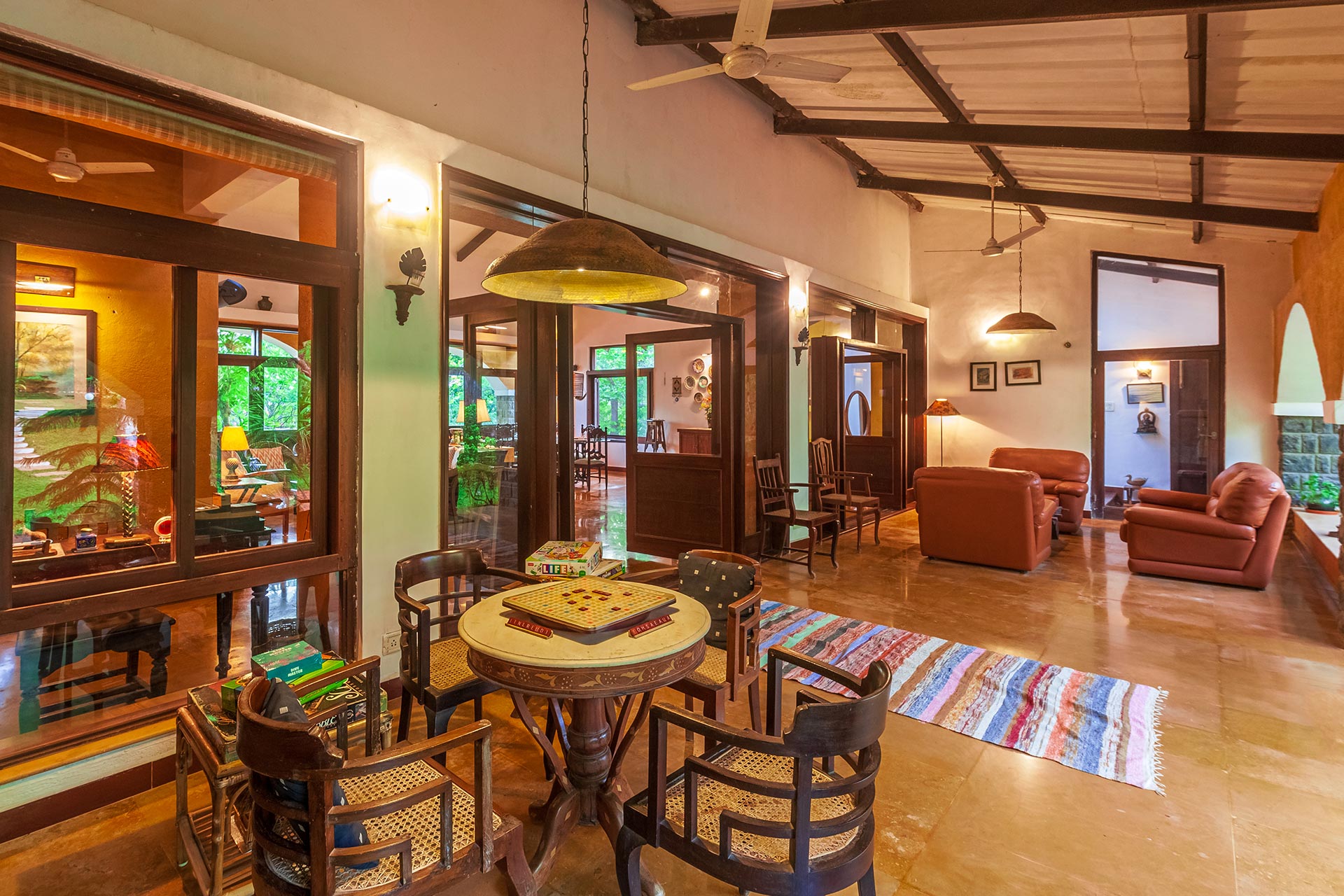 – The other side of the living room opens up to a spacious, furnished verandah overlooking the lawn. It provides comfortable seating for 5 people.
