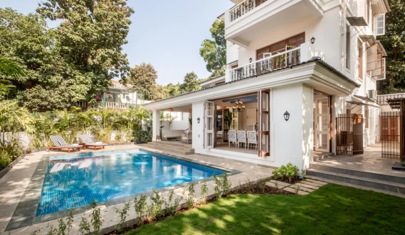 The alfresco dining is intricately designed with light aesthetics and an exquisite view of the private pool where you can unwind and enjoy with your loved ones. Spend a warm afternoon in one of the 4 ensuite bedrooms while the sun lights up the pastel interiors. With an elegant wooden stairway and a lift, move with comfort and convenience in this Isprava-built home. Find your cosy spot in the living room or sip wine with a side of tasteful chatter among friends at the terrace seating. With a powder room and a verdant private garden, Villa Athena makes for the perfect summer abode in Goa.