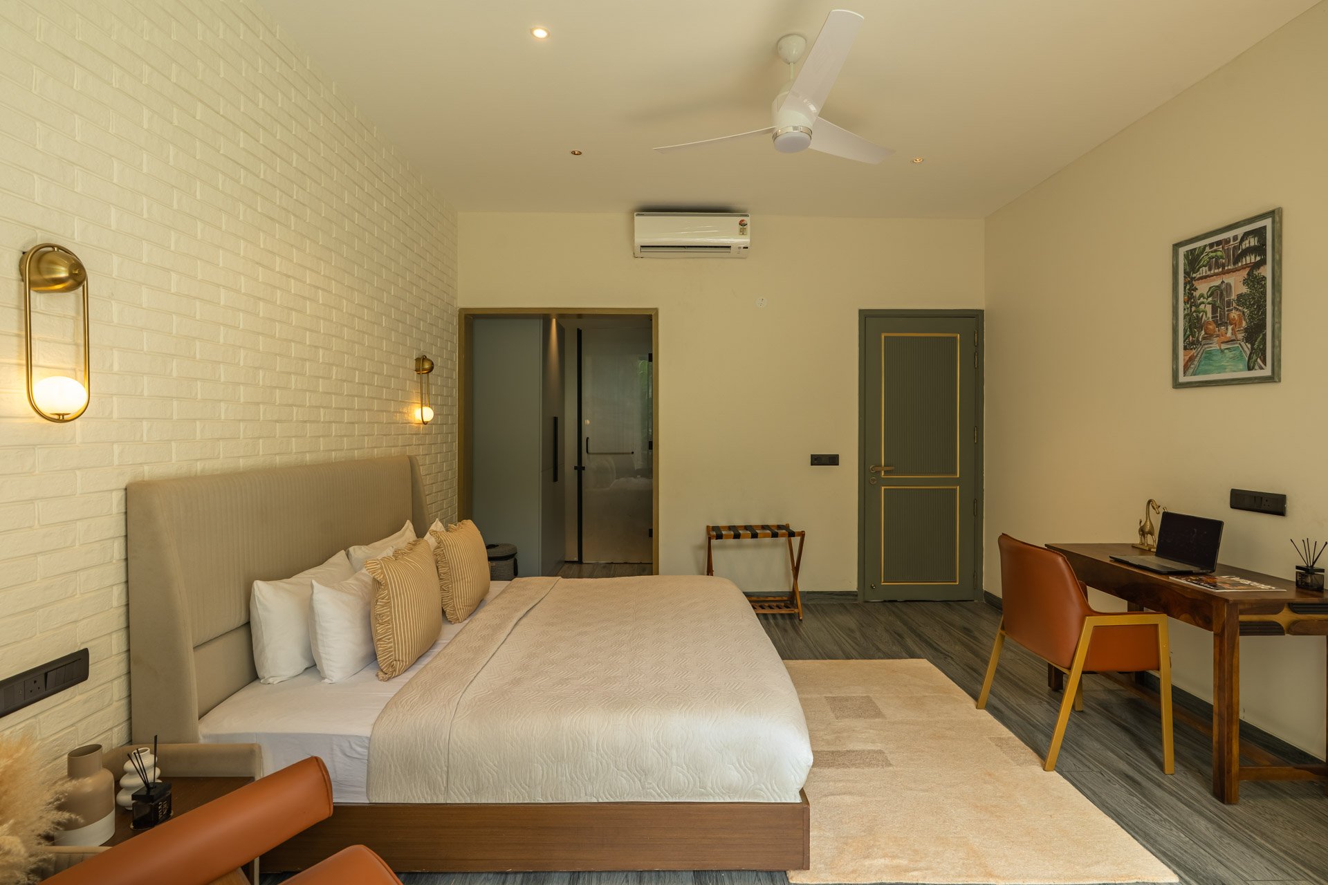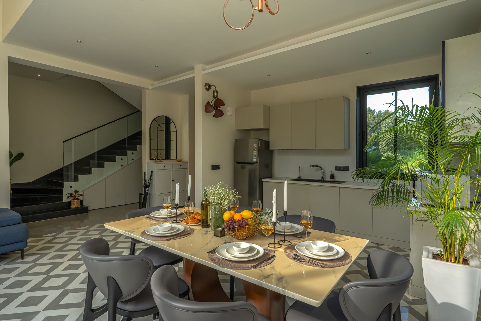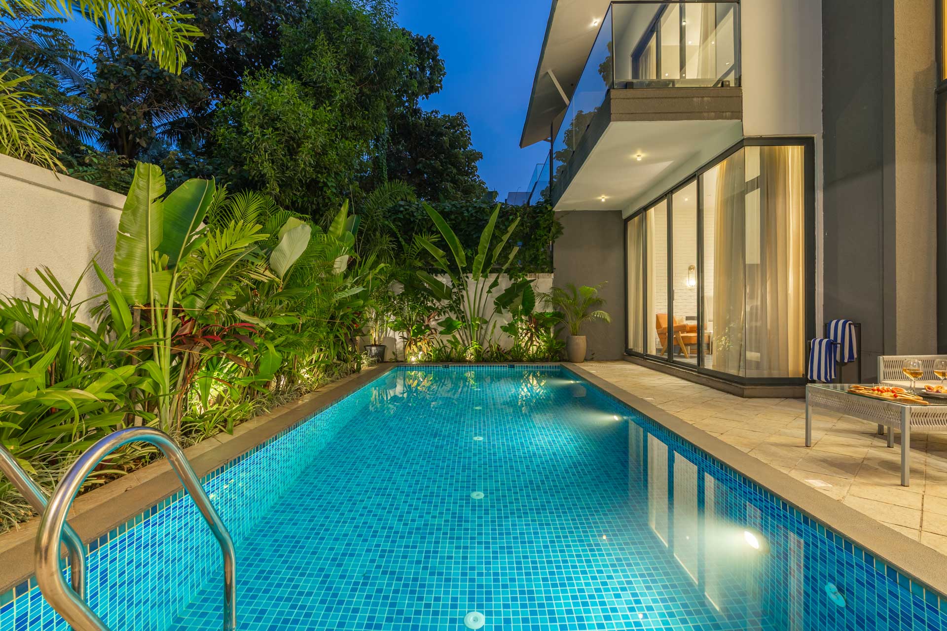 Tucked away in a quiet corner of Vagator, Casa Joe is a refined villa that perfectly blends luxury with the relaxed charm of Goa. Surrounded by tall coconut trees and serene natural views, this hideaway offers a sense of calm and privacy thatโs ideal for a rejuvenating escape. The villaโs interiors are modern yet earthy, with a minimalist design aesthetic and rich textures that reflect elemental elegance. Outdoors, a private pool awaits, complete with sun loungers for slow afternoons under the sky. The beautifully kept garden features a cosy gazebo and vibrant landscaping with an eclectic mix of tropical plants and trees. Whether you’re indulging in a quiet morning coffee, hosting a sunset barbecue with friends, or simply soaking in the tranquil setting, Casa Joe creates the perfect atmosphere for a memorable stay. Itโs more than a villaโitโs an experience tailored for those who appreciate both comfort and character.