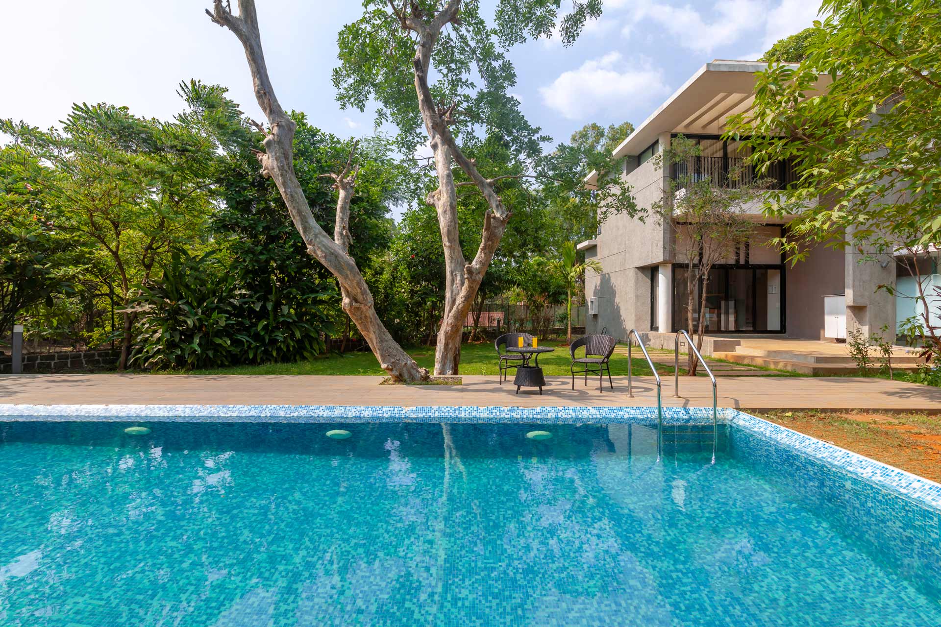 Nestled amidst lush greenery, Villa Foresta provides an idyllic getaway from city life. With its modern decor and cozy vibe, this lavish 5 BHK abode is perfect to enjoy and unwind. The large pool, spacious lawns and terrace make it ideal for serene getaway and intimate gatherings. If a tranquil break is what you seek, immerse yourself in the beautiful views from the balcony or soak up the sun on the deck. Be it a calm escape or a memorable event, there’s much to look forward to at Villa Foresta.