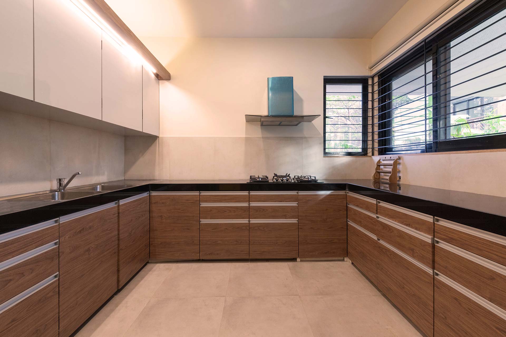 – The kitchen is equipped with a gas stove, a water filter, a toaster, a mixer-grinder, a refrigerator and a microwave.