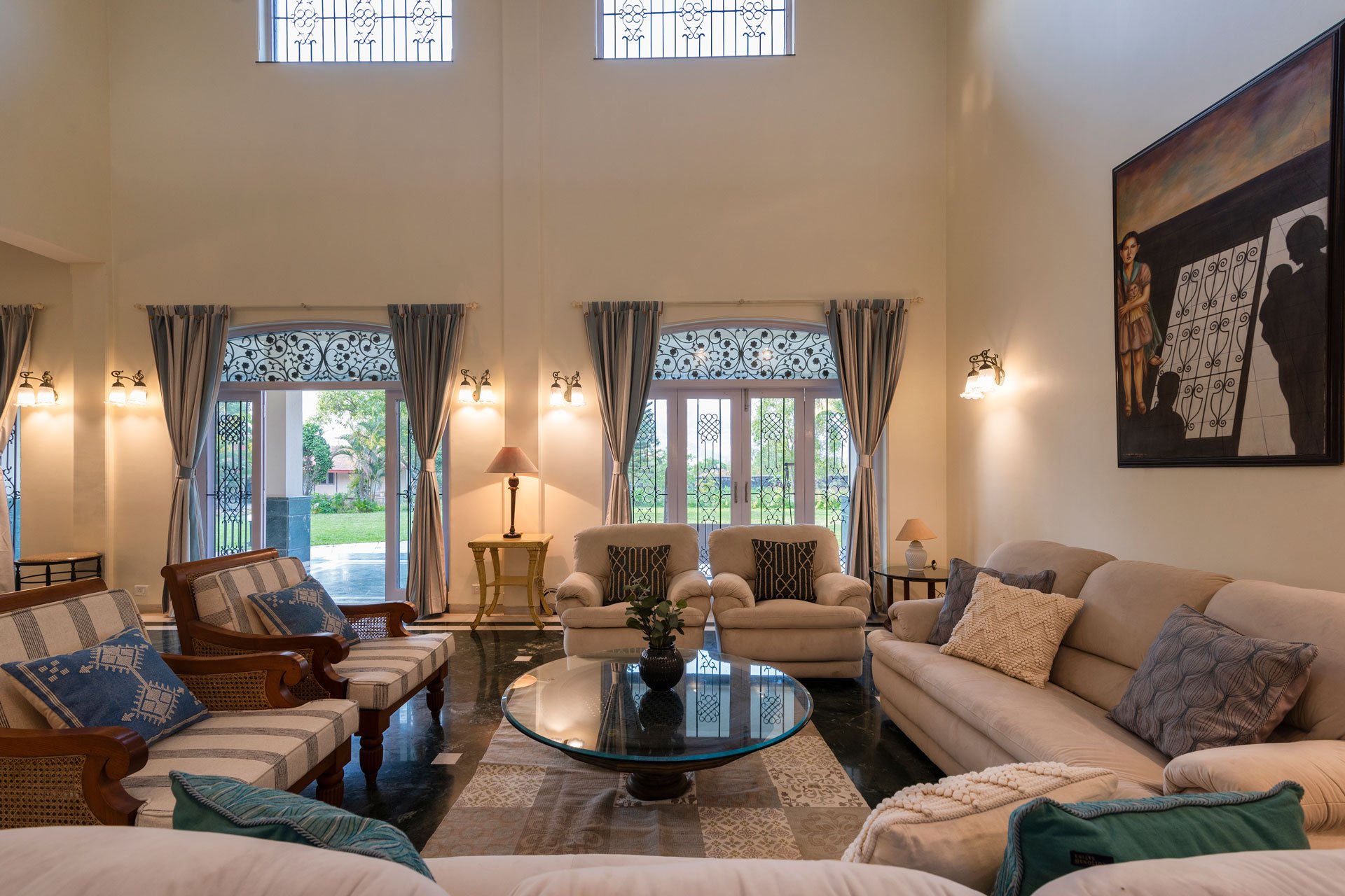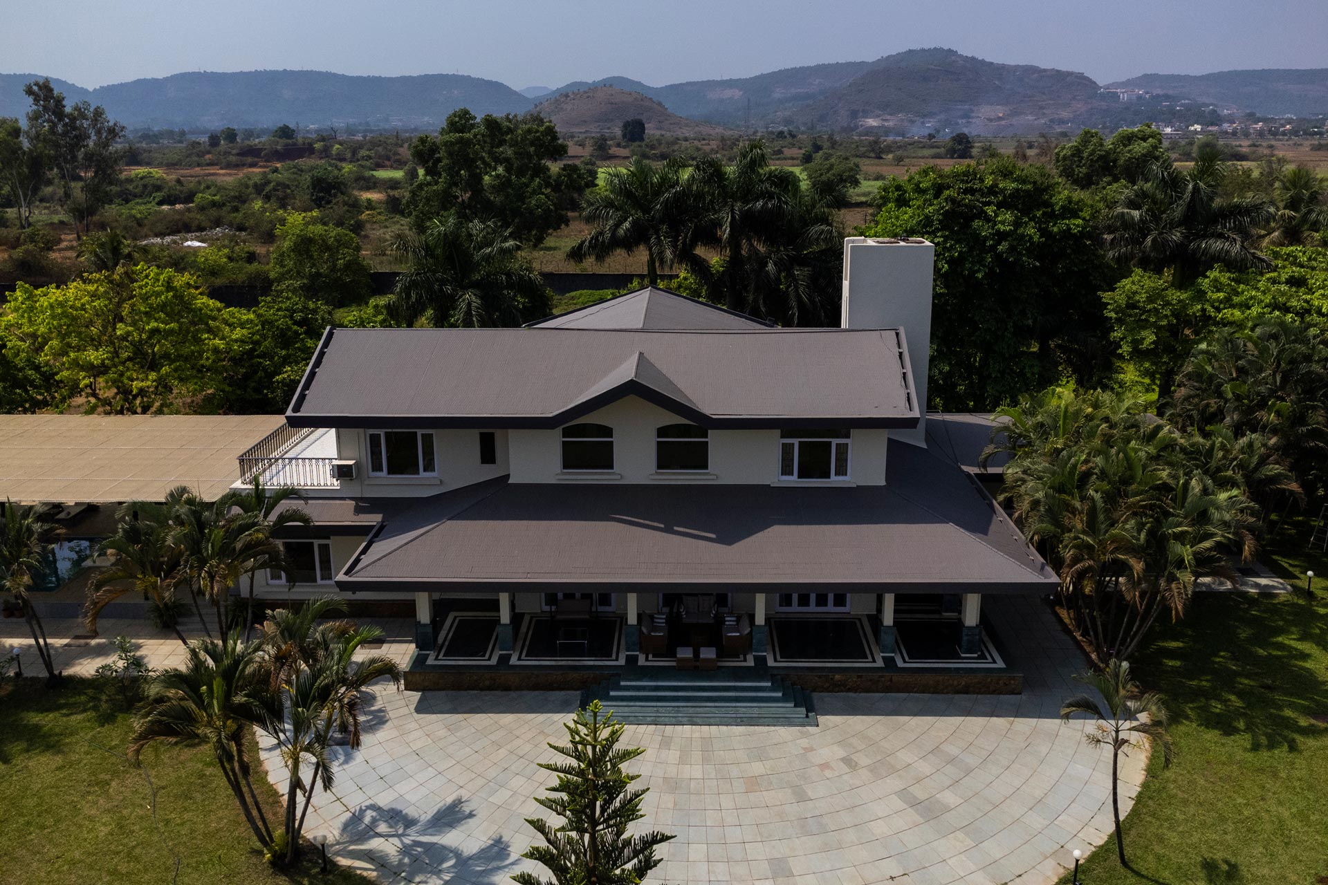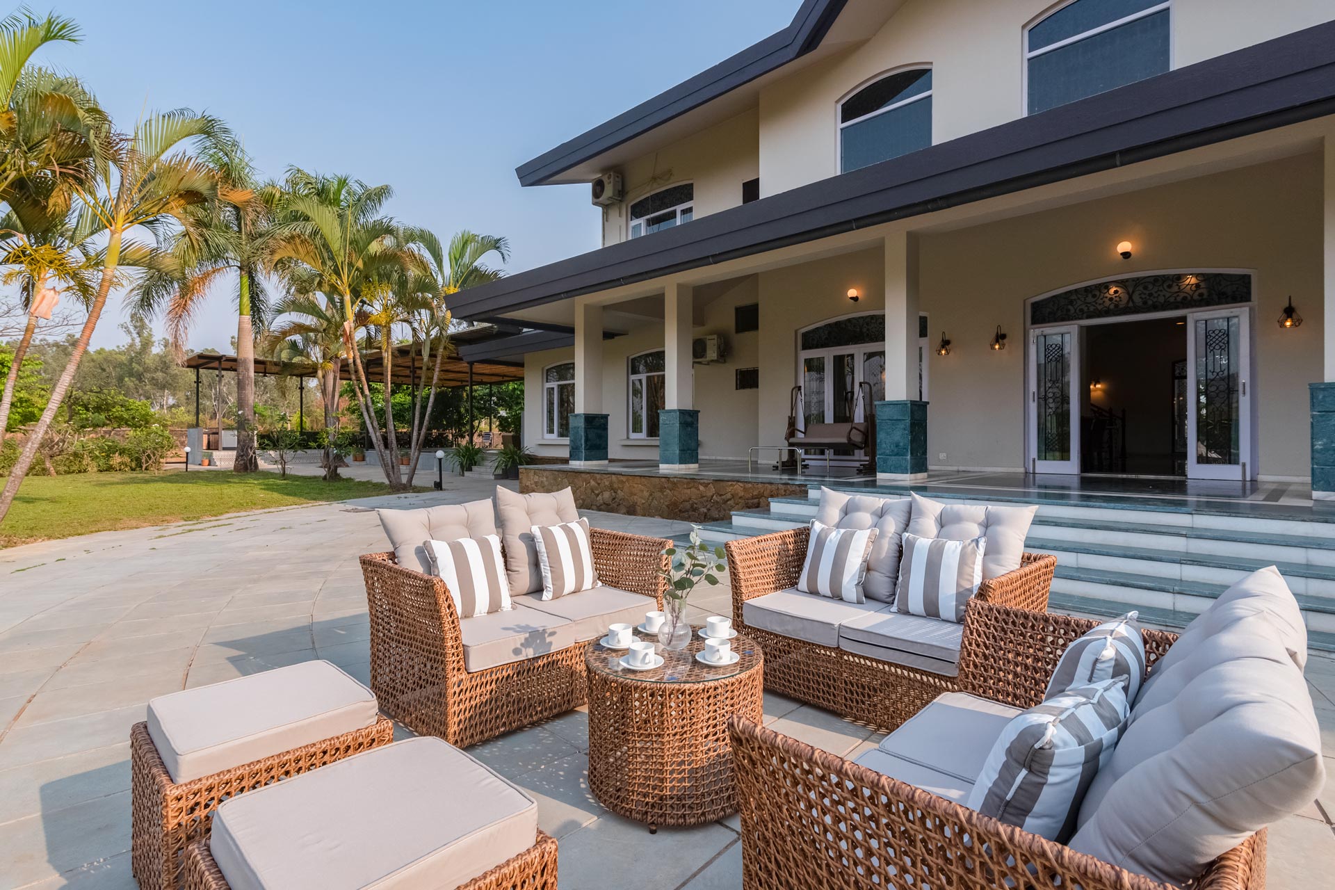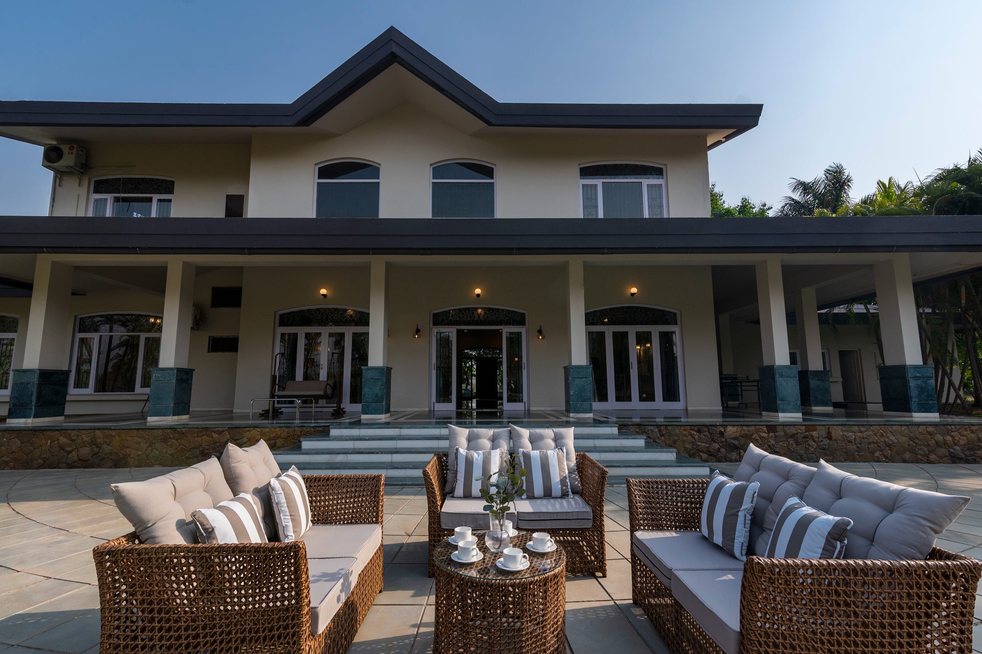Spread across a whopping 10 acres, this sprawling holiday home is strategically tucked away from bustling city life, providing ideal respite from the chaos of every day. The villa features modern interiors, along with lavish amenities that are almost a prerequisite here. Rejuvenate, detox, and unwind at this serene home, that is enveloped in lush foliage and towering palms. Savour the misty breeze in the mornings, relax on the lounge-worthy sit-outs, and make the most of the rain shower, which are only some of the many features of this home. What’s more? There is a temperature-controlled heated swimming pool, perfect for a swim during the winters!