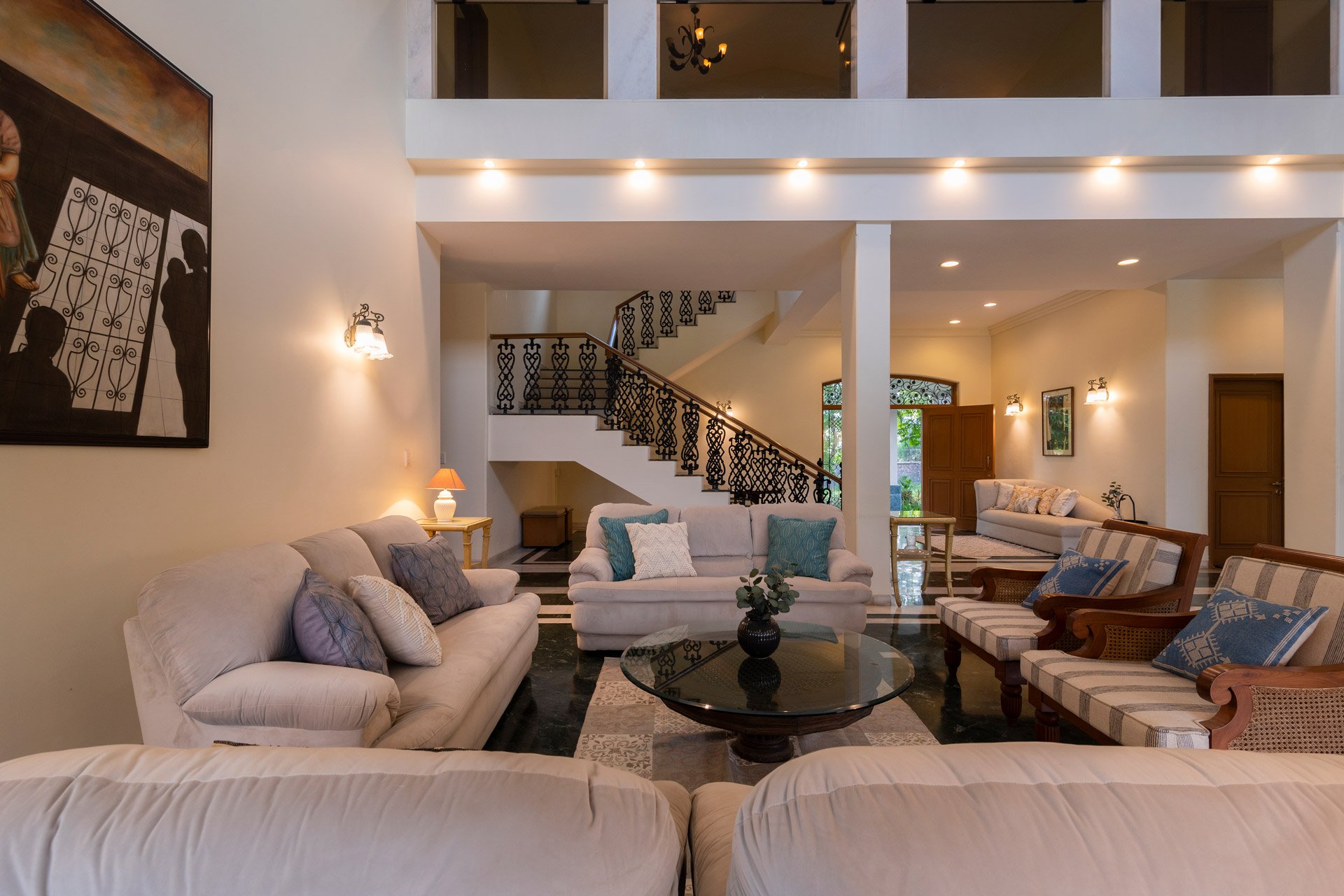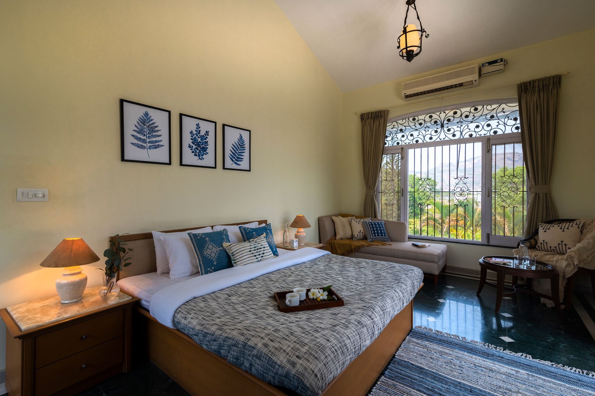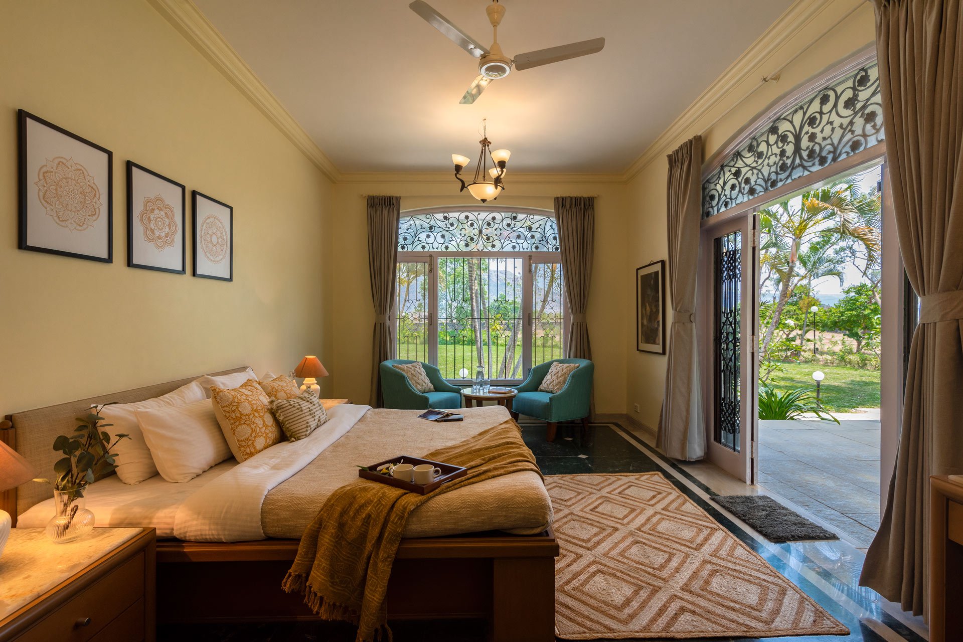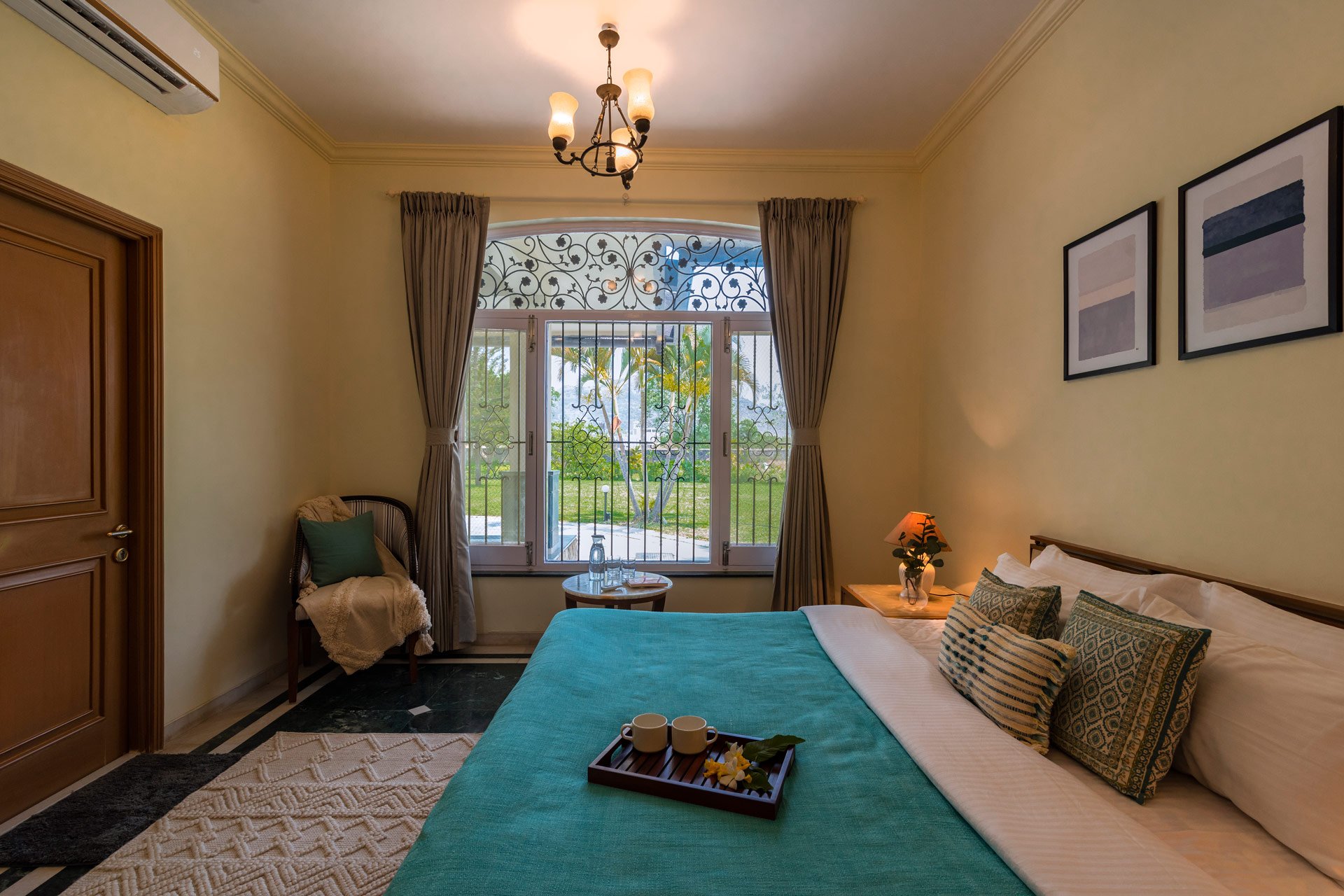Spread across a whopping 10 acres, this sprawling holiday home is strategically tucked away from bustling city life, providing ideal respite from the chaos of every day. The villa features modern interiors, along with lavish amenities that are almost a prerequisite here. Rejuvenate, detox, and unwind at this serene home, that is enveloped in lush foliage and towering palms. Savour the misty breeze in the mornings, relax on the lounge-worthy sit-outs, and make the most of the rain shower, which are only some of the many features of this home. What’s more? There is a temperature-controlled heated swimming pool, perfect for a swim during the winters!