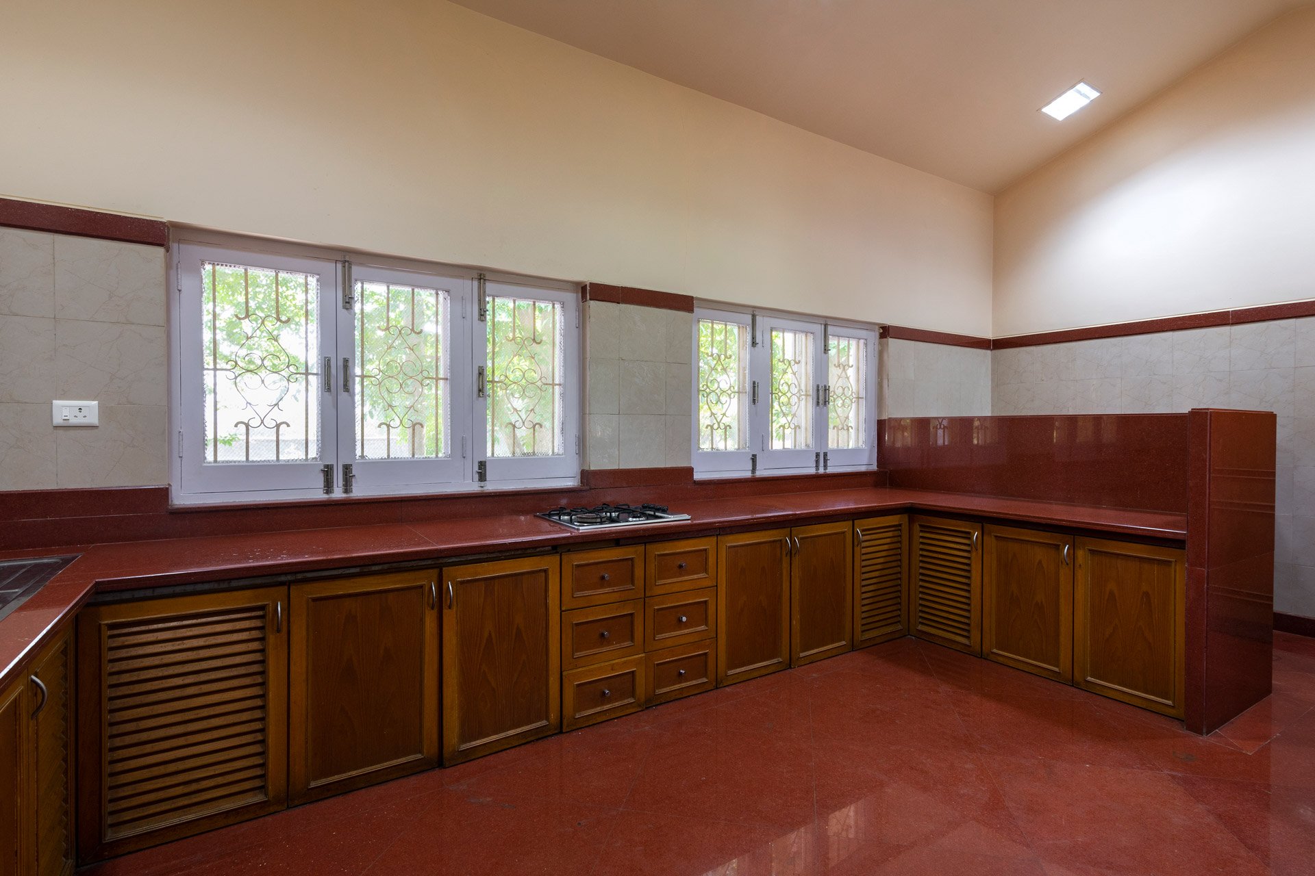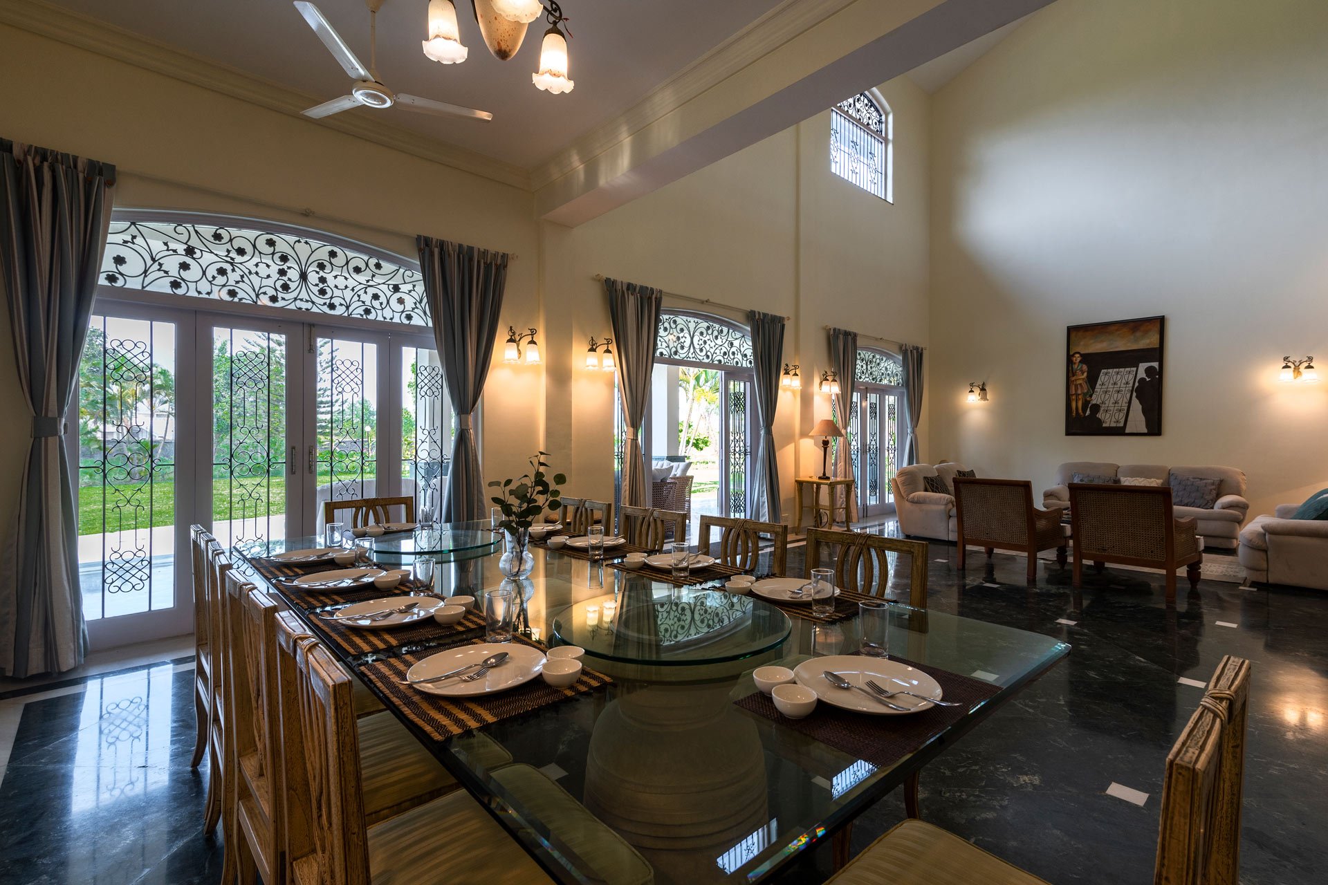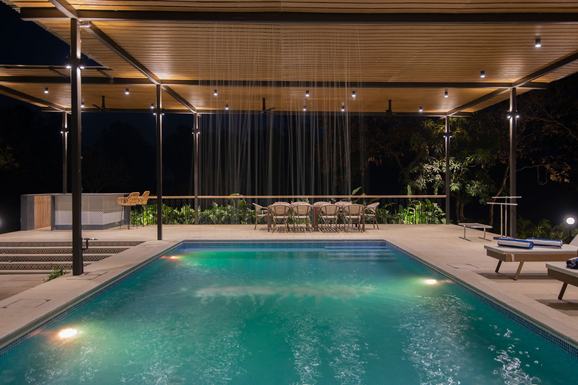 An ideal nature escape, this expansive holiday home features an assorted array of amenities promising a memorable getaway. Within the property, guests can start their mornings with a brisk walk on the lawns, amidst the misty morning breeze. The twittering birds are sure to keep you company while here. Enjoy a competitive badminton or cricket match. The private swimming pool is perfect for an evening spent unwinding. Enjoy your favourite cocktails by the bar.