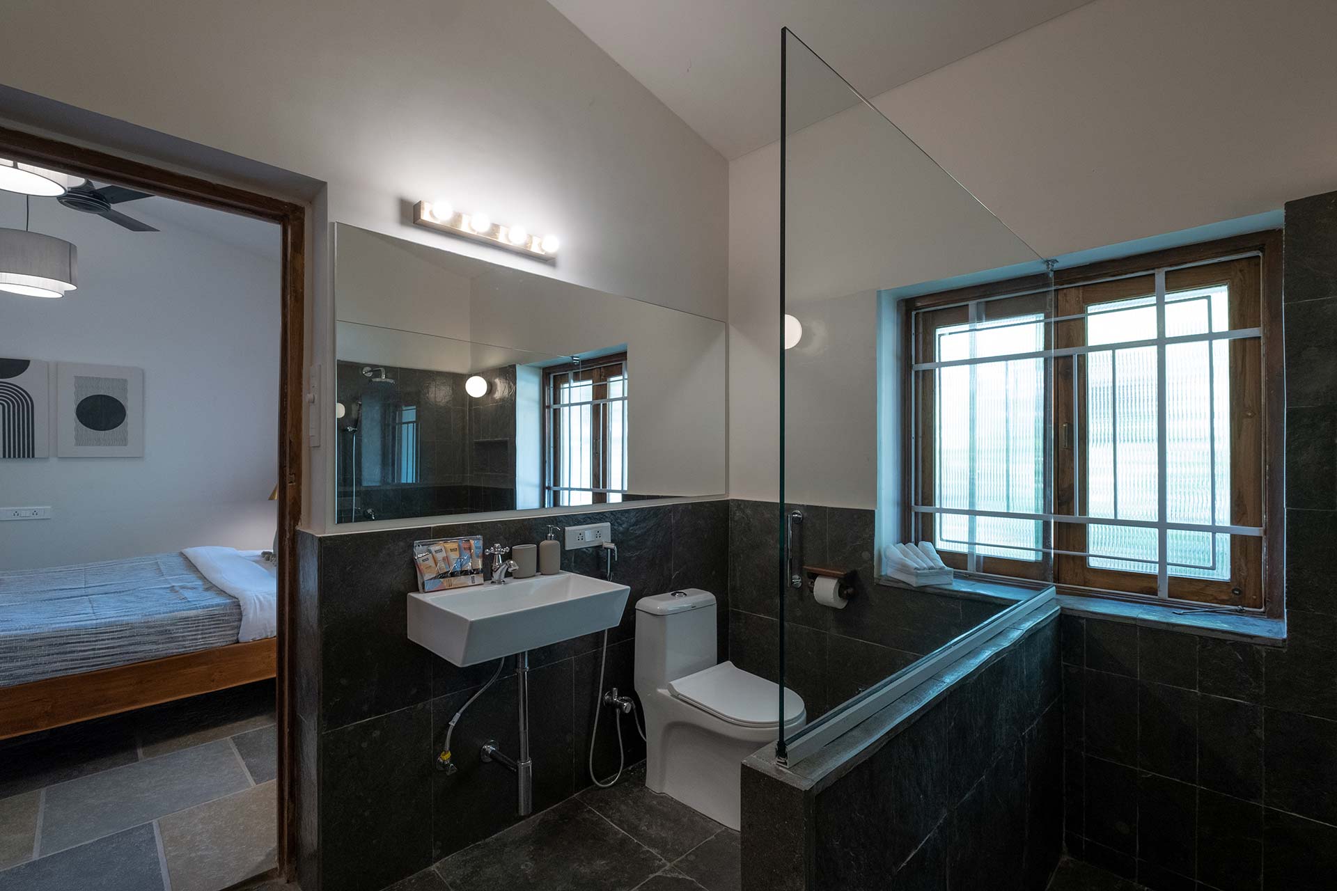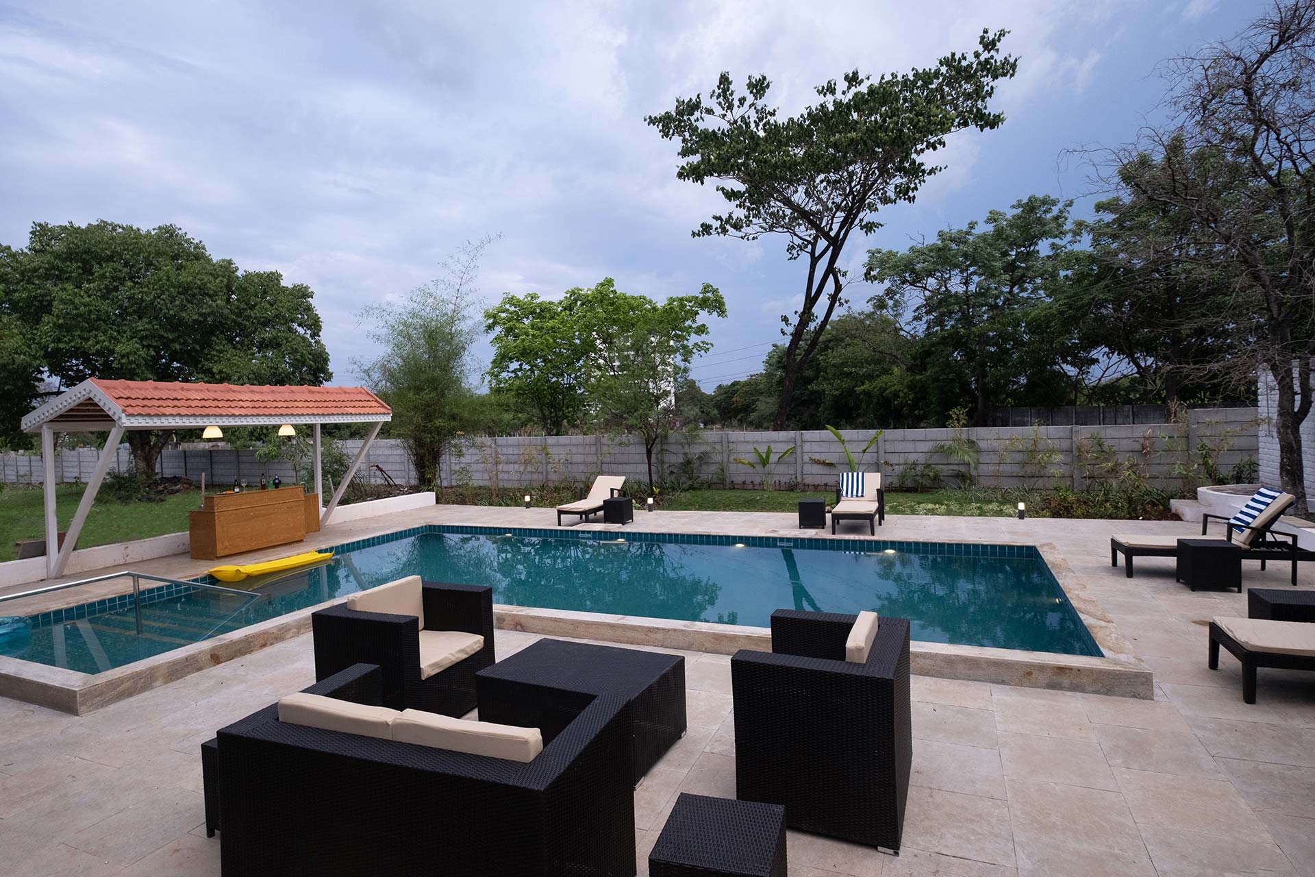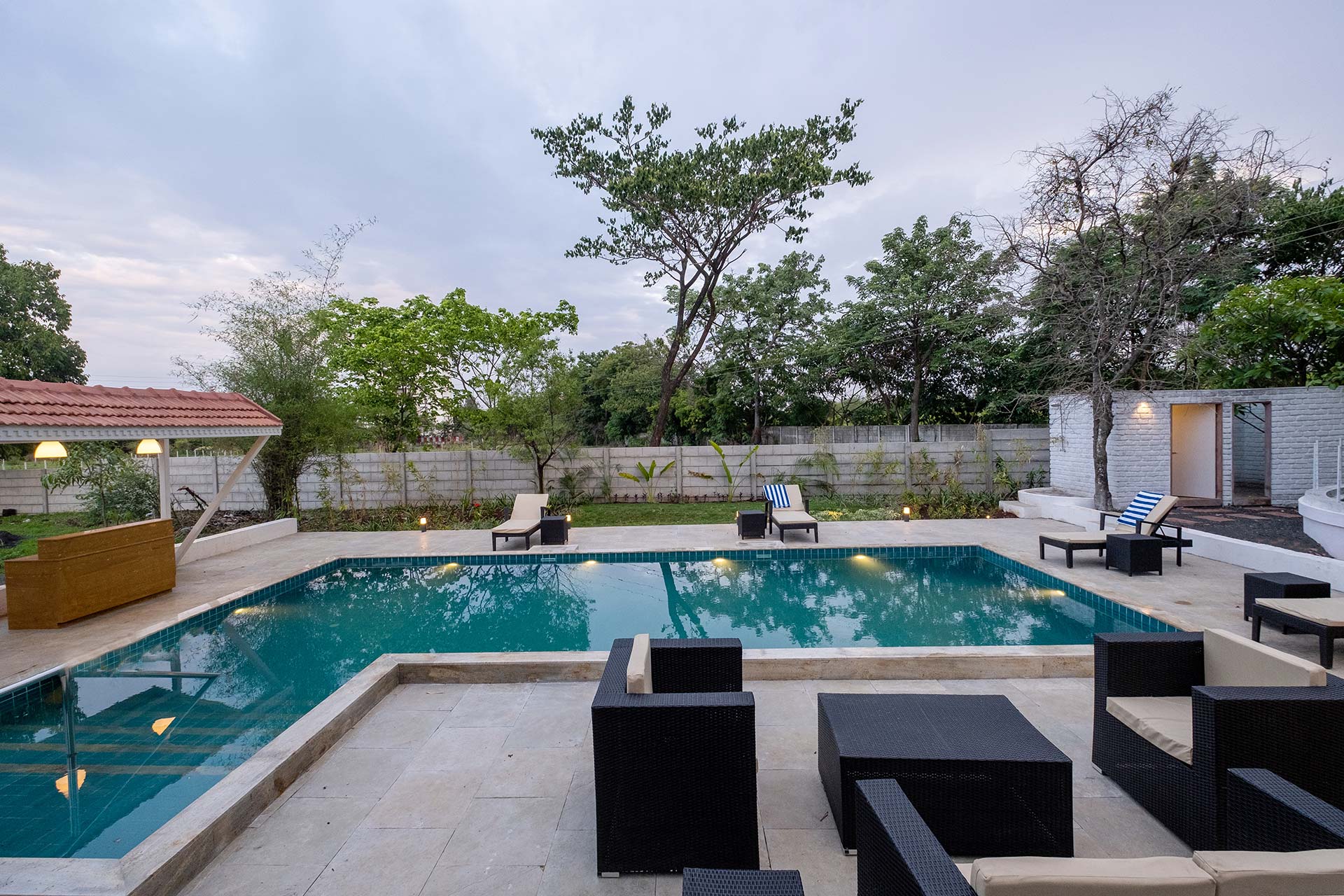 Break away from the monotony of life at Villaggio, your home away from home. Set amidst a whopping 5 acres of lush farmlands and orchards, reconnect with nature and enjoy the rustic scenery – all while living the luxe life. The interiors of this holiday home are effortlessly sleek and contemporary, yet so cosy they make you feel like home. Strategically located in the heart of the wine capital of India, this home is spruced with a myriad of luxurious amenities, elegant art pieces, private trails and orchards, and serene views. On a peaceful evening, you’ll find yourself by the pool, soaking up the sky changing its hues or relishing a scrumptious barbecue preparation with your loved ones.