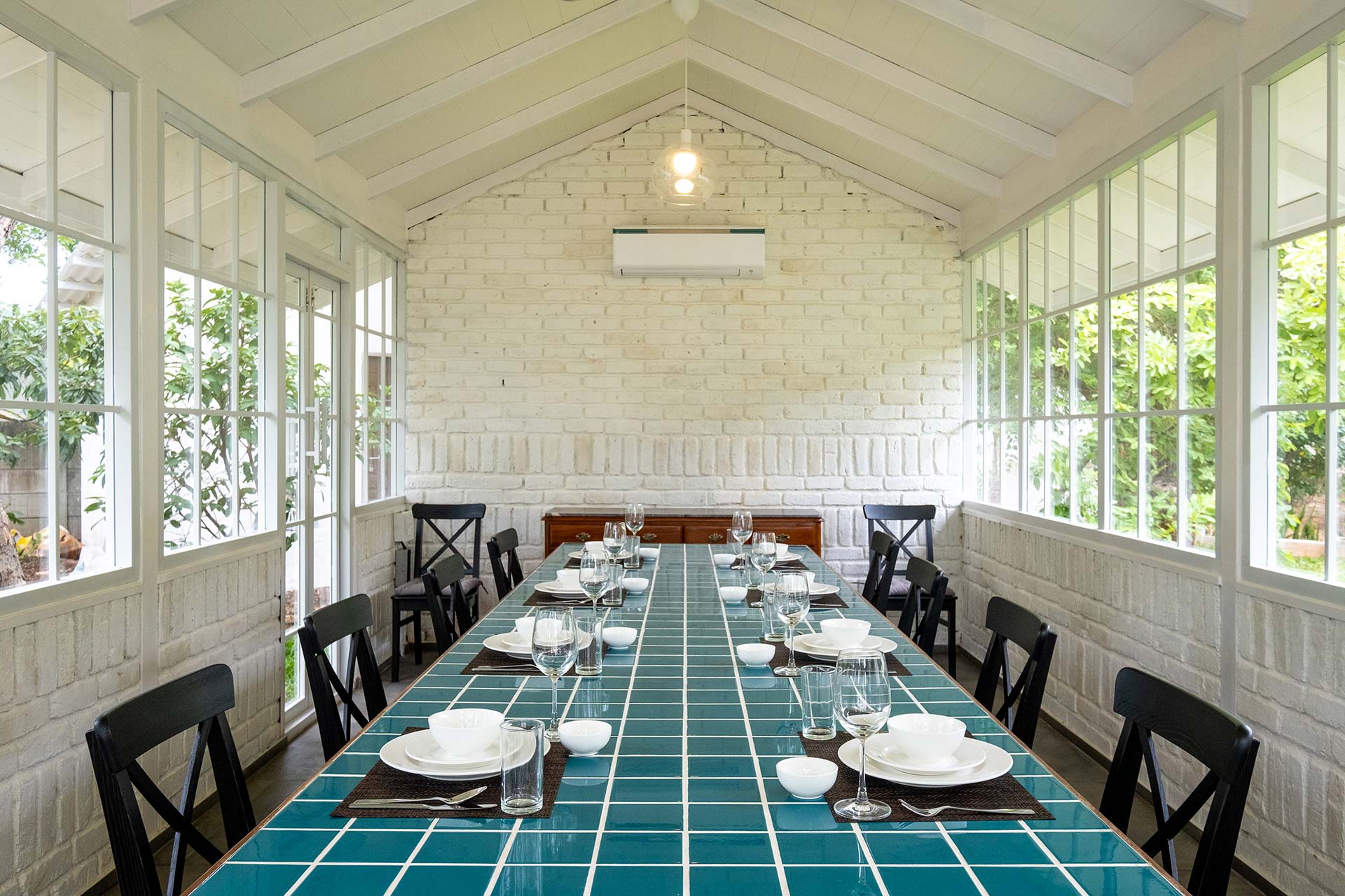 – The exteriors of this villa boast a myriad of green spaces including two open terraces where guests can relish a hearty barbeque.