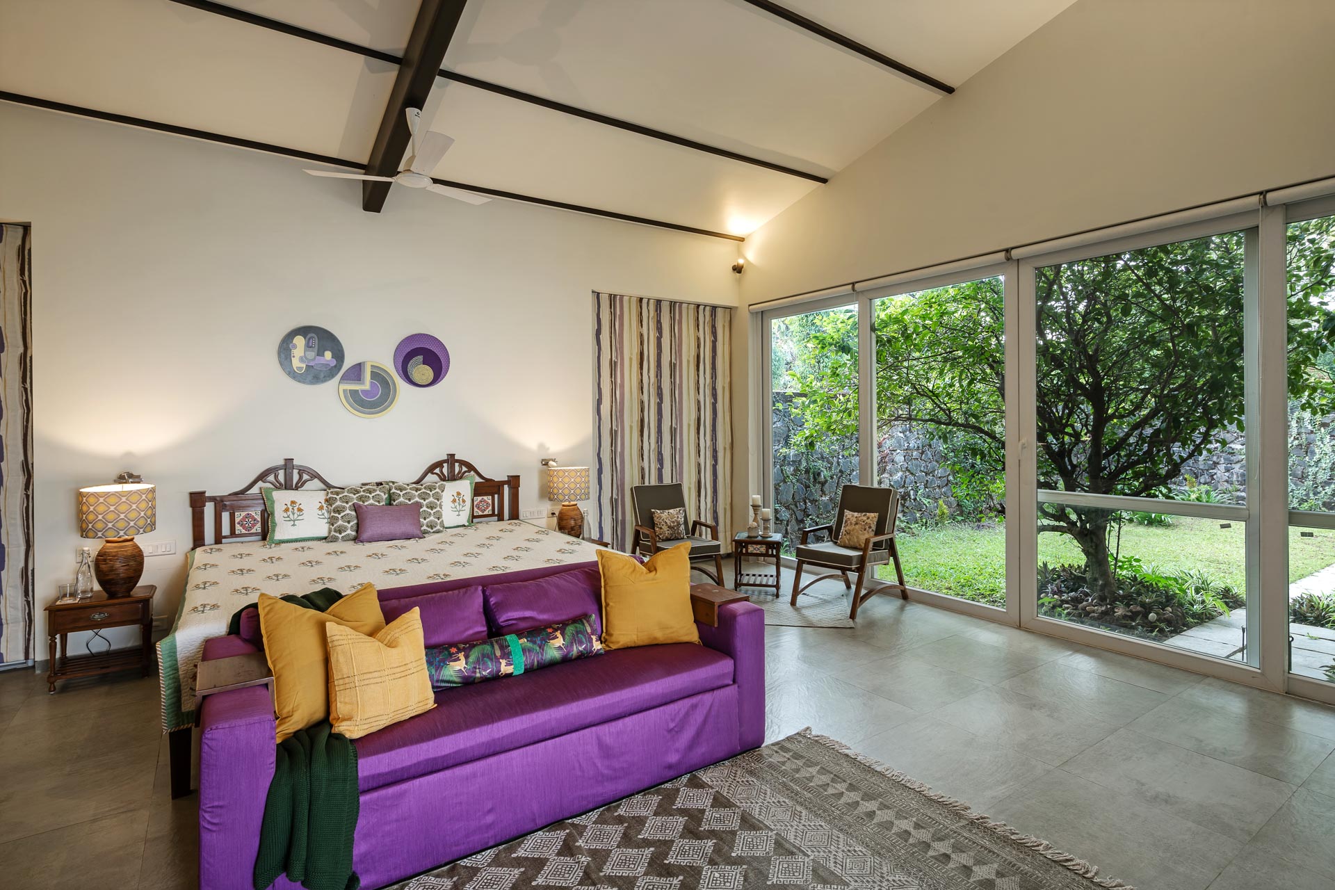 With a contemporary facade and cozy interiors filled with heirloom furniture, Vinayalam is your ideal home away from home, in beautiful Mahabaleshwar. This luxurious home comprises a spacious living and dining area, an expansive patio with views of the lush garden, three bedrooms and a private cottage suite enveloped in dense greenery. Wake up to melodious birdsong and watch the sun rise and spread its warmth from your bedroom sit-out as you sip on your favourite hot beverage. Nestled in the picturesque Western Ghats, Mahabaleshwar offers a spectacular experience with its dense forests, waterfalls, hills and valleys. Come, let this splendid hill station and  hospitality captivate you and your loved ones.
