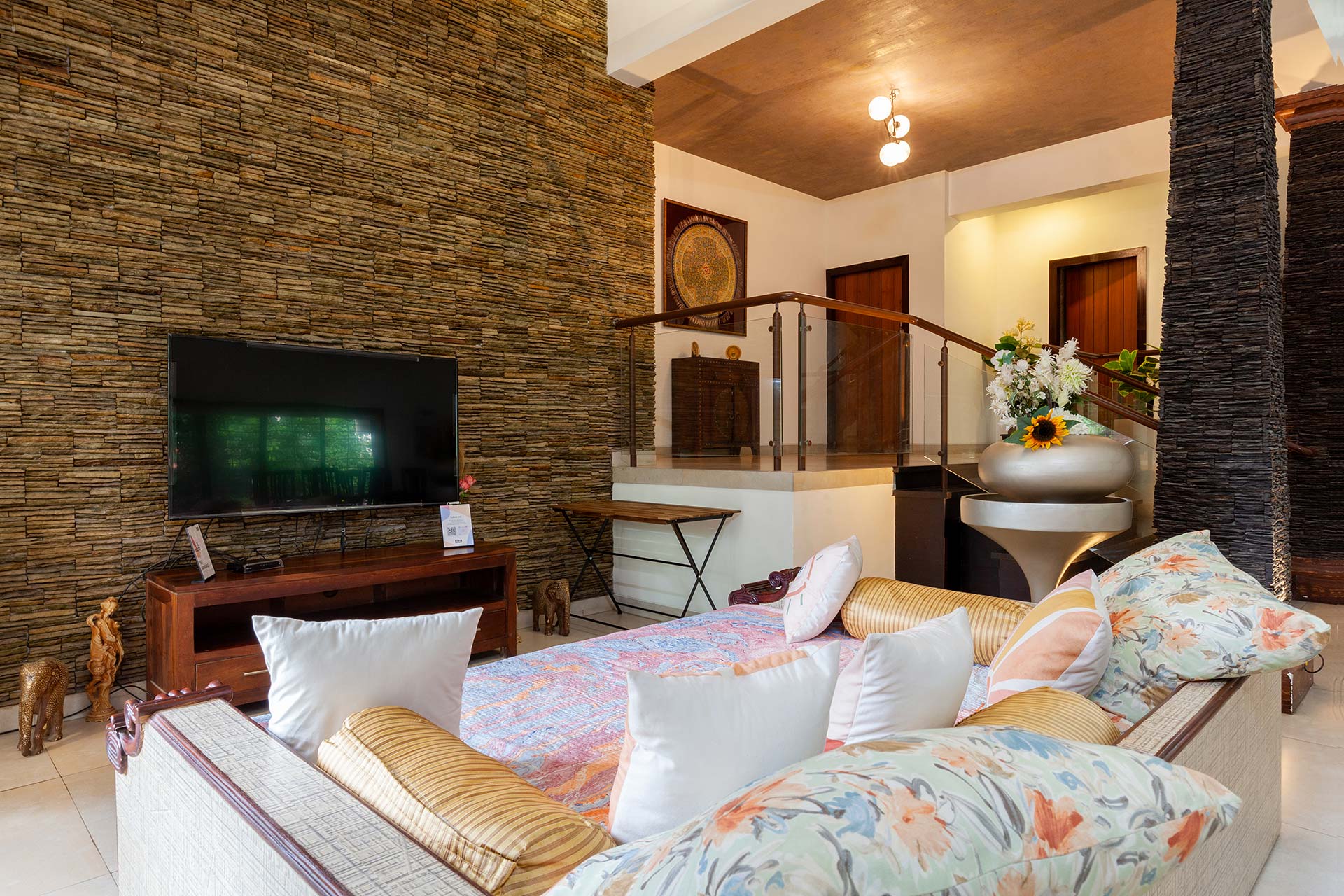 – There is an additional room on the first floor, with a sofa-cum-bed, an AC and an ensuite bathroom.