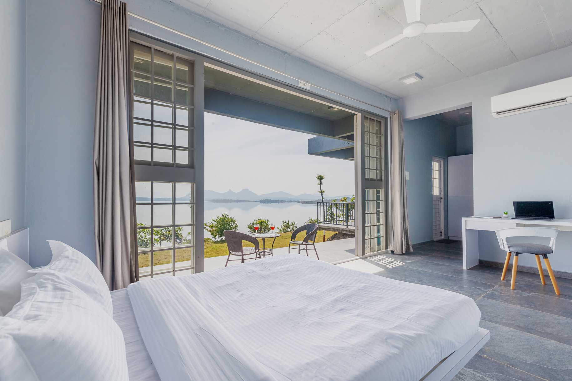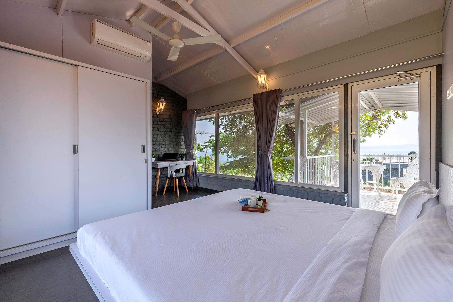 – AC, king-sized beds, attached bathrooms and balconies are offered in all rooms.
