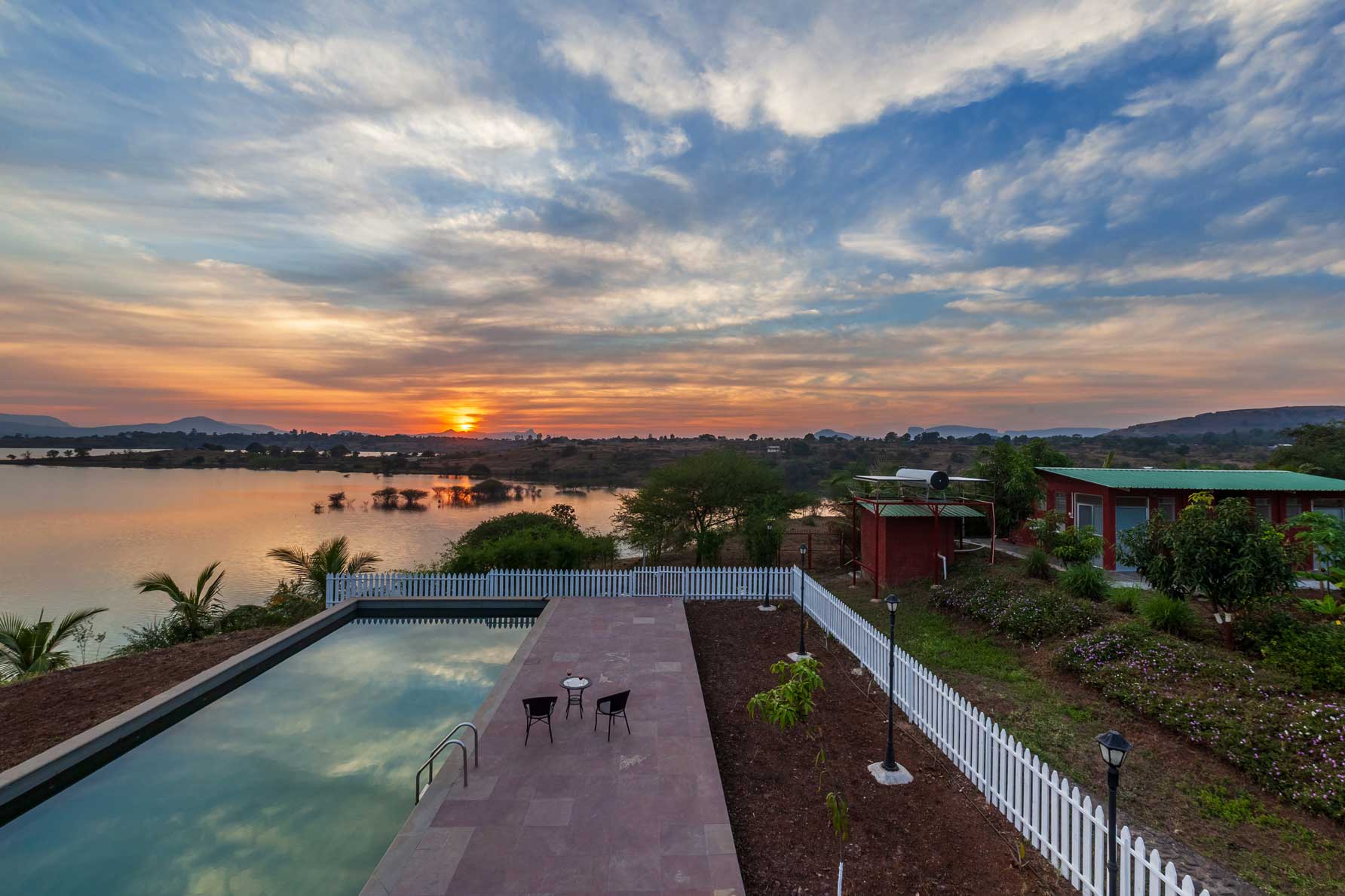 Soak in the views of the lake, as you enjoy your farm stay in the lap of nature. This rustically furnished villa offers all meals. If you’re an animal lover, you will enjoy the presence of the livestock around. Guests can enjoy a swim, or play games like box cricket, badminton and foosball. The home is close to Mukane reservoir, in case you feel like stepping out or unwind peacefully at the lawn, savouring the breathtaking, paradise-like view.