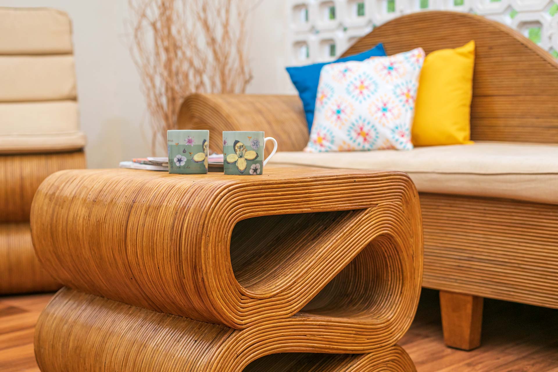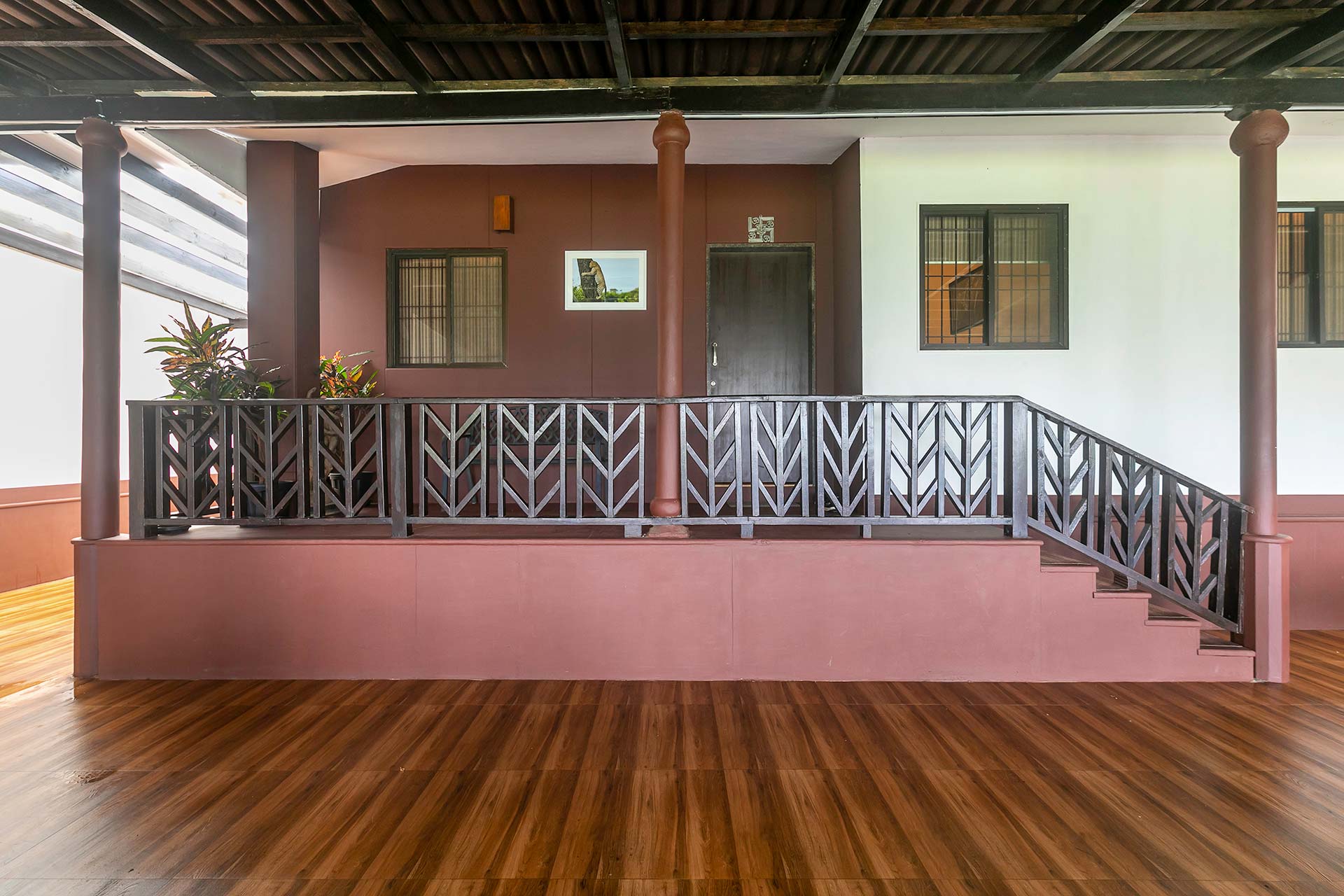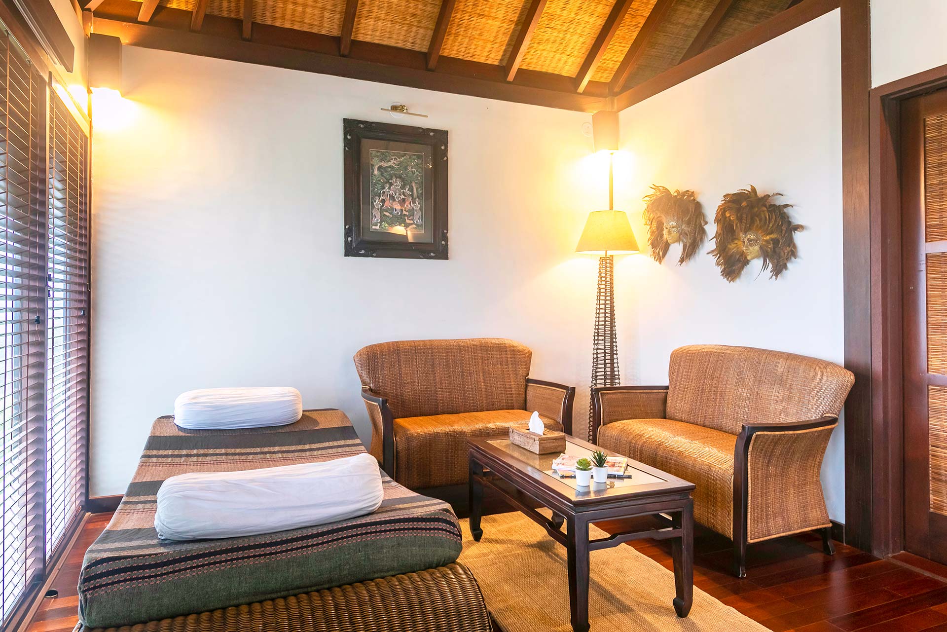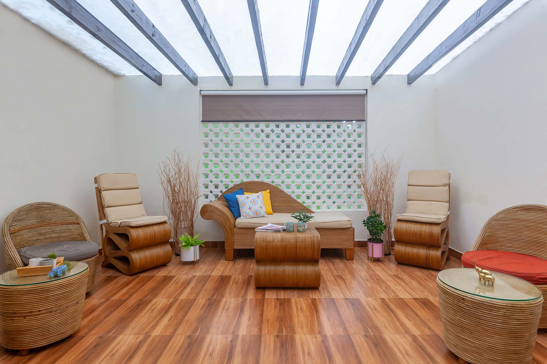 It opens up to a beautiful view of the greenery that surrounds the villa and offers seating arrangements for up to 5 people.