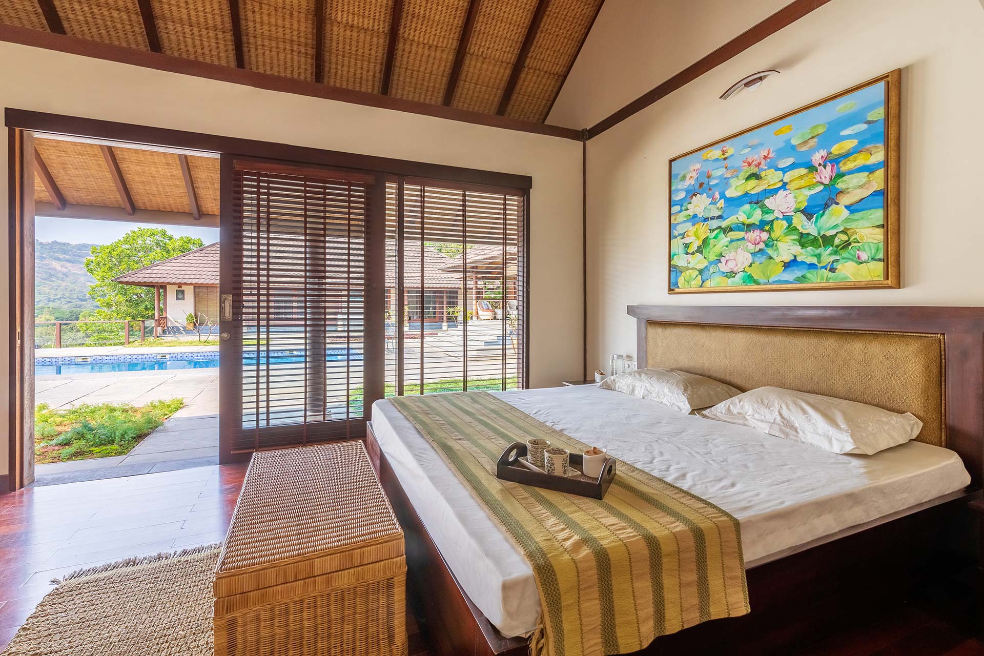 An eco-friendly, state-of-the-art boutique abode, perfect for well being and relaxation in a quaint spot just a short drive from Mumbai. This property is huge, spacious and houses three separate units – The Bali unit, the Lakefront Villa and the Lakefront Cottage. Beautifully lit pool, quiet stretch of a lush green lawn, boho-inspired decor and other luxurious amenities await you at Vyoman, Pawna. This super spacious home is its own private oasis, overlooking stunning views of the lake and mountains. Spend your evening at the gazebo amidst the lawn, and enjoy a delectable al-fresco meal with distinctive flavours prepared by our chef from an assorted in-house menu.