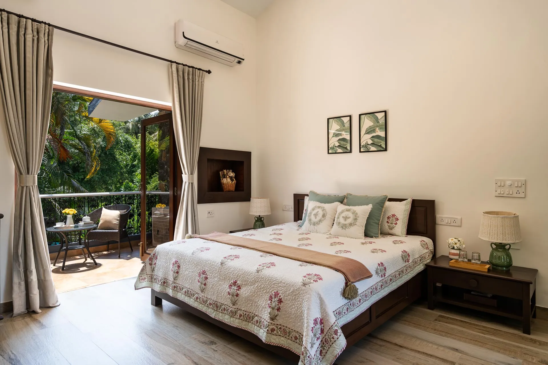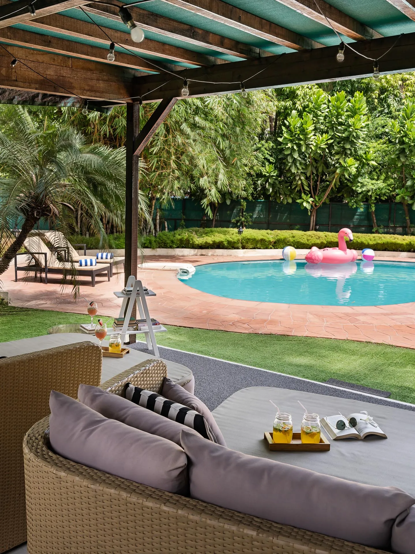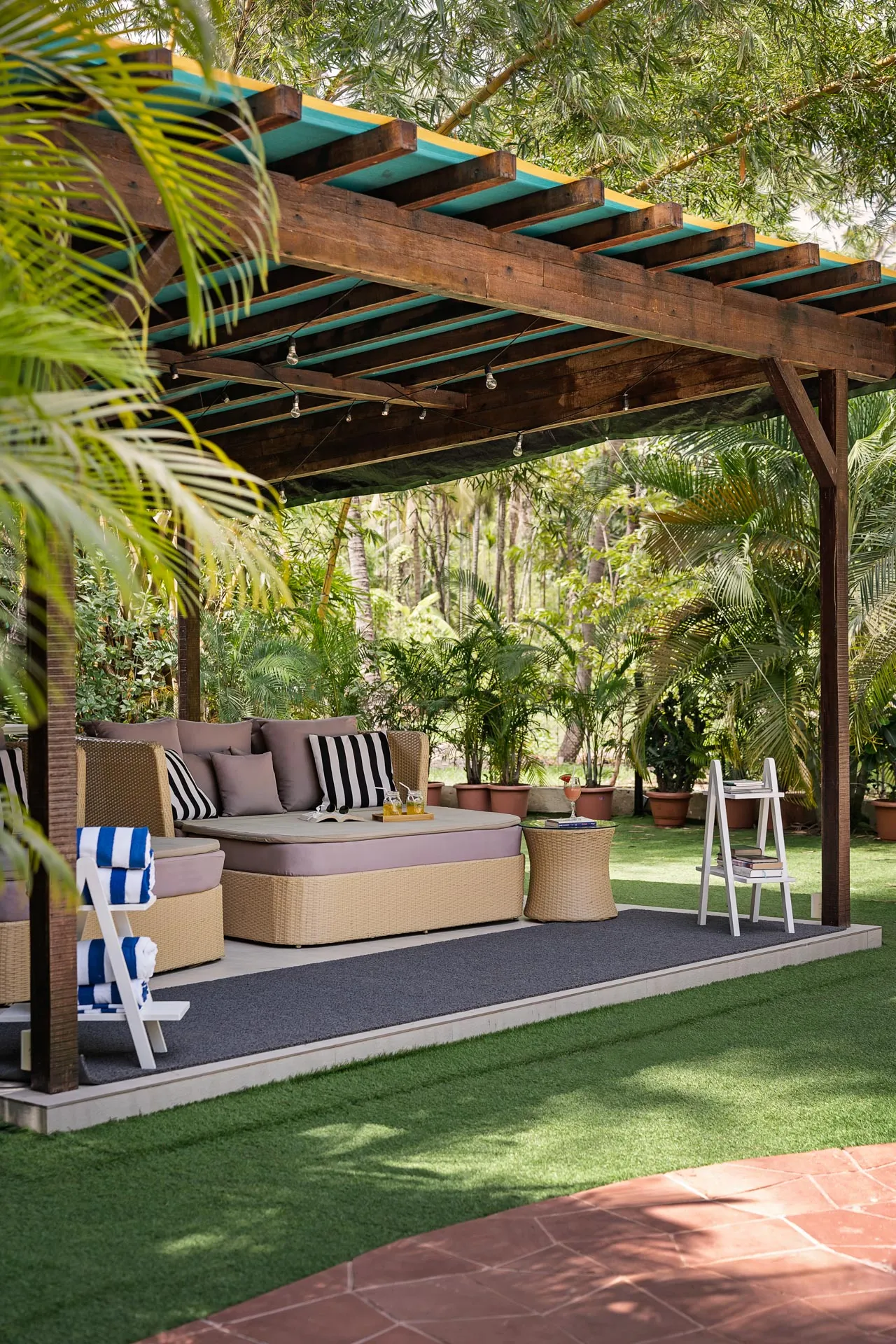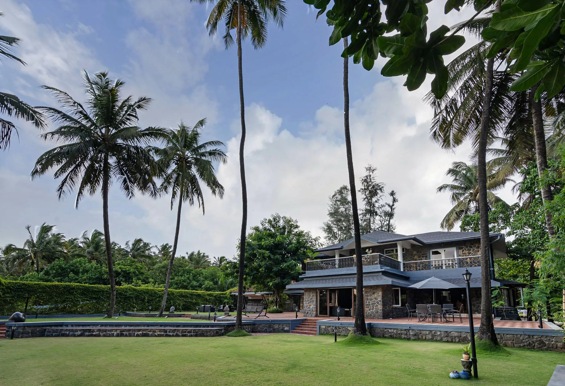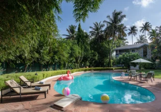Away from the crowds and commotion, embrace the tranquil tropical “Baug Life” at Waves. Located just a few metres from Akshi Beach, this three-bedroom home transports to you a blissful state of mind. The two-storied villa welcomes you with a beautiful pool where you can rejuvenate instantly with a swim or lounge in the poolside cabana, chilled cocktail in hand. Head indoors to discover a cozy living & dining area as well as the ground-floor bedroom. Upstairs, a large balcony offers the perfect space to unwind with loved ones, while the bedrooms with private balconies allow for reflective moments. Devour a scrumptious breakfast on the verandah, overlooking the beautiful lawn, before you make your way to the recreation annexe to revel in some friendly competition.