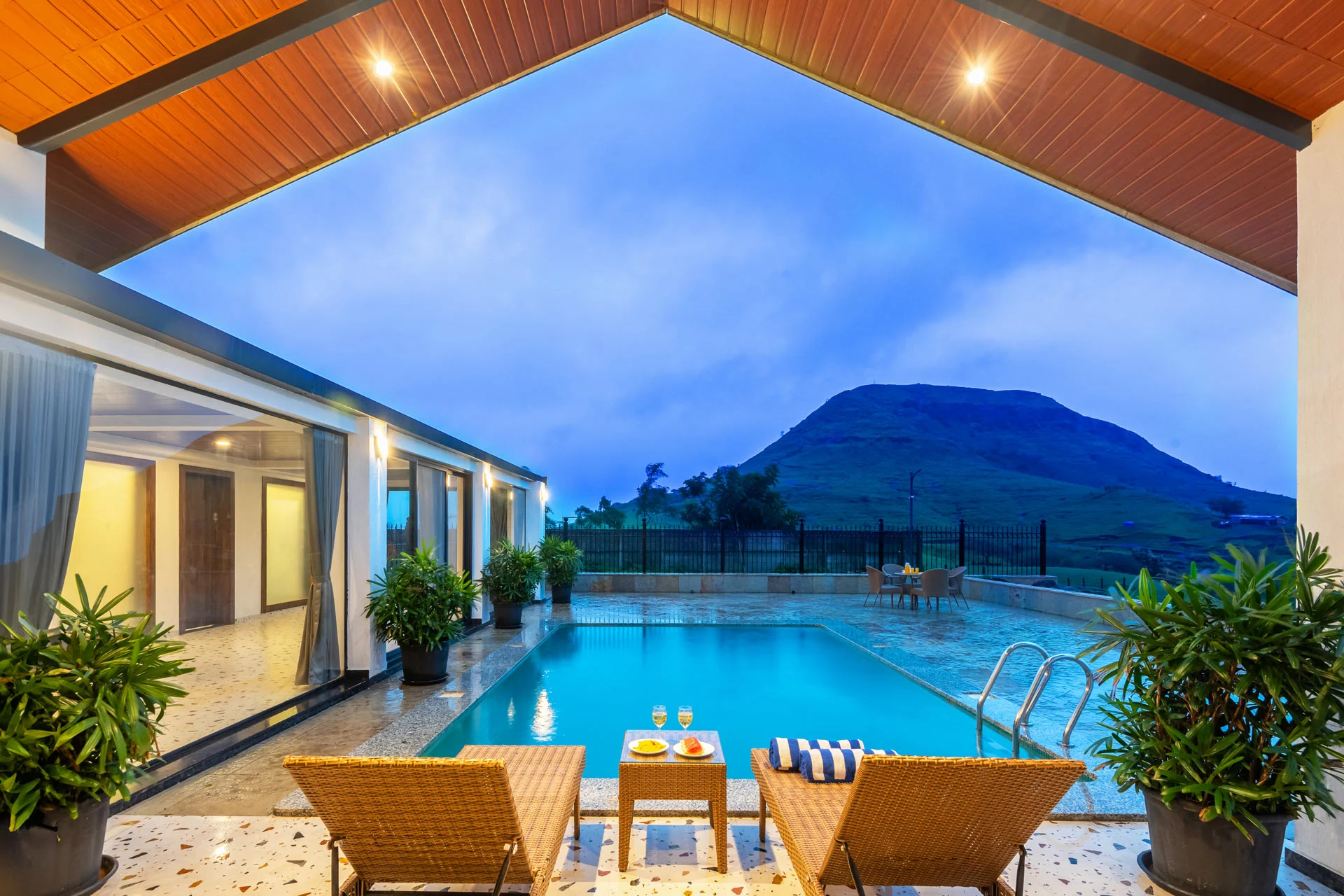 Escape reality and embrace serenity at Whispering Meadows, an enchanting villa in Nashik. This idyllic haven boasts eight beautifully appointed bedrooms and a spacious living room, perfect for gatherings and relaxation. The villa’s exquisite interiors blend elegance with comfort, inviting you to unwind and savour every moment. Step outside to find an inviting pool and outdoor seating area, offering breathtaking views of the surrounding mountains. Here, the absence of WiFi is a blessing, encouraging you to connect with nature and your loved ones. Enjoy the warmth of a bonfire under the starlit sky, embark on invigorating nature treks, and engage in delightful indoor and board games. Each nook and cranny beckons you to relax, recharge, and revel in the serene beauty that surrounds you.