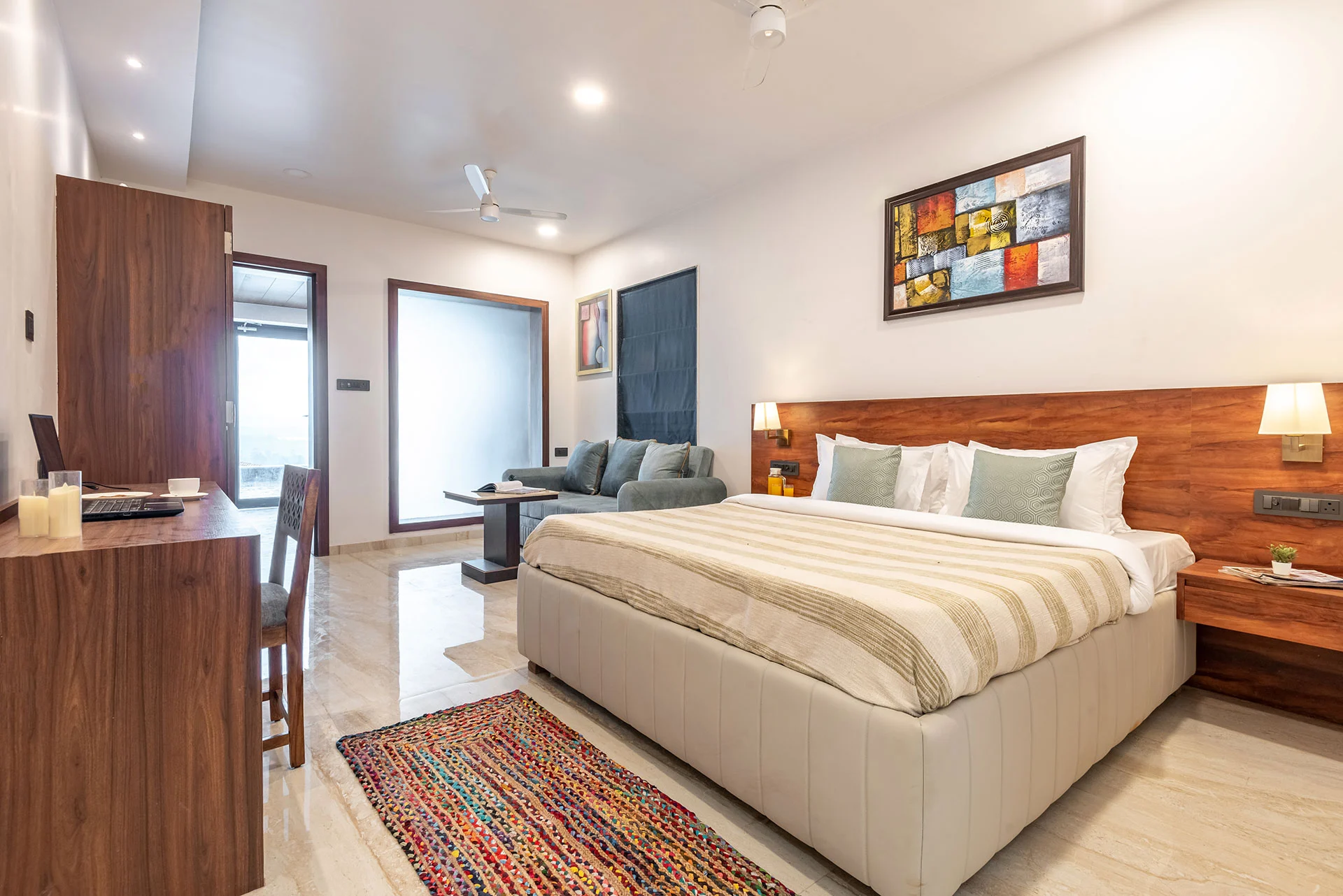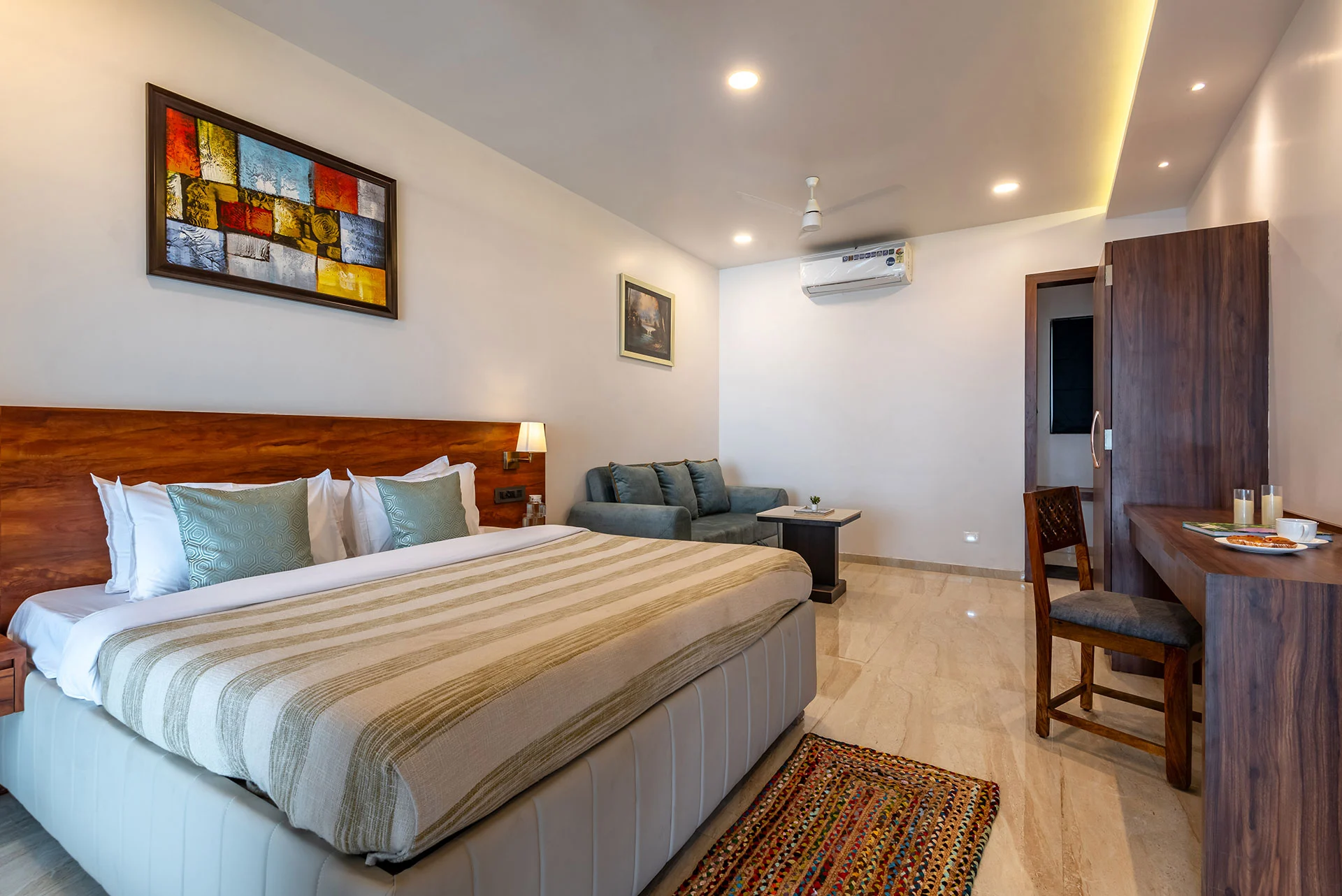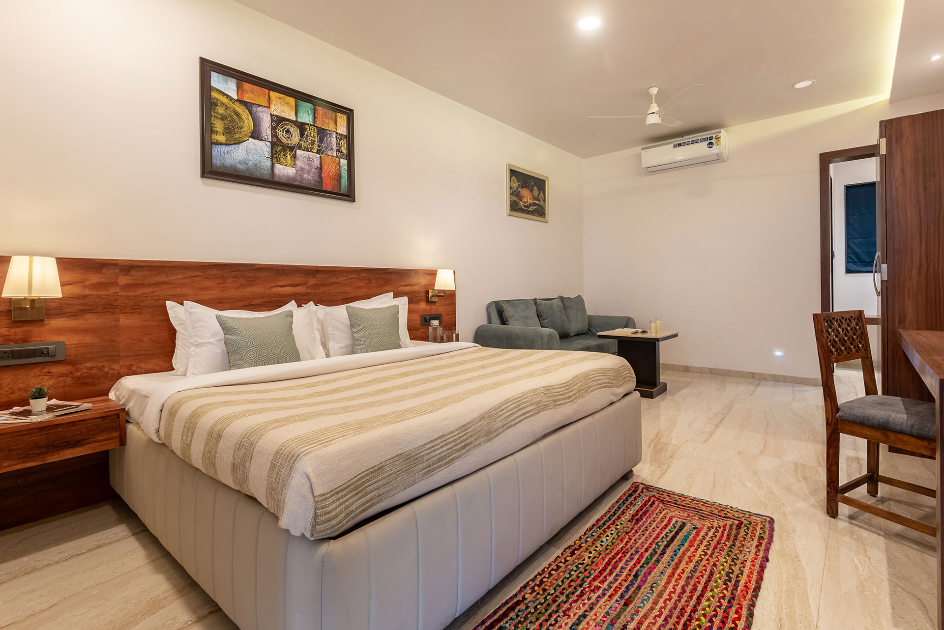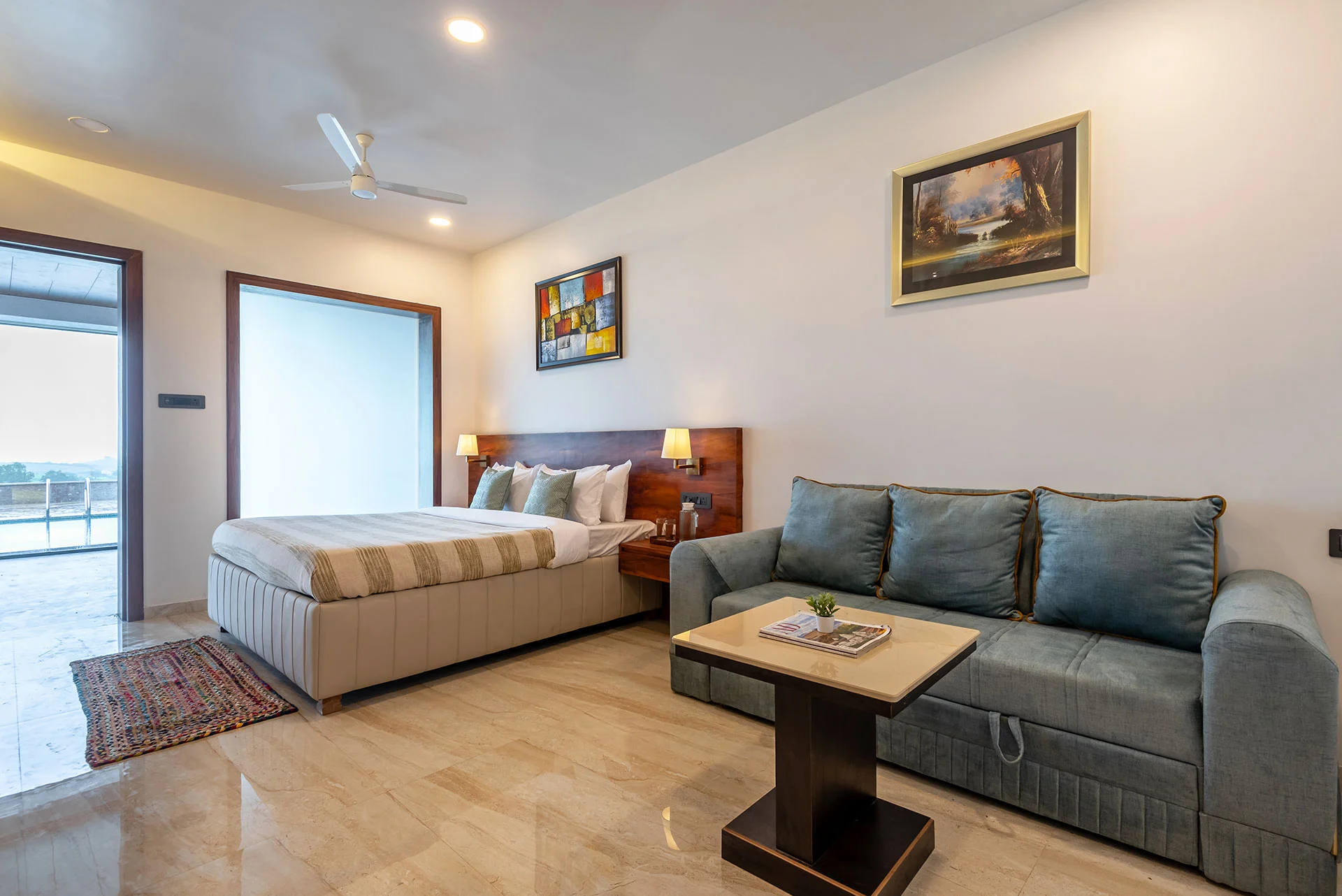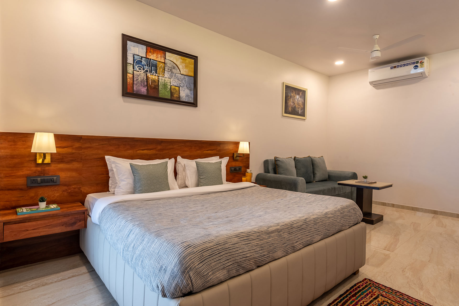 Includes a king-size bed, AC, and a sofa-cum bed.