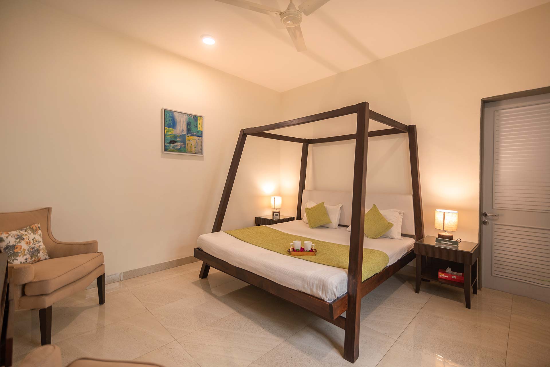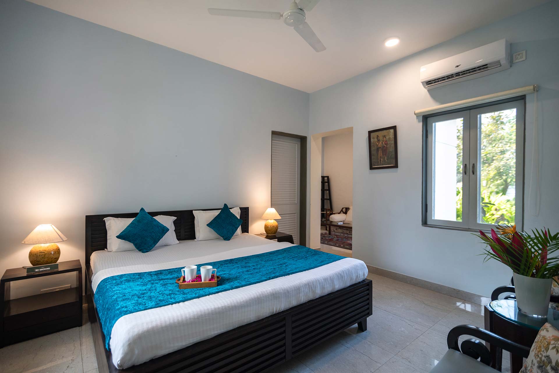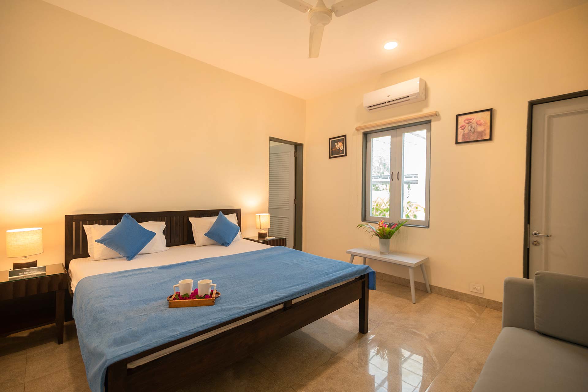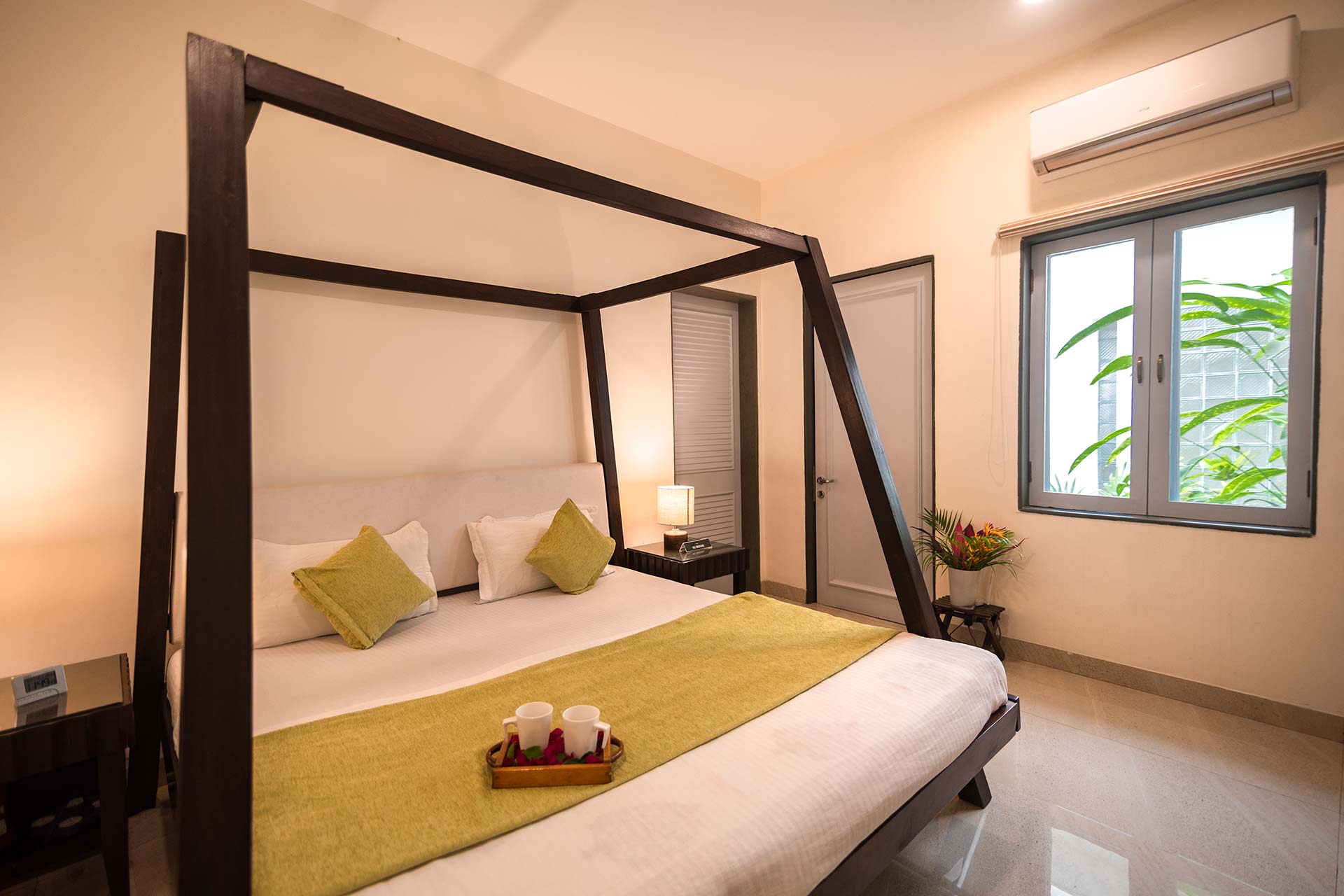 – All bedrooms offer a plethora of amenities, including a queen-sized bed, AC, Wi-Fi access and attached bathrooms.