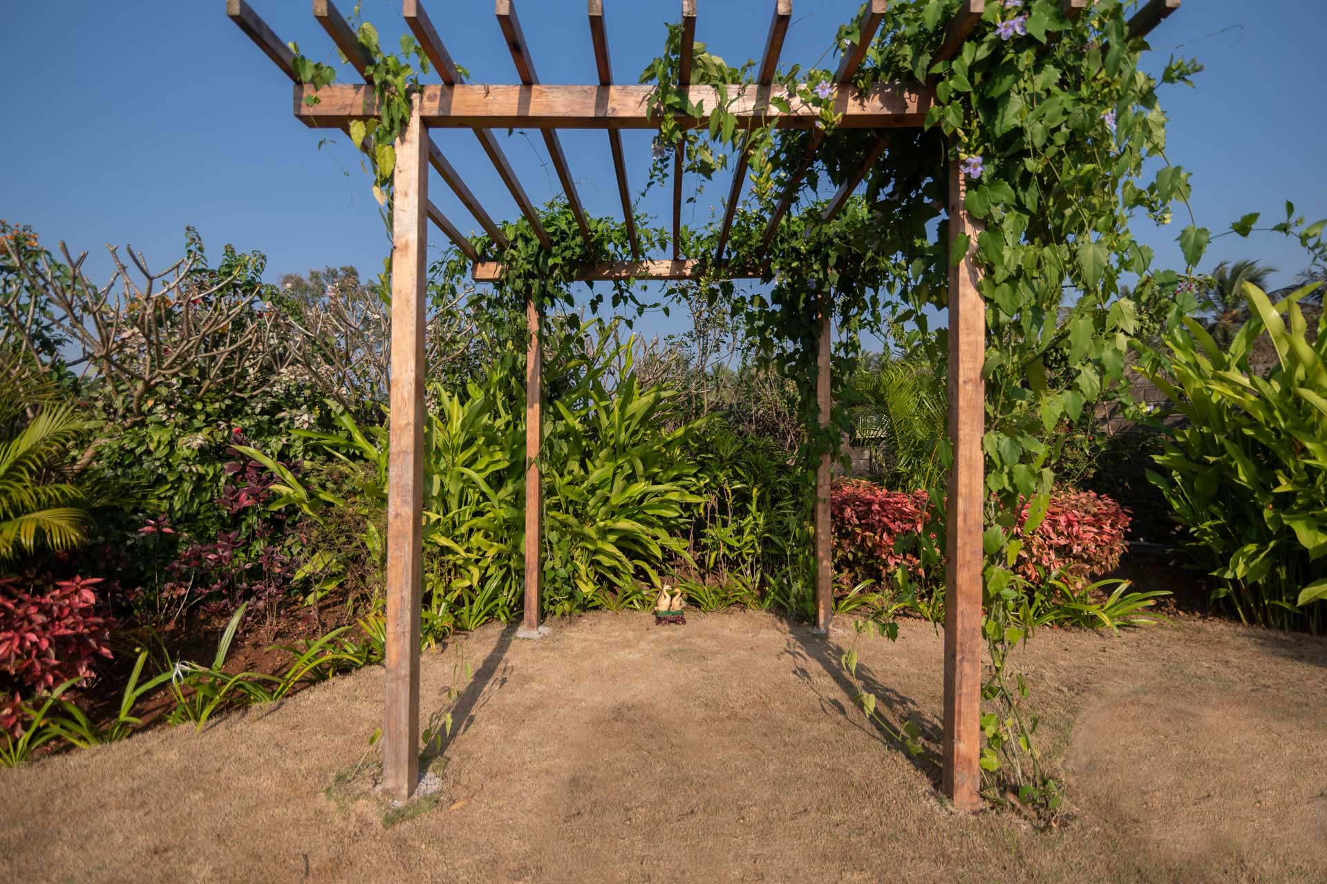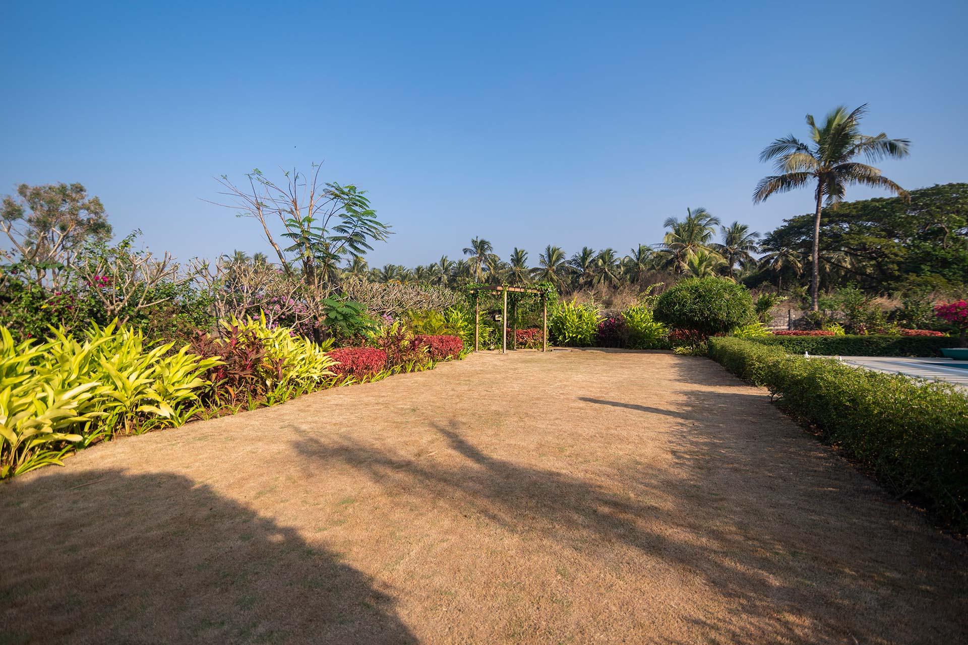 – The lawn is adorned with vibrant flowers