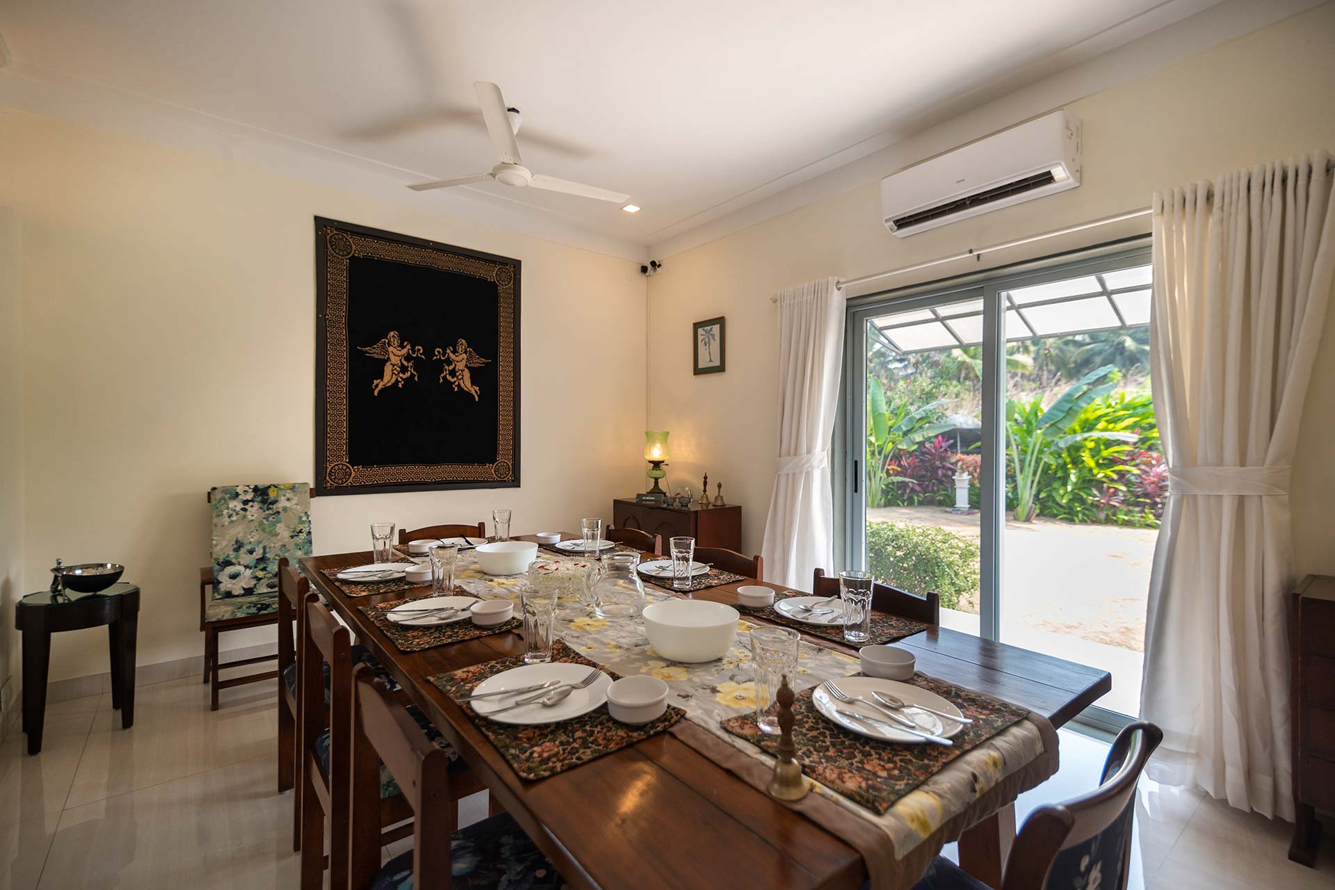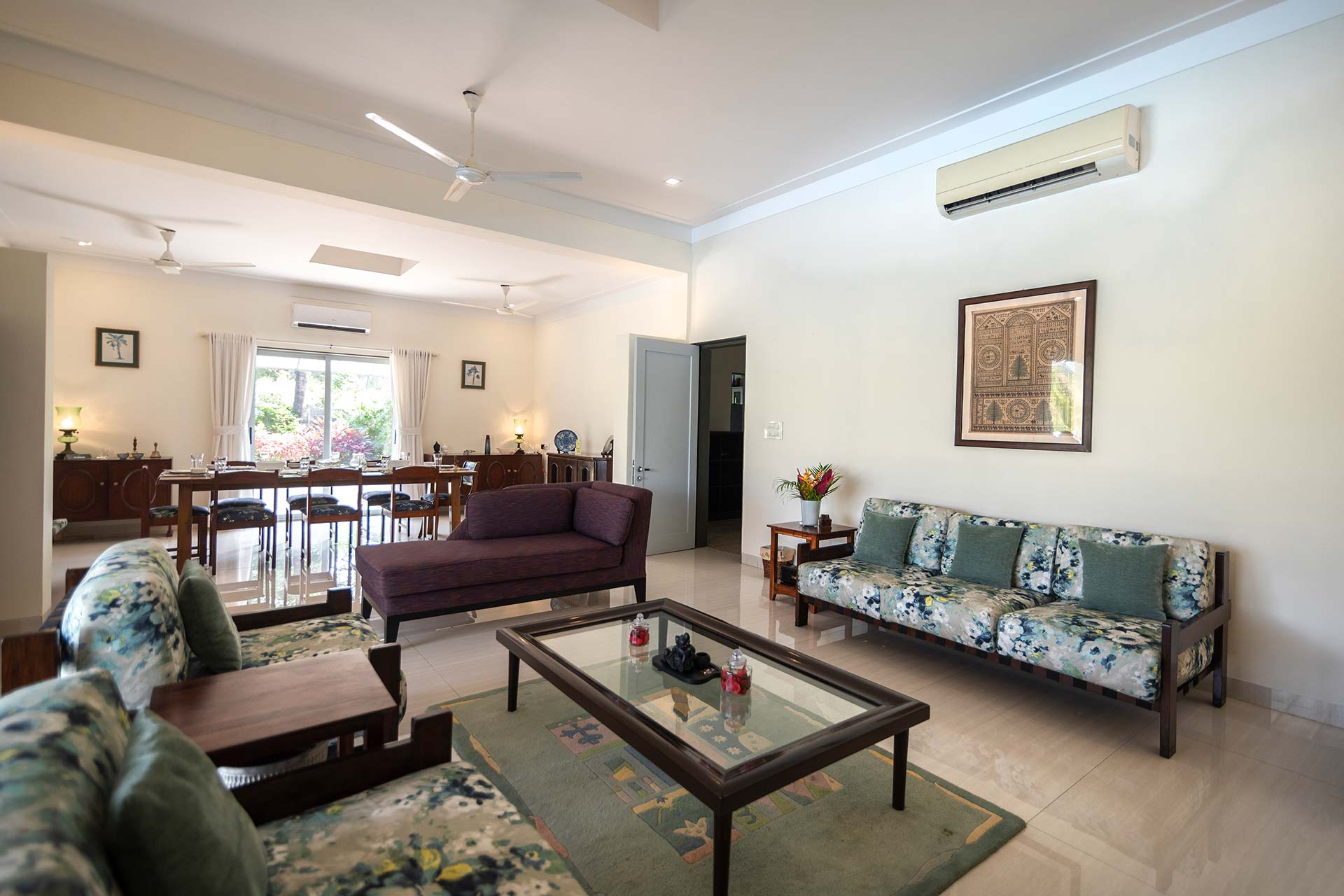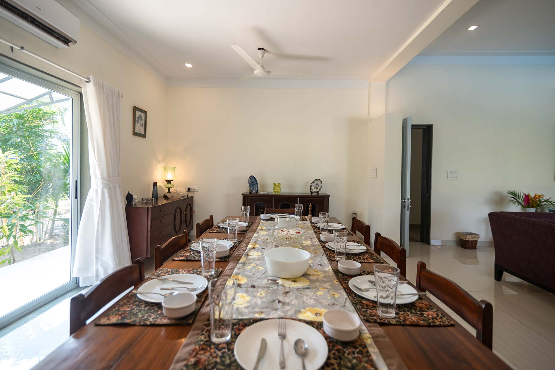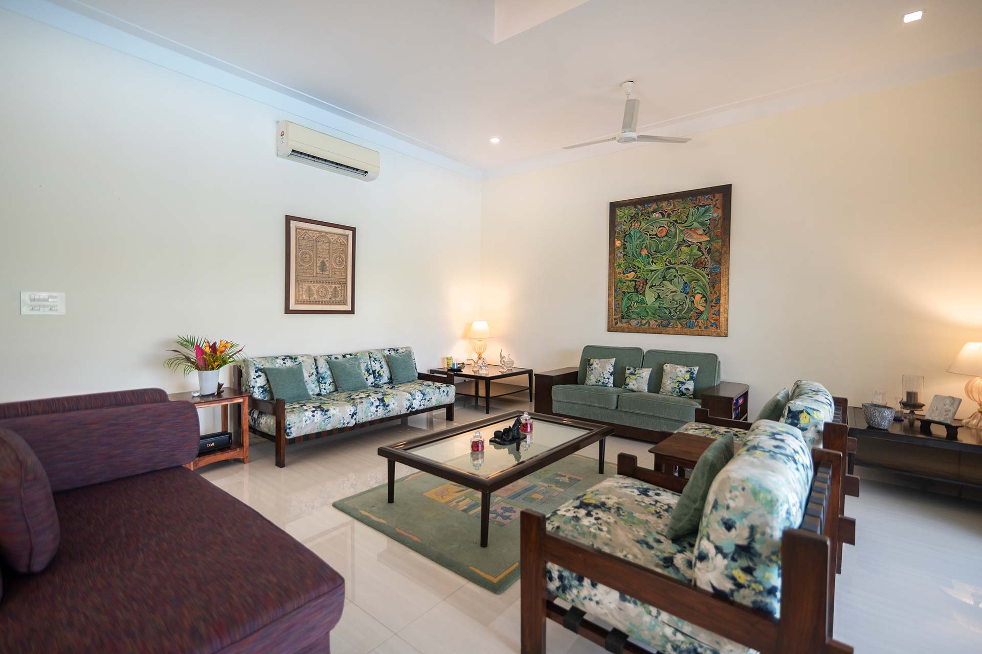 – There is an air-conditioned room on the ground floor, complete with plush seating arrangements for up to 8 people.