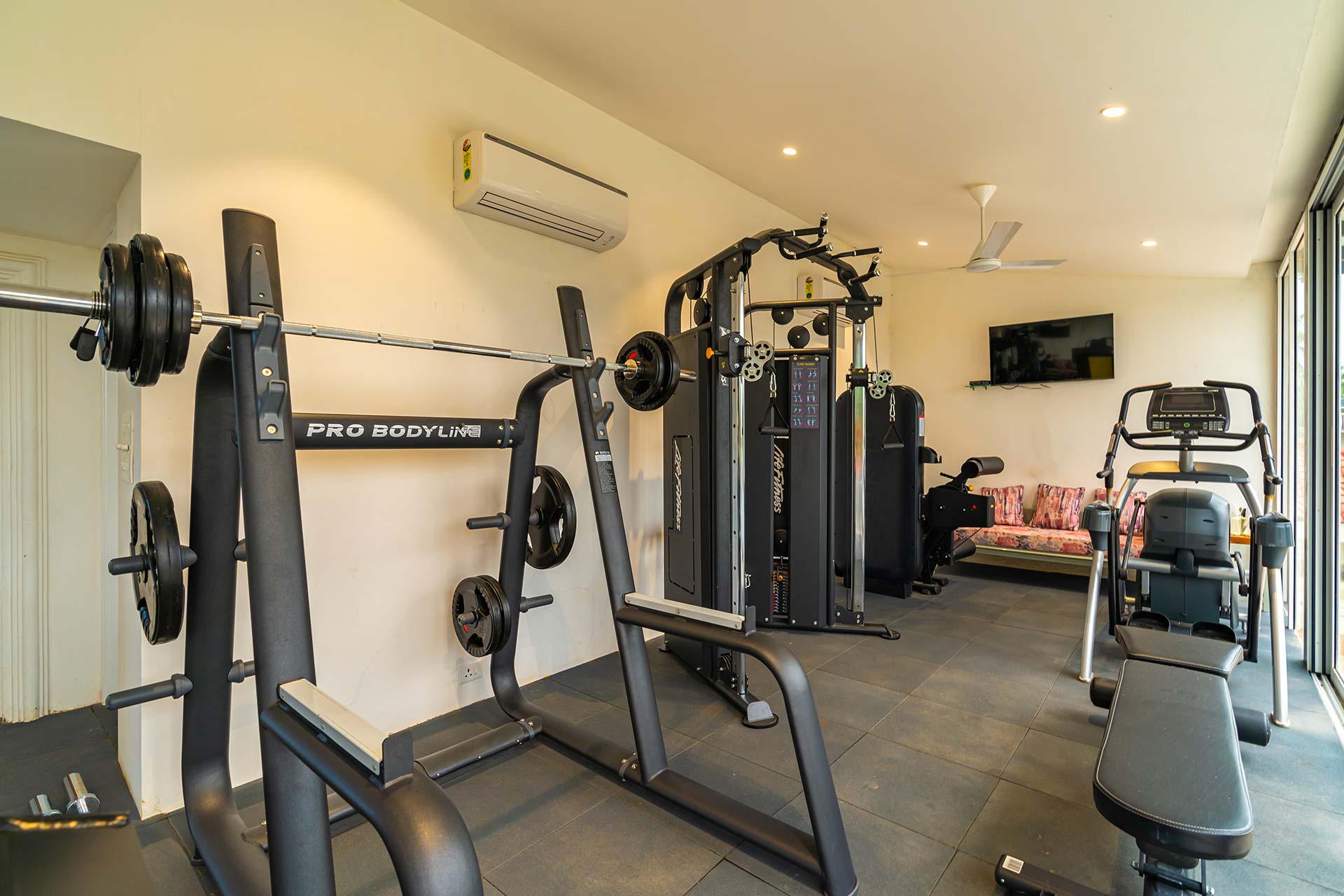 Fitted with a comprehensive array of fitness equipment, this space allows you to maintain your workout regimen even while on holiday.