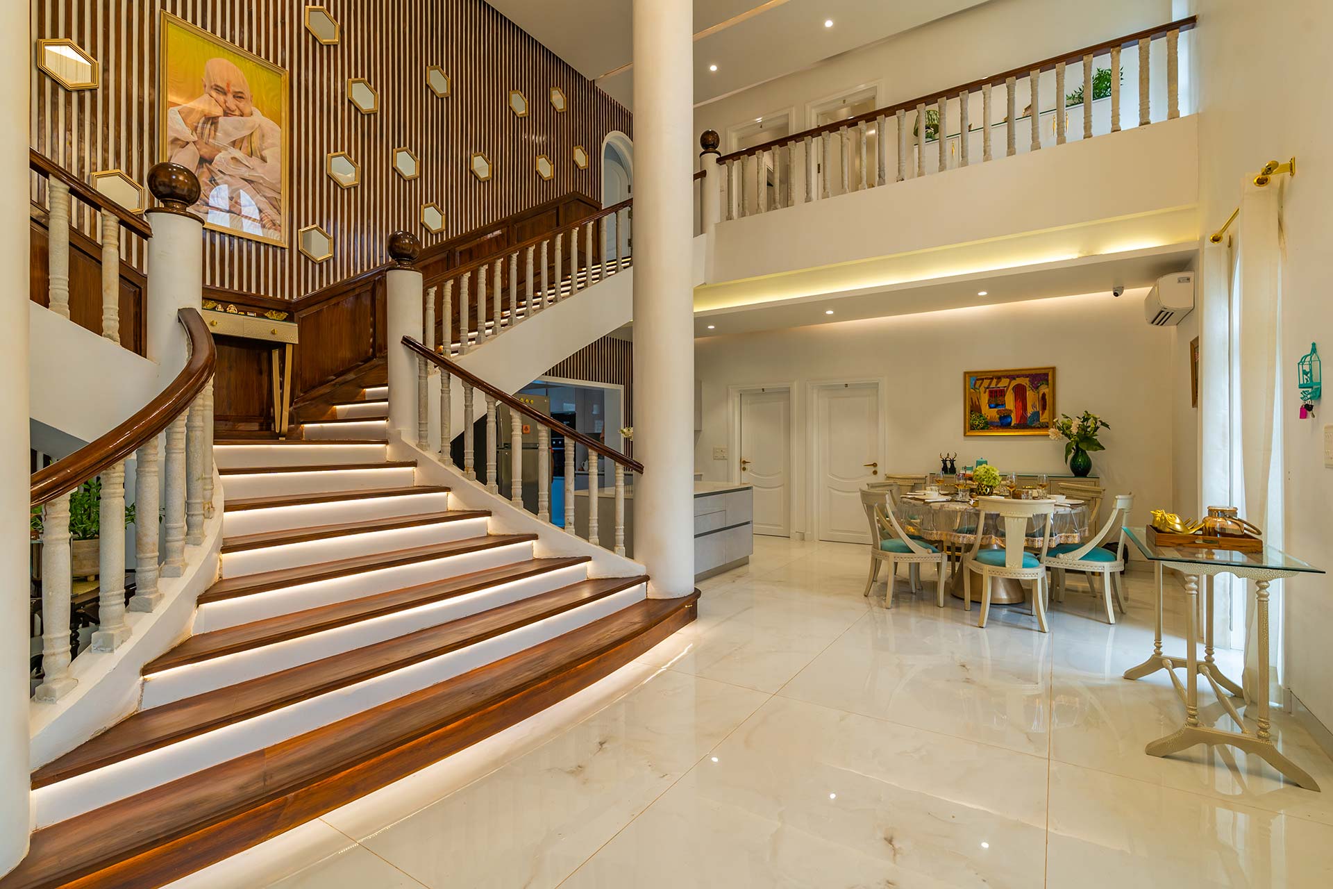 Positioned gracefully on one side of the grand staircase, this beautifully designed living room beckons as the ideal gathering place.
