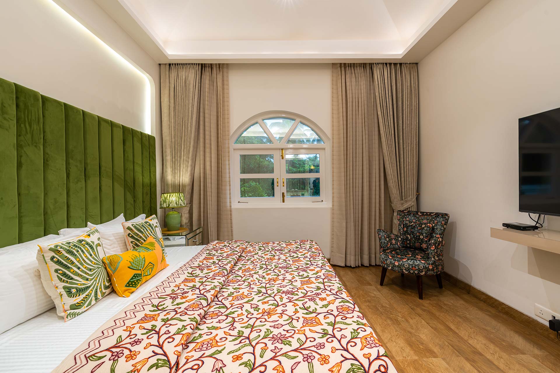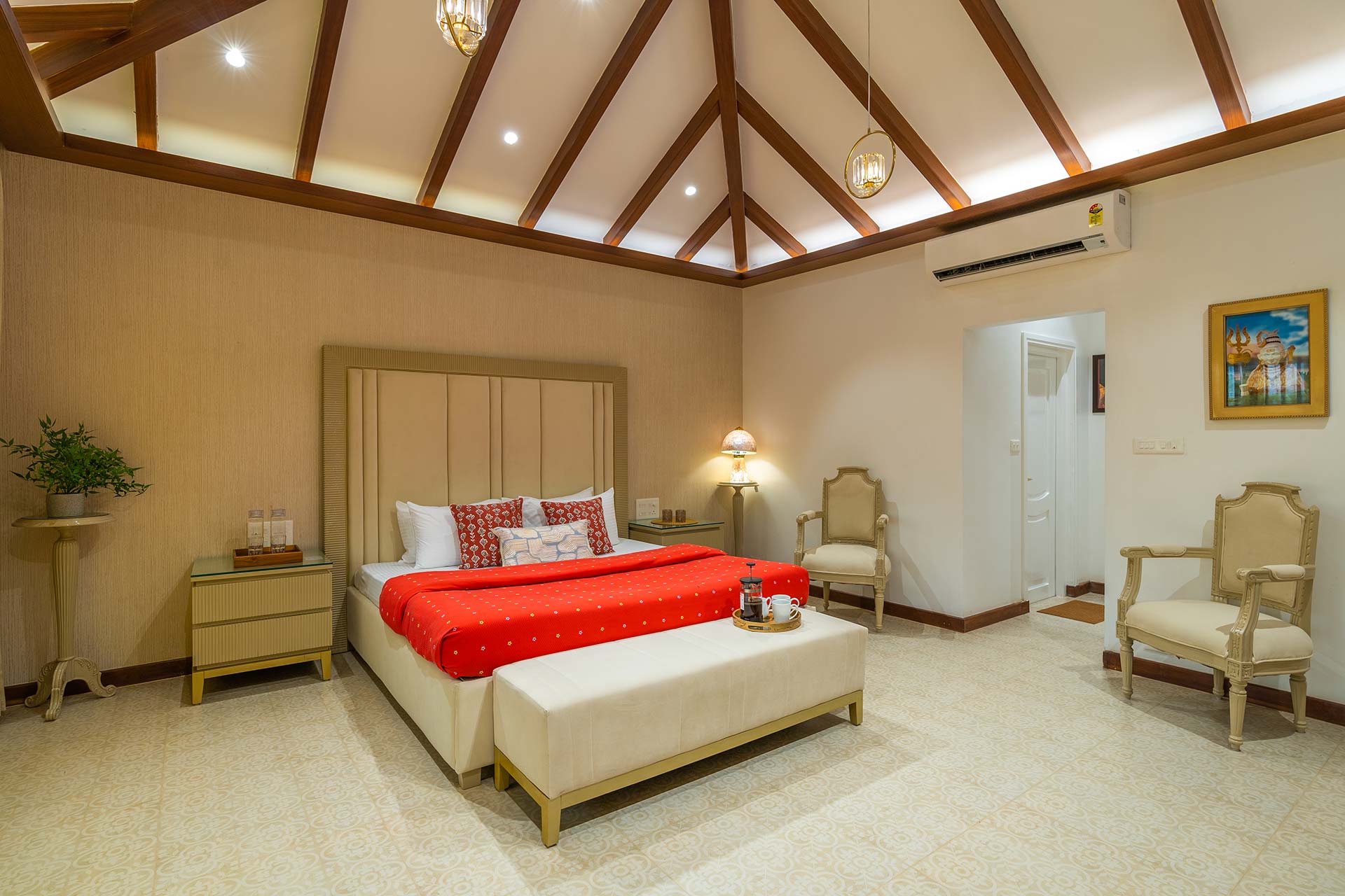 It is well-appointed with two ACs, a TV, Wi-Fi access and a cosy workstation, ensuring both comfort and functionality.