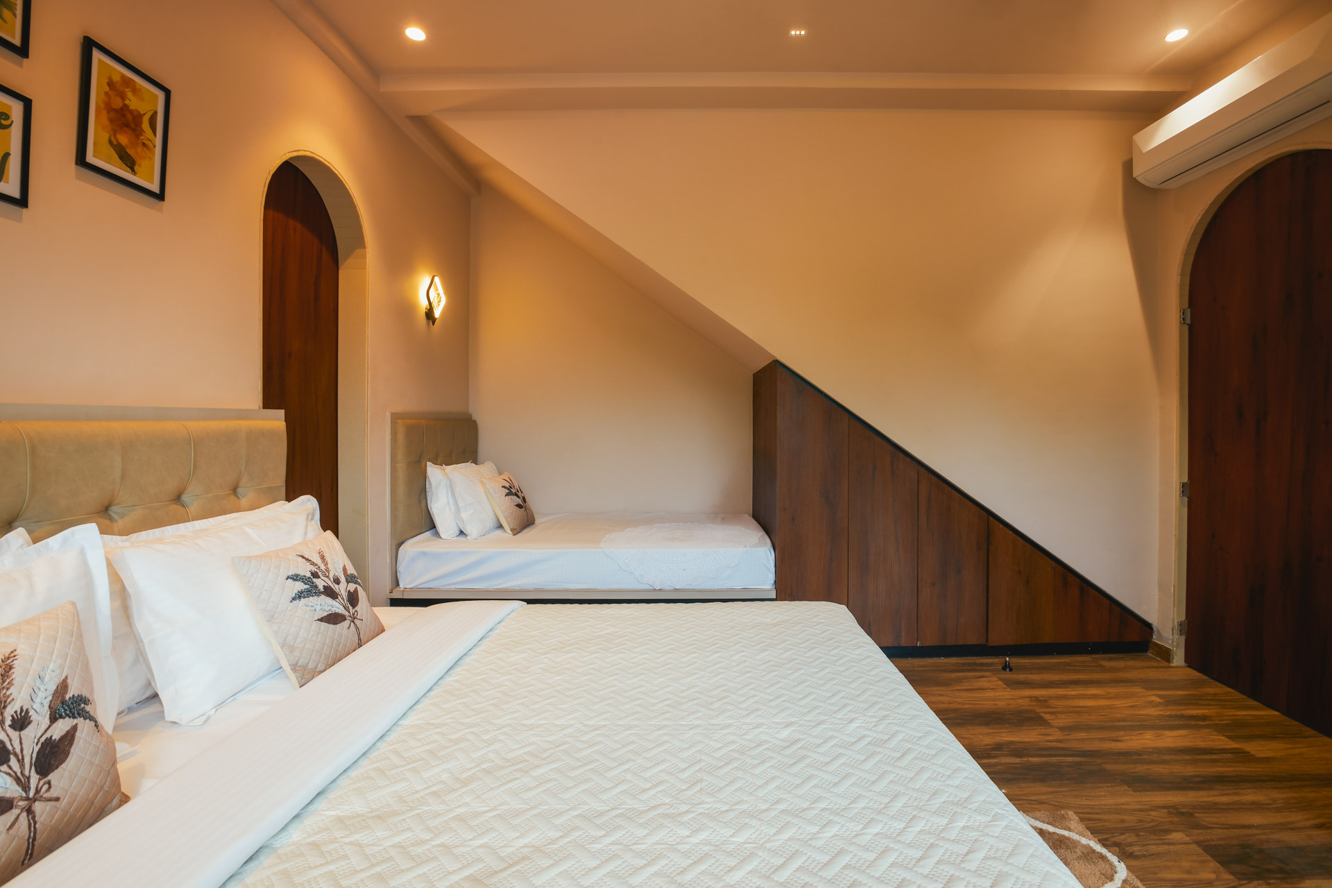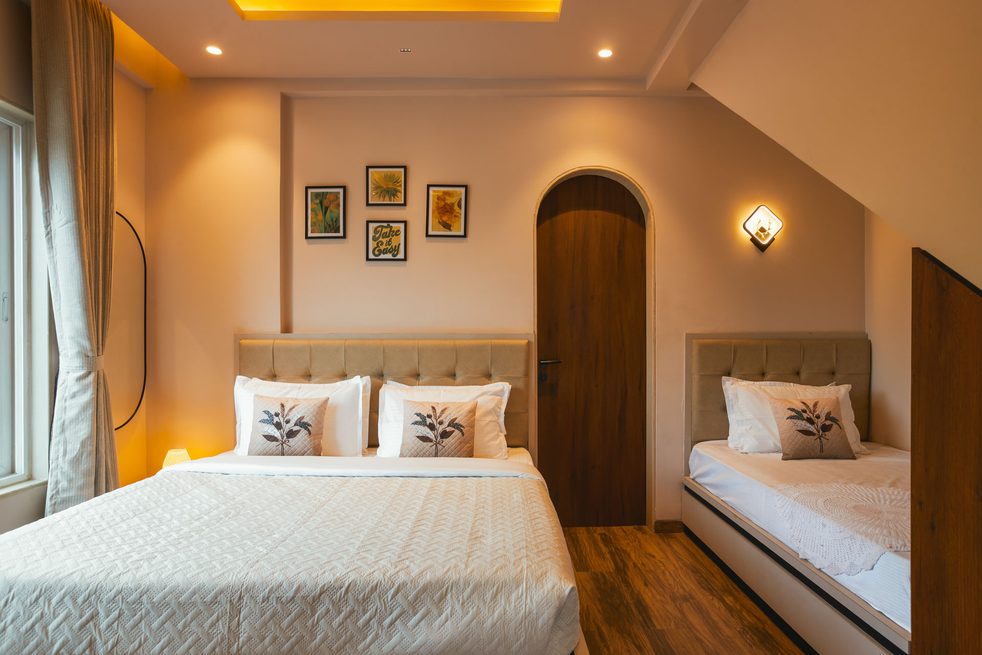 At Zenith Palms, mornings begin with golden light streaming across the lush Igatpuri mountains, best admired from the comfort of your 5-bedroom luxe retreat. Start the day with a hot cup of chai in the gazebo, watching the hills roll out like a living painting. After a hearty home-cooked breakfast, venture out to Igatpuri’s gems, soak in serenity at the Tringalwadi Fort, chase mist at Vihigaon Waterfall, or find peace at the Myanmar Gate and Meditation Center. Return by afternoon to indulge in a leisurely siesta or a laughter-filled board game session indoors, where every corner frames a postcard-worthy mountain view. Evenings are tailor-made for slow living, perhaps another cup of tea in the gazebo, or a stroll around the property as the skies blush into twilight. Wrap up the night with a soul-satisfying home-style dinner, before gathering with your crew for conversations that stretch well past starlight.